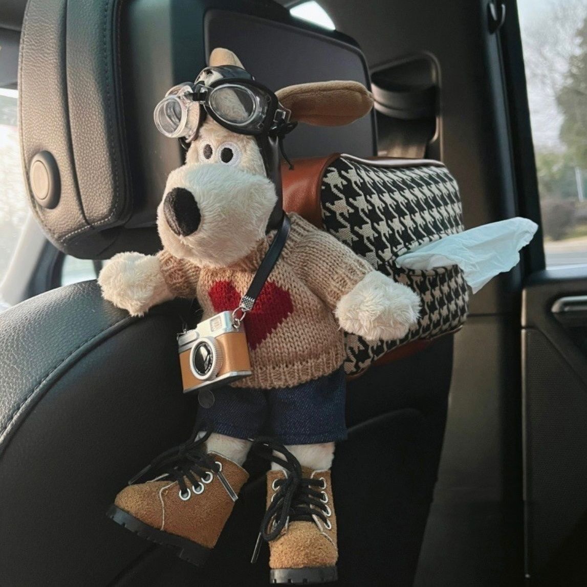 자동차 티슈 박스 고급 교수형 플라잉 개 만화 자동차 인테리어 장식 용품 Houndstooth 자동차 시트 추출 상자스토어 가기