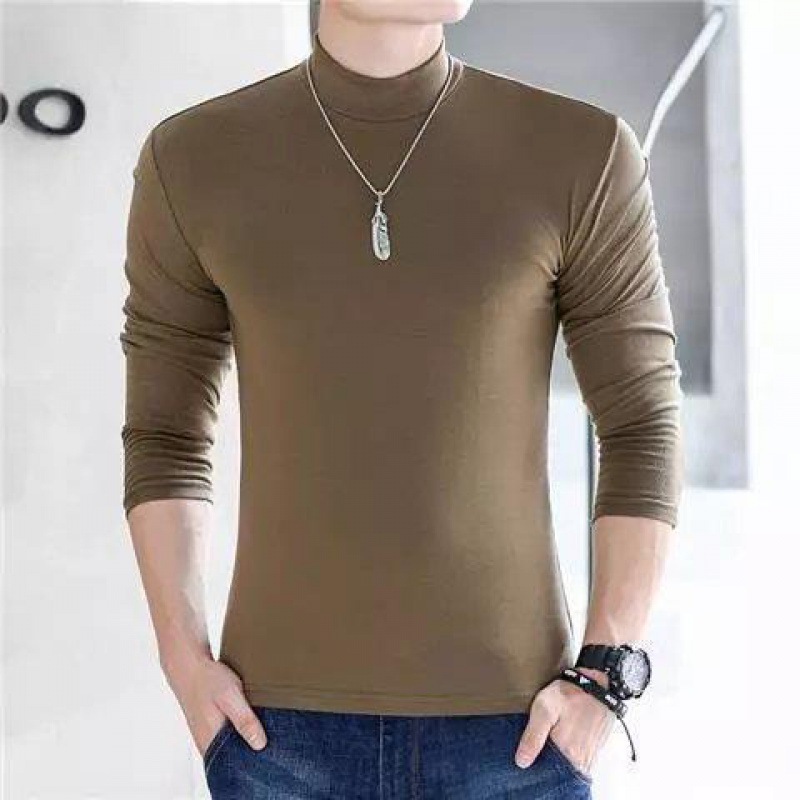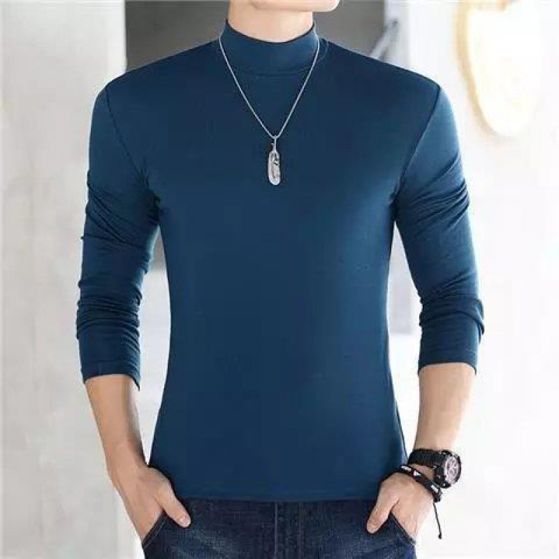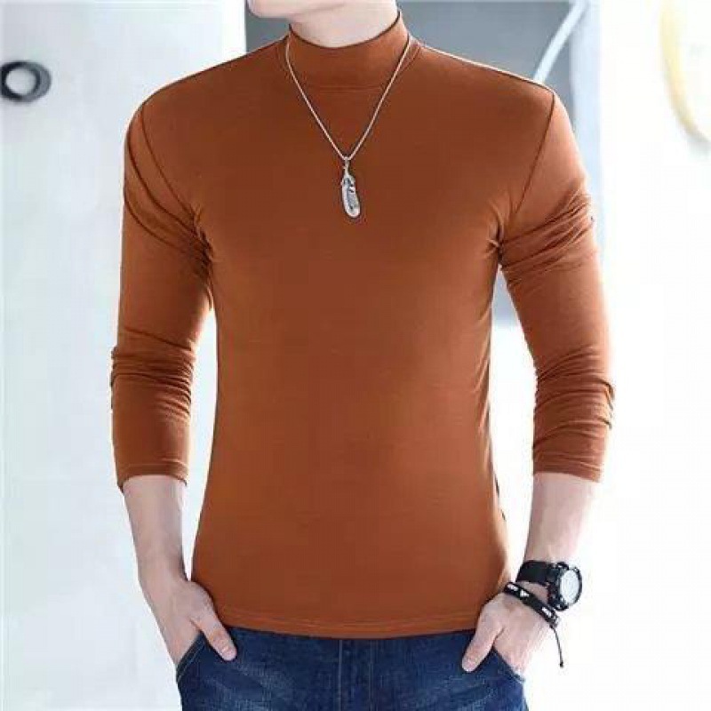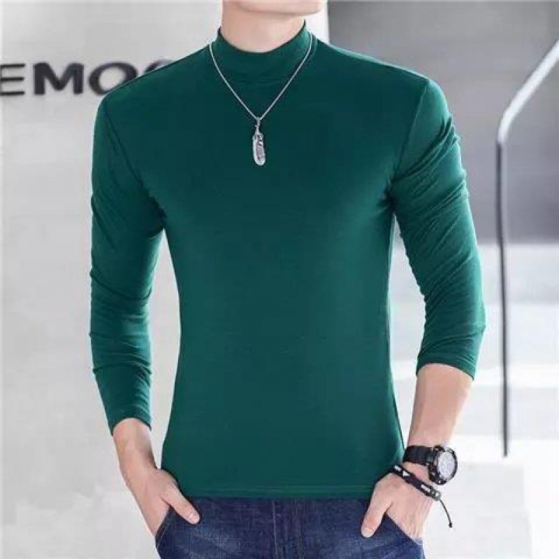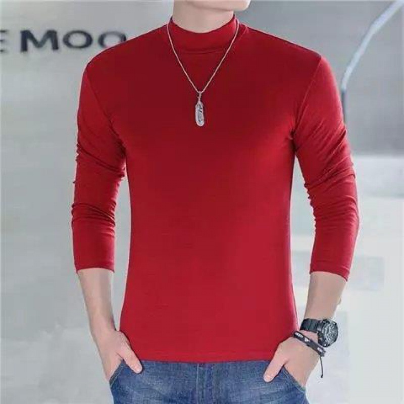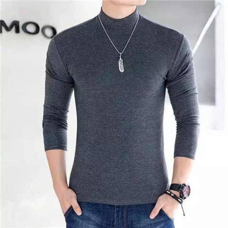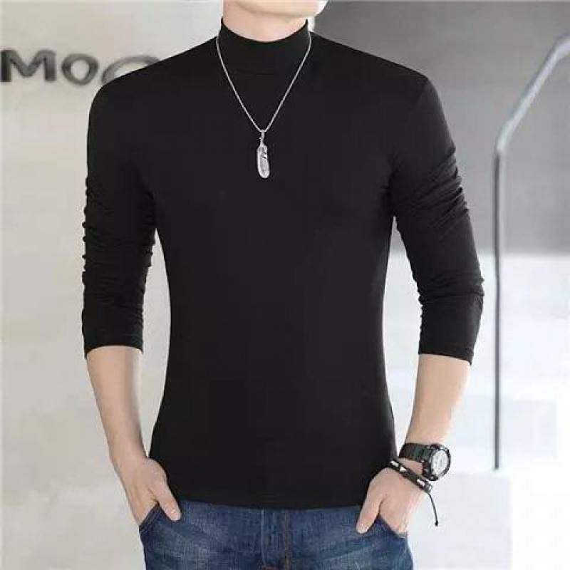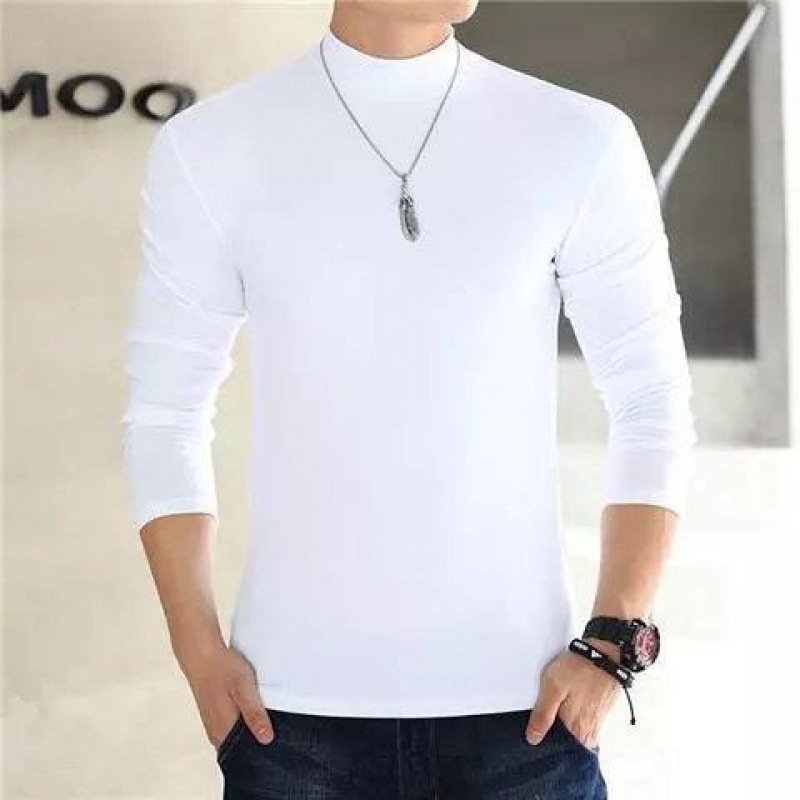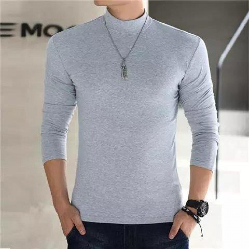 코튼 세미 하이 칼라 긴팔 티셔츠 청년과 중년 남성의 얇은 베이스 셔츠 남성용 티셔츠 단색 기본 플러스 사이즈 탑스토어 가기