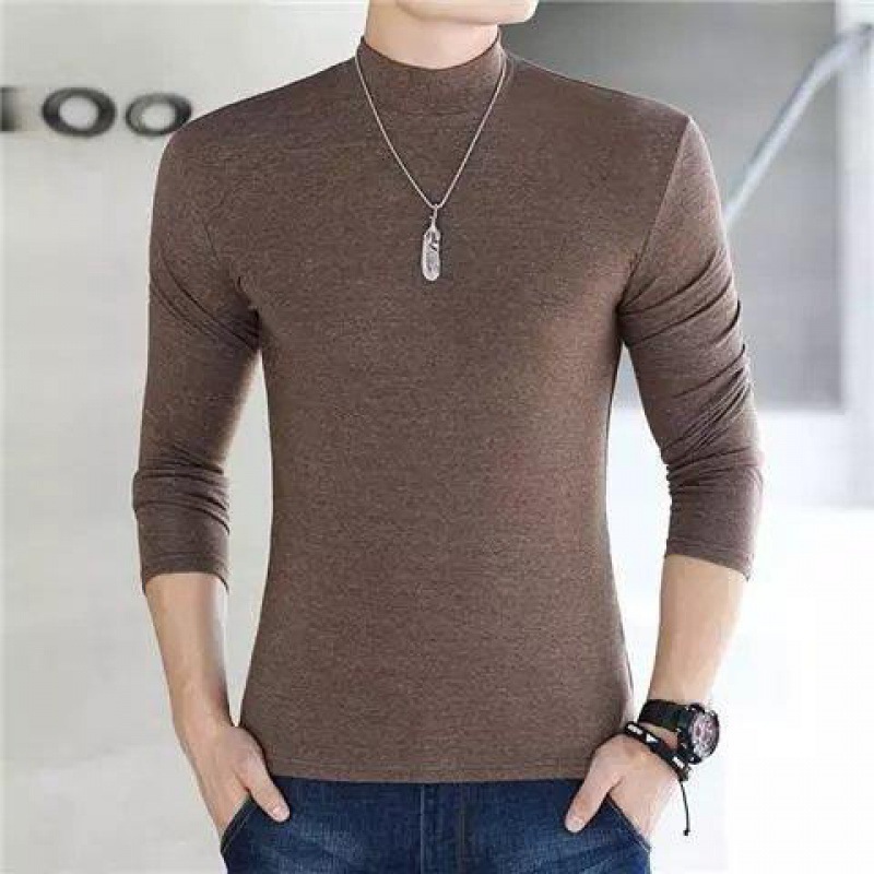 코튼 세미 하이 칼라 긴팔 티셔츠 청년과 중년 남성의 얇은 베이스 셔츠 남성용 티셔츠 단색 기본 플러스 사이즈 탑