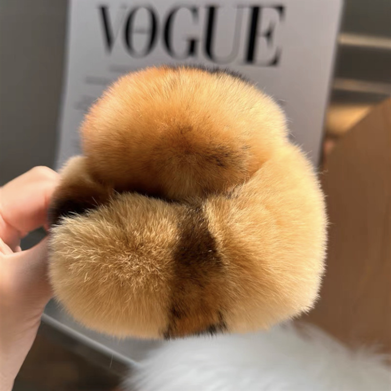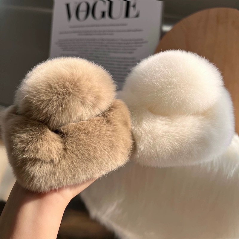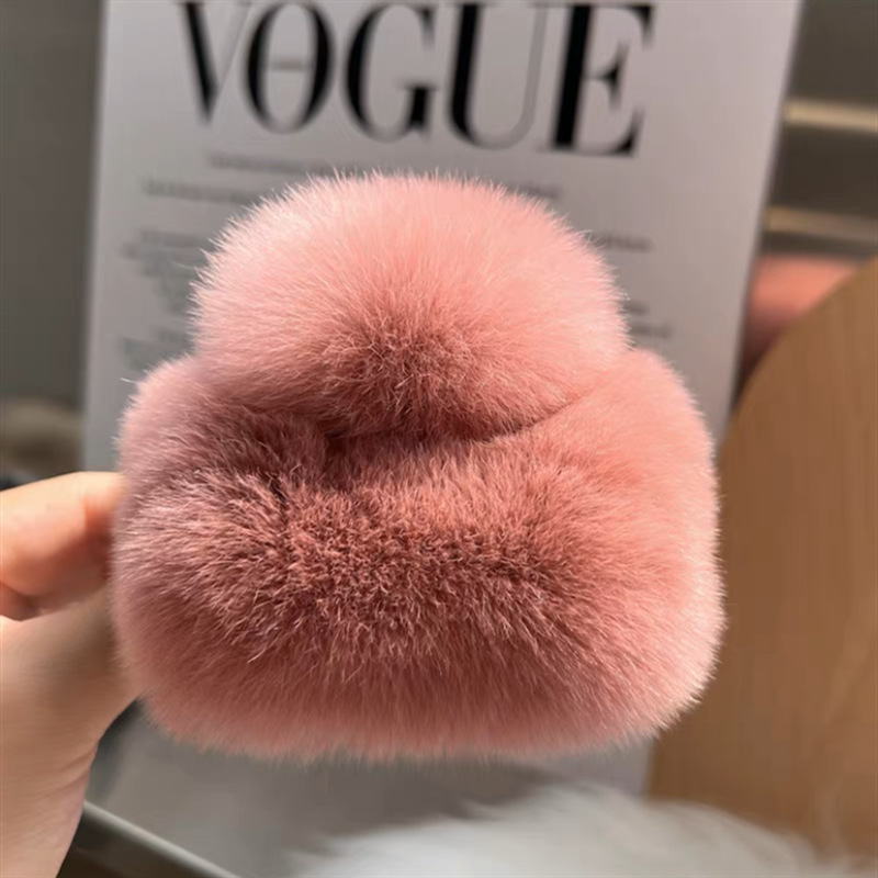한국 스타일 사각형 천연 토끼털 플러시 집게핀, 고급스럽고 우아한 가을 겨울 털핀, 뒷머리 머리핀스토어 가기