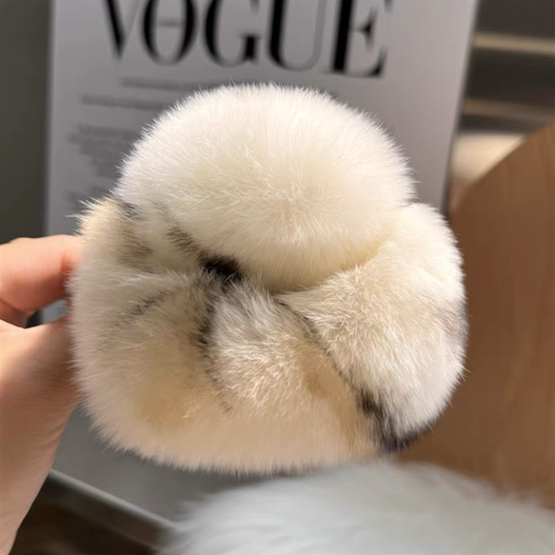한국 스타일 사각형 천연 토끼털 플러시 집게핀, 고급스럽고 우아한 가을 겨울 털핀, 뒷머리 머리핀