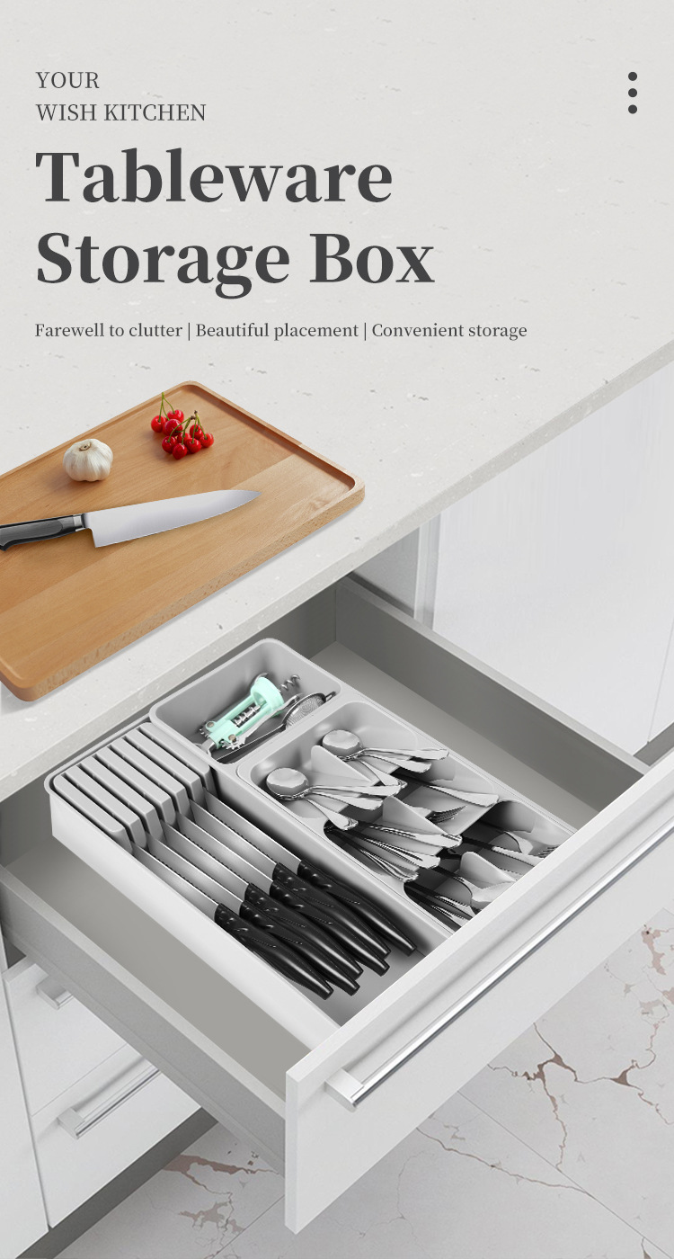 서랍 구획 식기 칼, 포크 및 숟가락 저장 상자 개폐식 칼 홀더 분리 된 주최자 식기 랙 보관 상자 세트