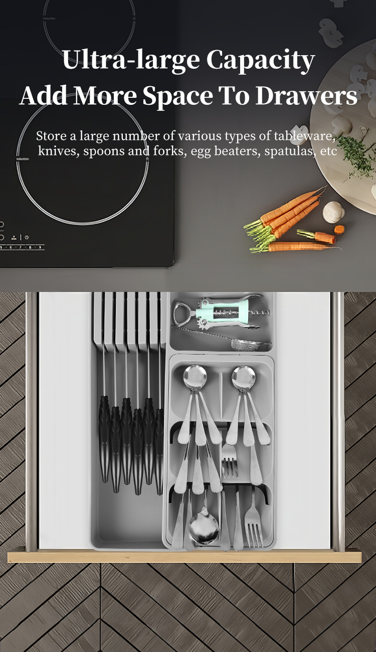 서랍 구획 식기 칼, 포크 및 숟가락 저장 상자 개폐식 칼 홀더 분리 된 주최자 식기 랙 보관 상자 세트스토어 가기
