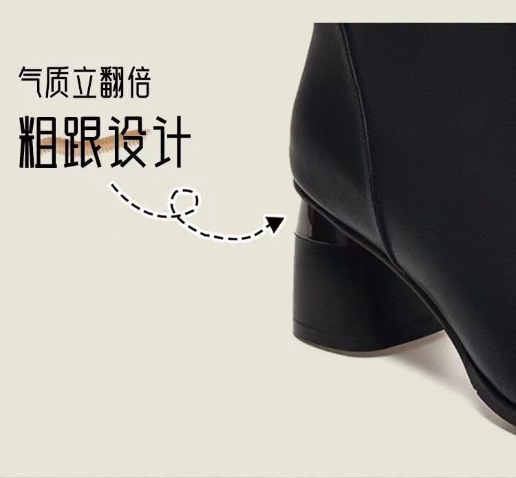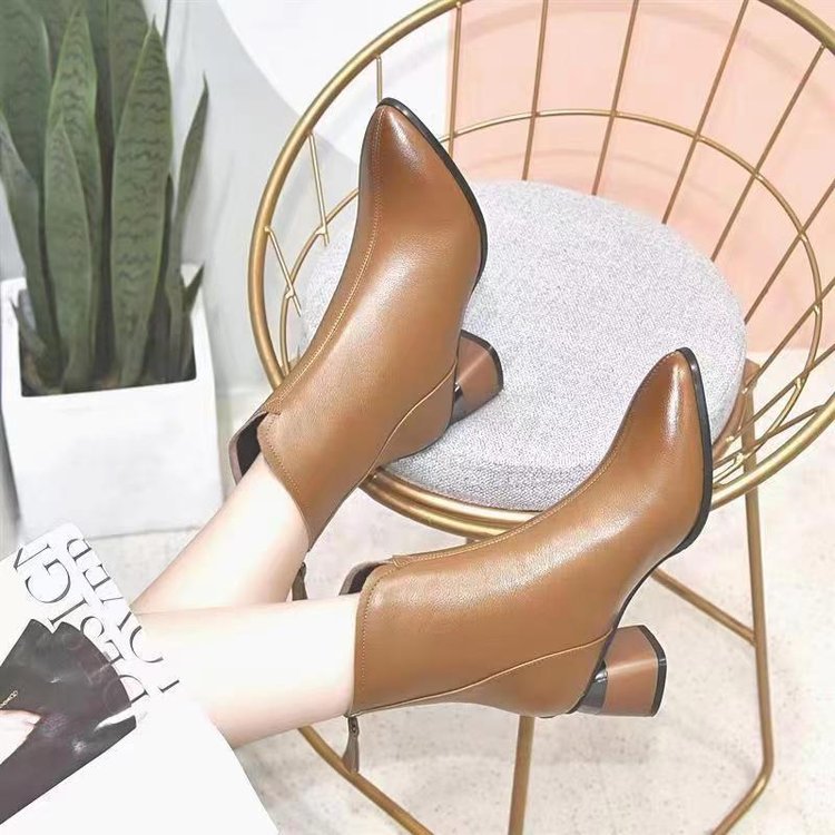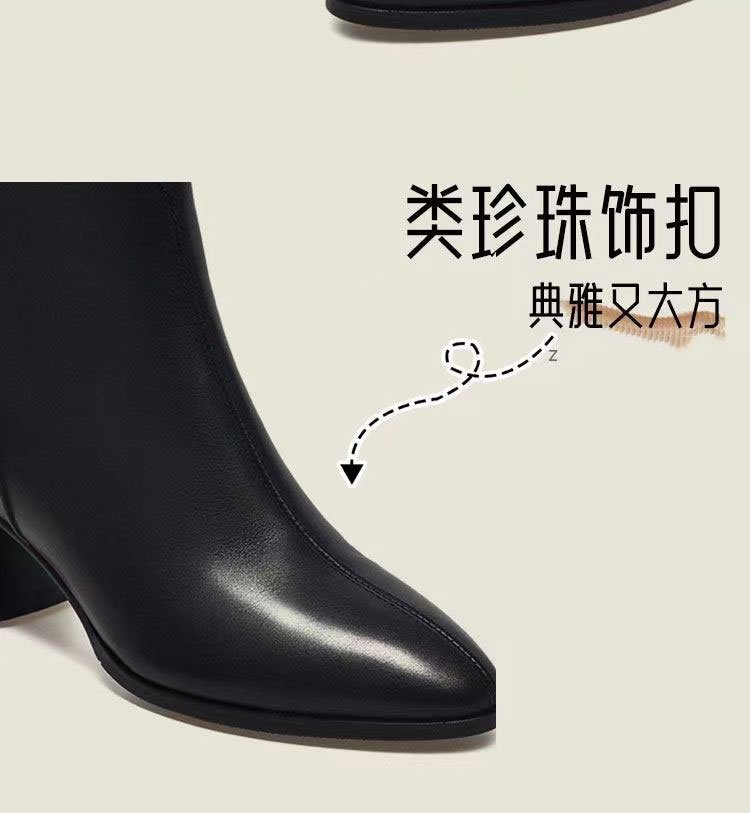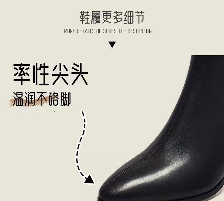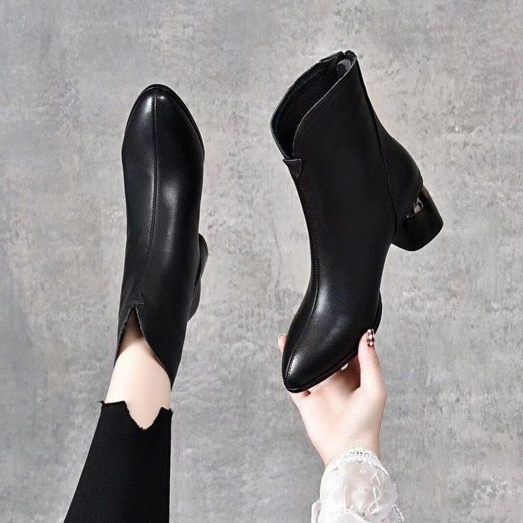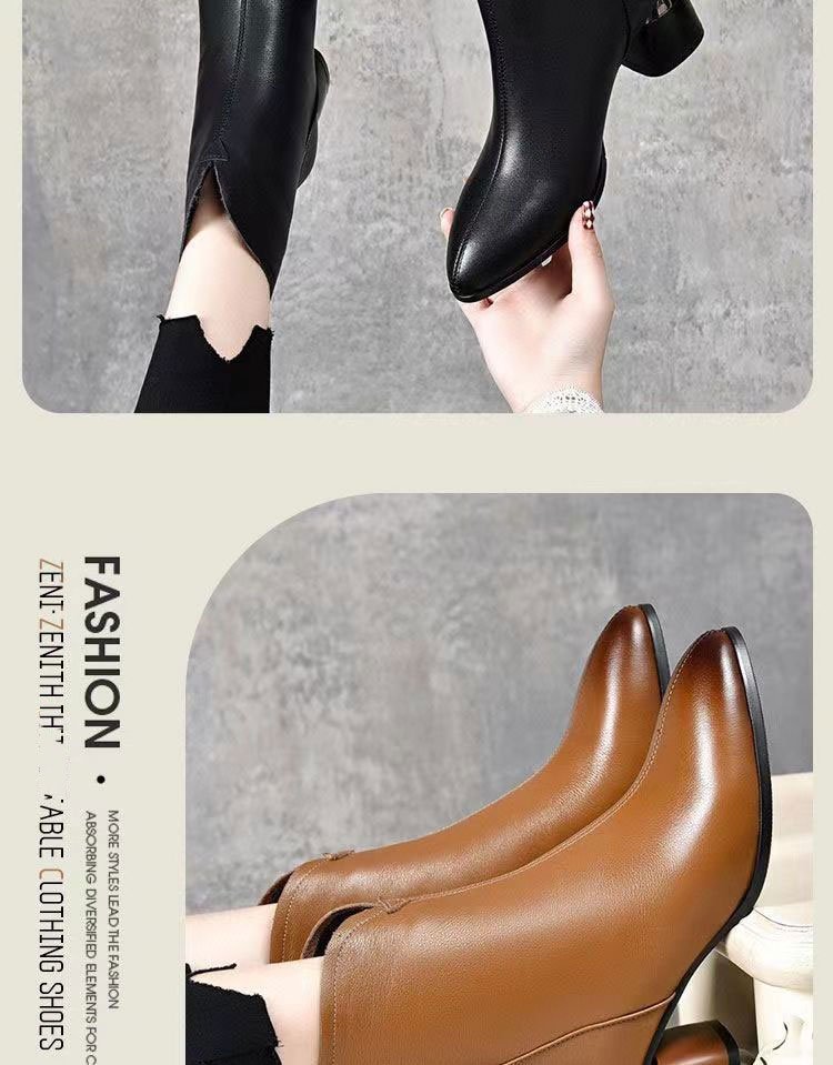 2023 새로운 가을과 겨울 뾰족한 하이힐 앵클 부츠 부드러운 가죽 여성용 두꺼운 굽 마틴 부츠 봄과 가을 싱글 부츠 미드 힐 부드러운 가죽 신발스토어 가기