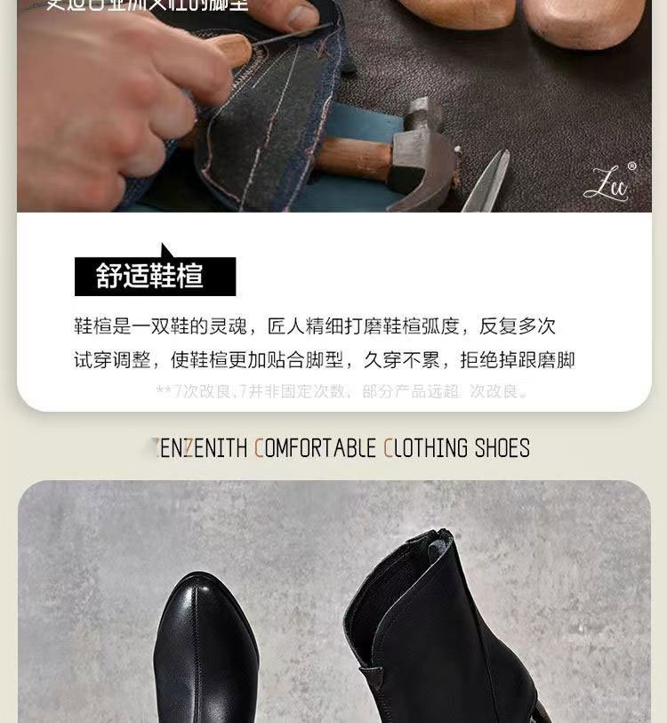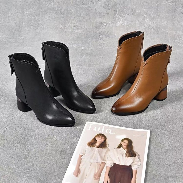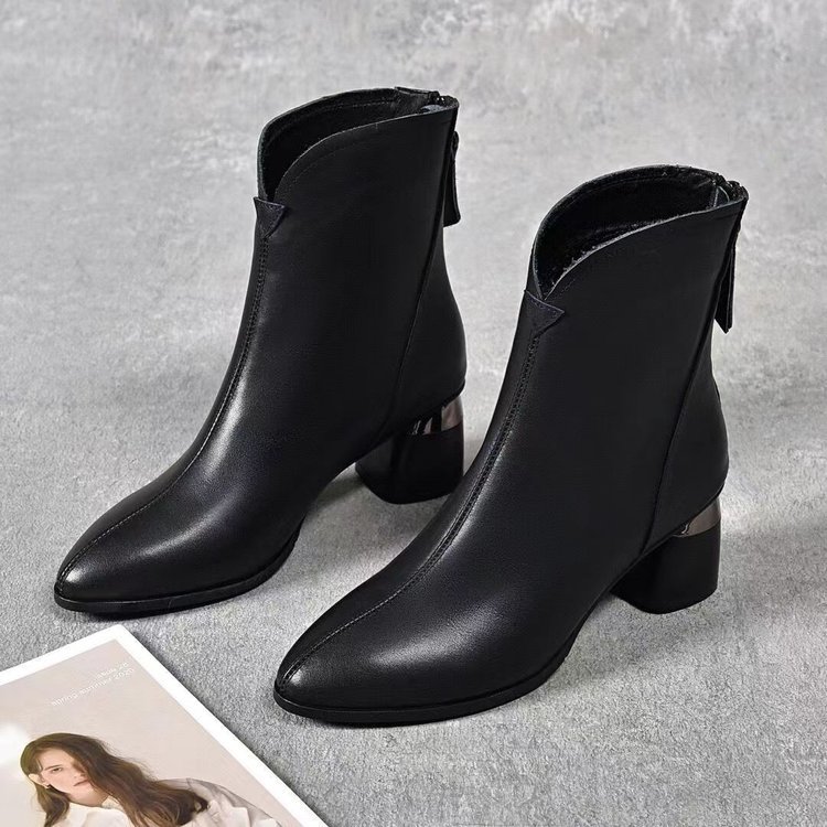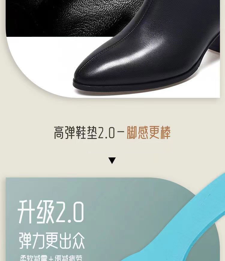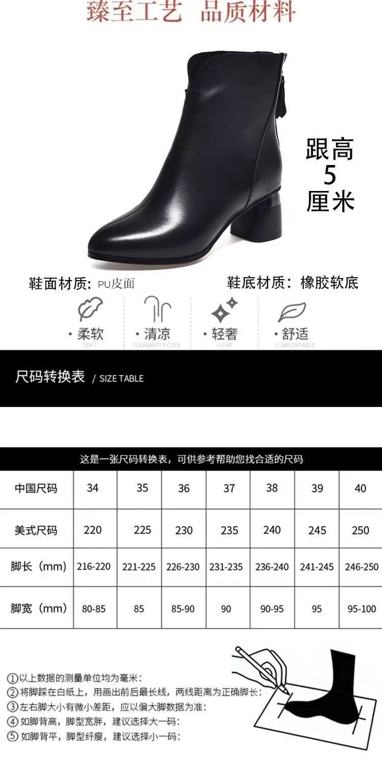 2023 새로운 가을과 겨울 뾰족한 하이힐 앵클 부츠 부드러운 가죽 여성용 두꺼운 굽 마틴 부츠 봄과 가을 싱글 부츠 미드 힐 부드러운 가죽 신발스토어 가기