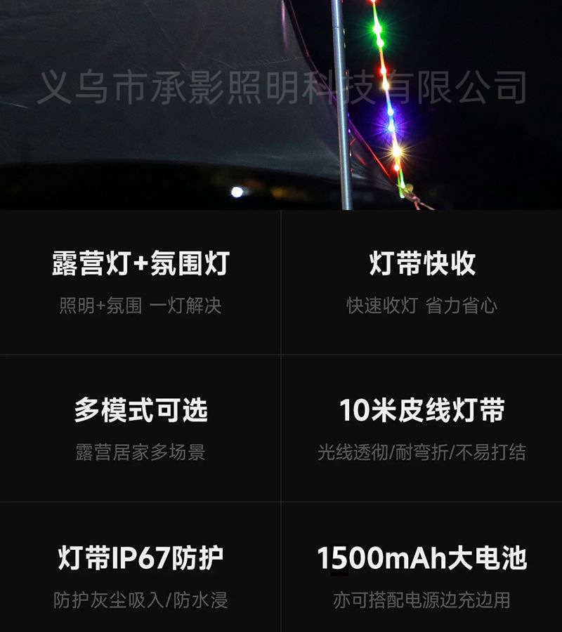 야외용 태양광 캠핑 조명 스트링, 텐트 줄자 조명, 걸이형 조명, 캠프 조명, 분위기 조명, 캠핑 컬러풀 조명
