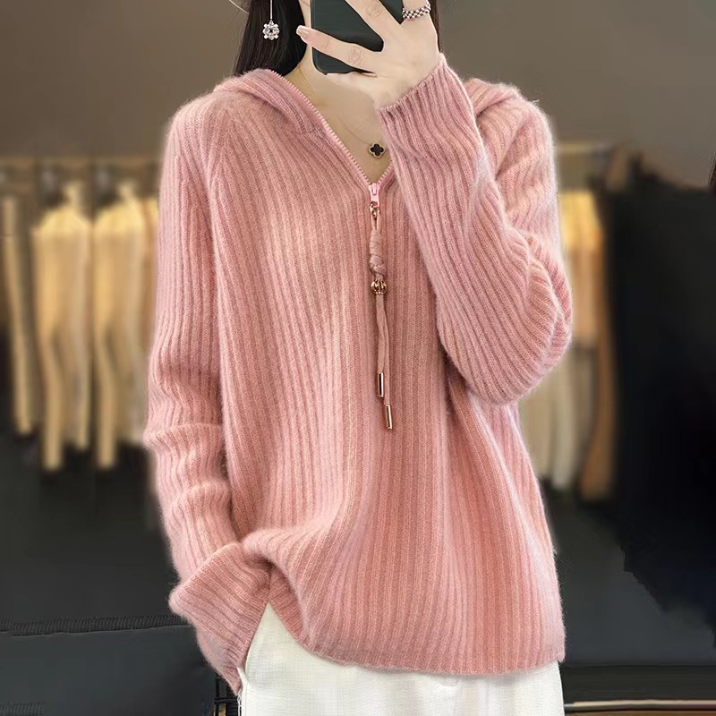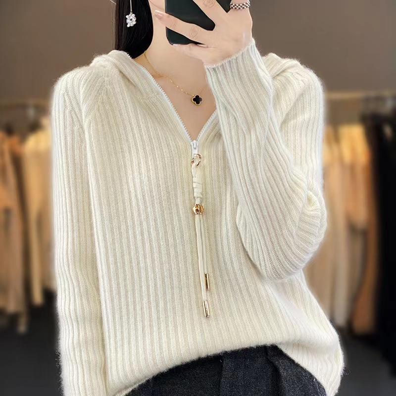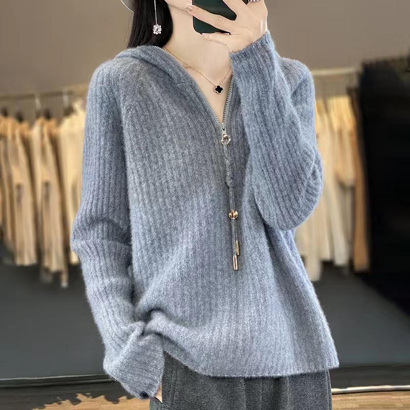 가을과 겨울 새로운 두꺼운 하프 지퍼 울 스웨터 여성의 느슨한 풀오버 스웨터 후드 스웨터스토어 가기