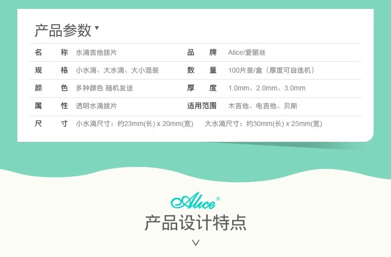 앨리스 앨리스 100 조각 박스형 작은 물방울 기타베이스 픽 1.0 2.0 3.0mm스토어 가기