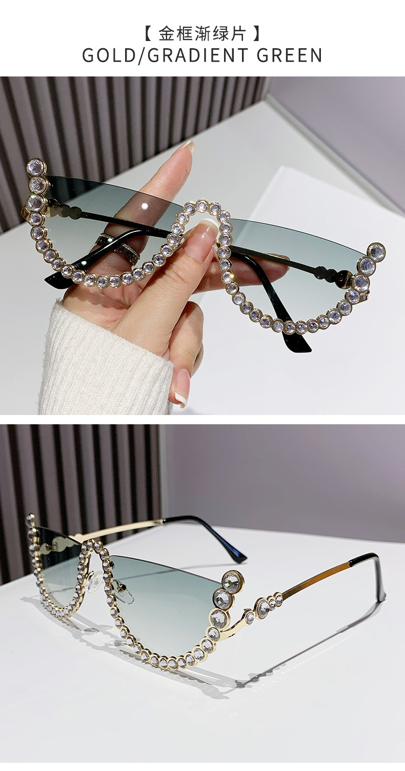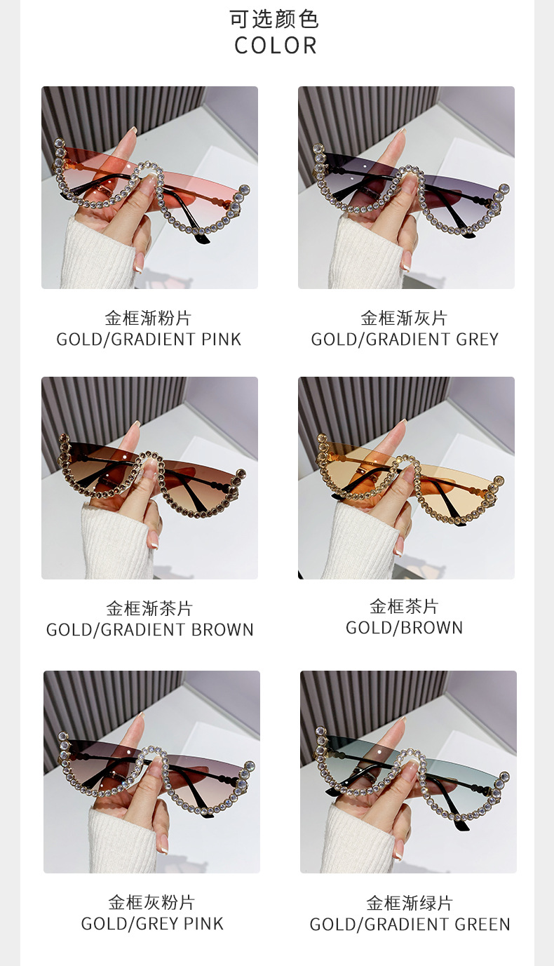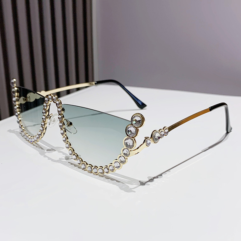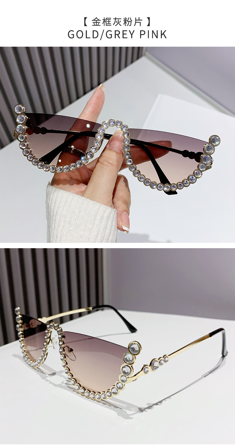 새로운 다이아몬드 박힌 개인화 된 패션 유럽과 미국 선글라스 크로스 보더 인터넷 연예인 패션 복고풍 선글라스 다기능 파티 안경
