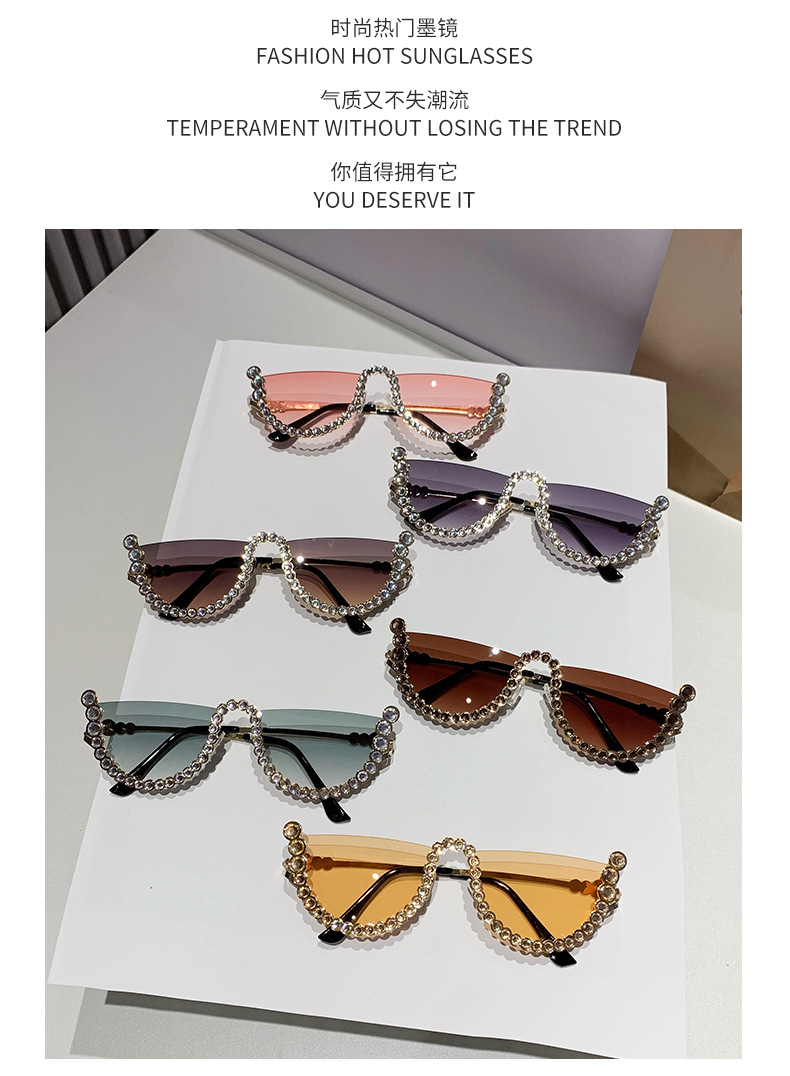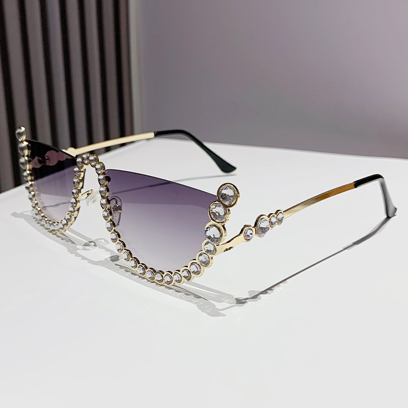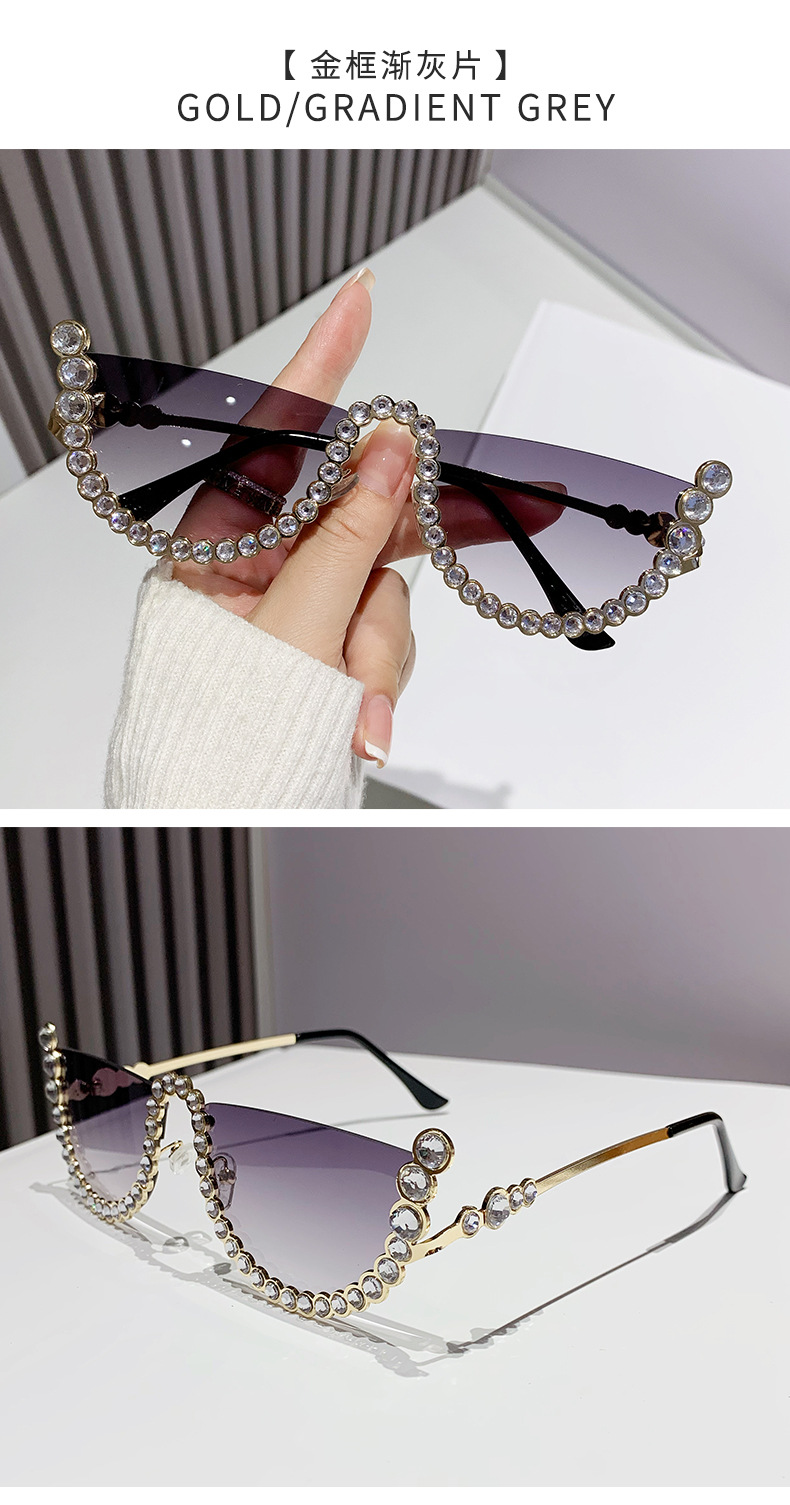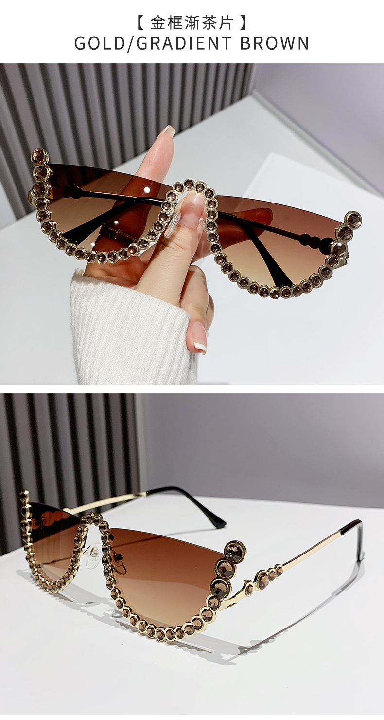 새로운 다이아몬드 박힌 개인화 된 패션 유럽과 미국 선글라스 크로스 보더 인터넷 연예인 패션 복고풍 선글라스 다기능 파티 안경