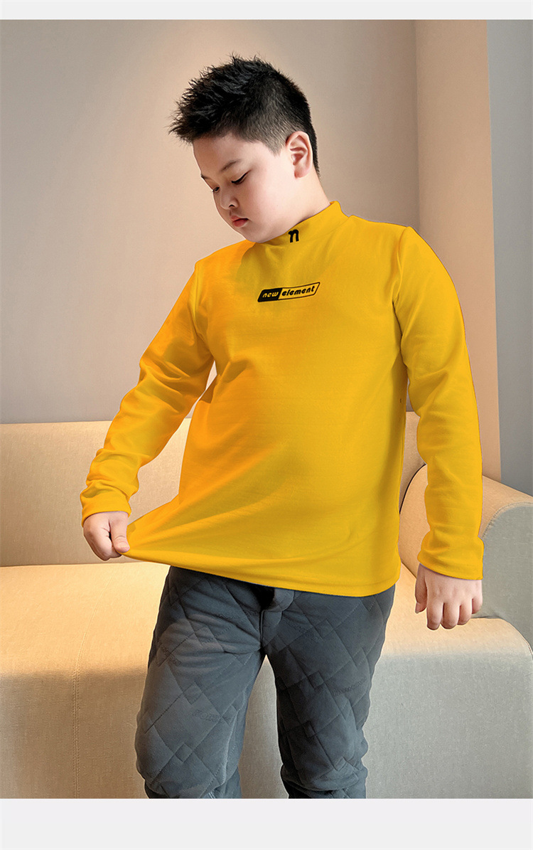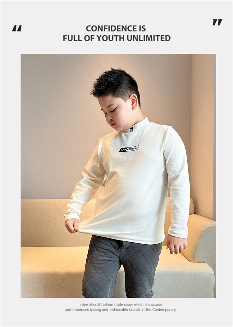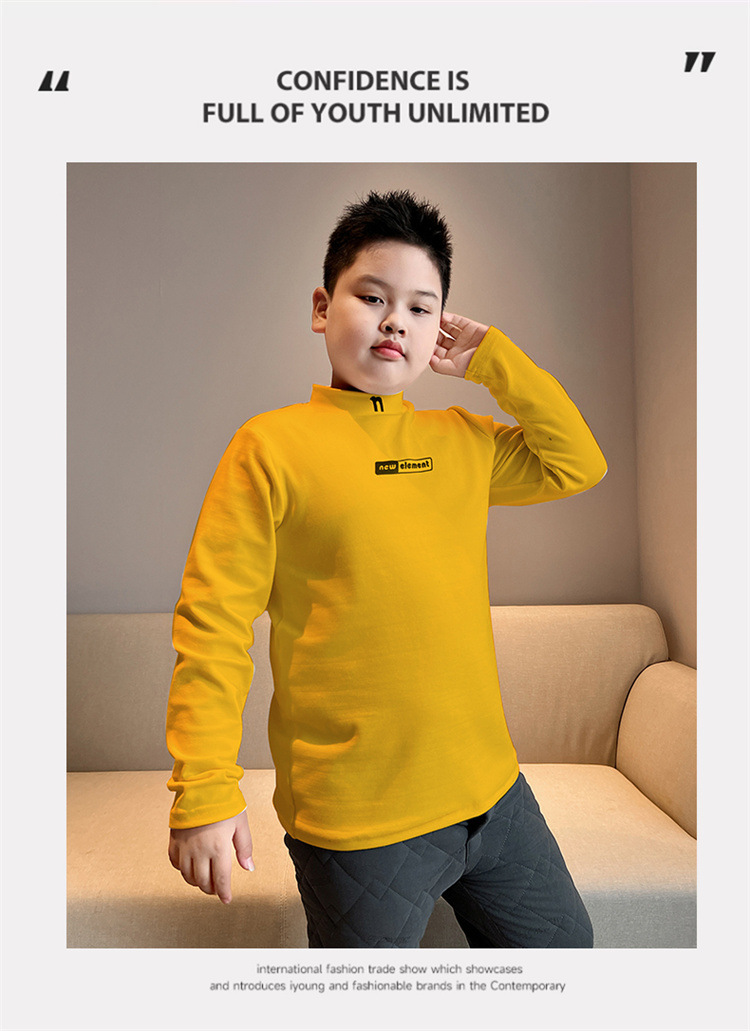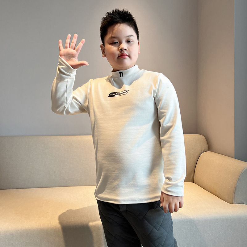 통통한 아동복 소년 소녀 긴팔 티셔츠 가을과 겨울 특대형 중형 두께 코튼 탑 미드 하이 칼라 베이스 셔츠