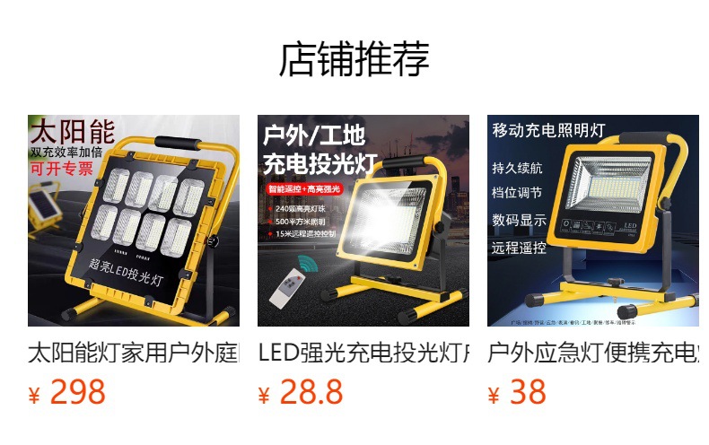 충전식 투광등 야외 비상등 건설 현장 정전 조명 캠핑 노점 휴대용 리튬 배터리 비상 조명스토어 가기