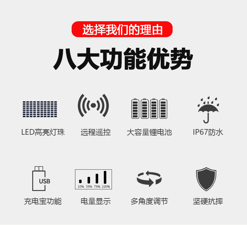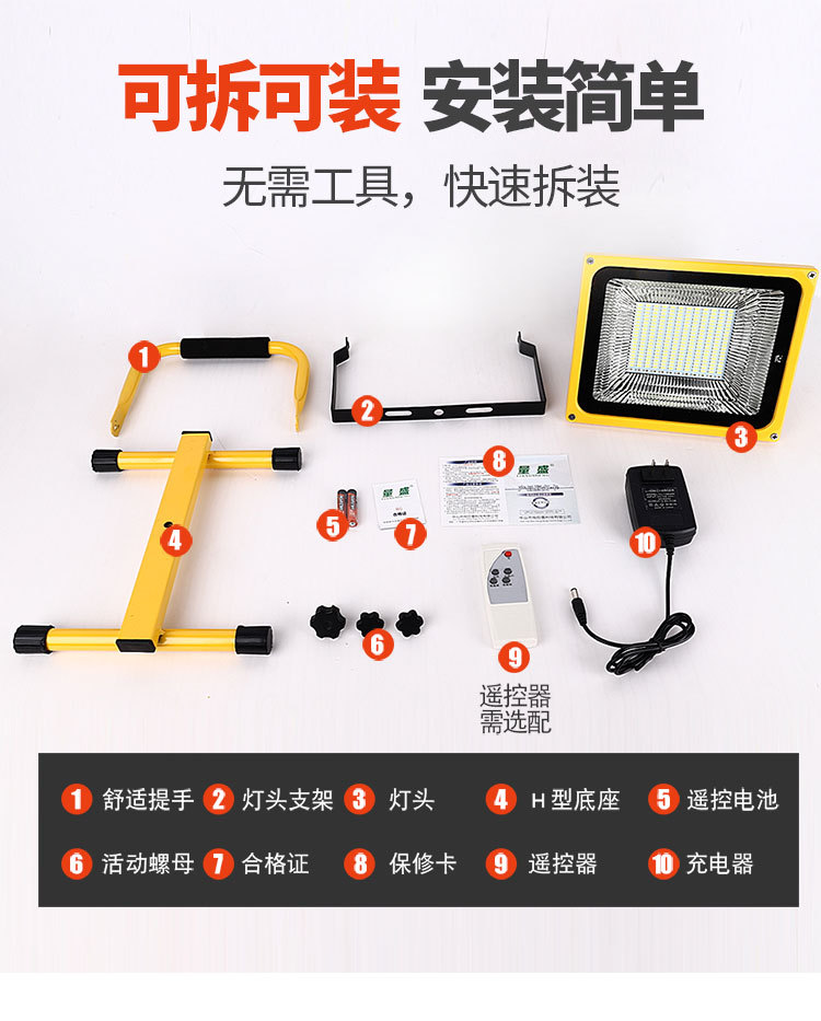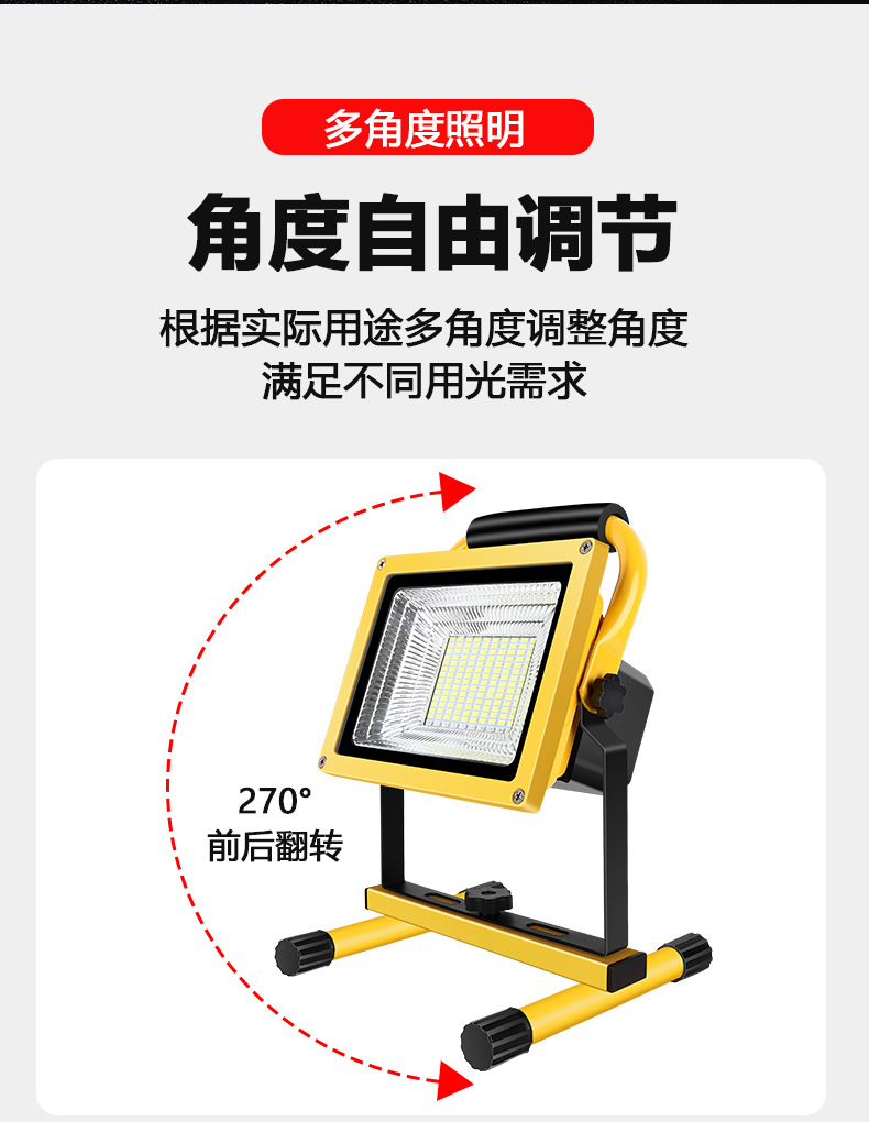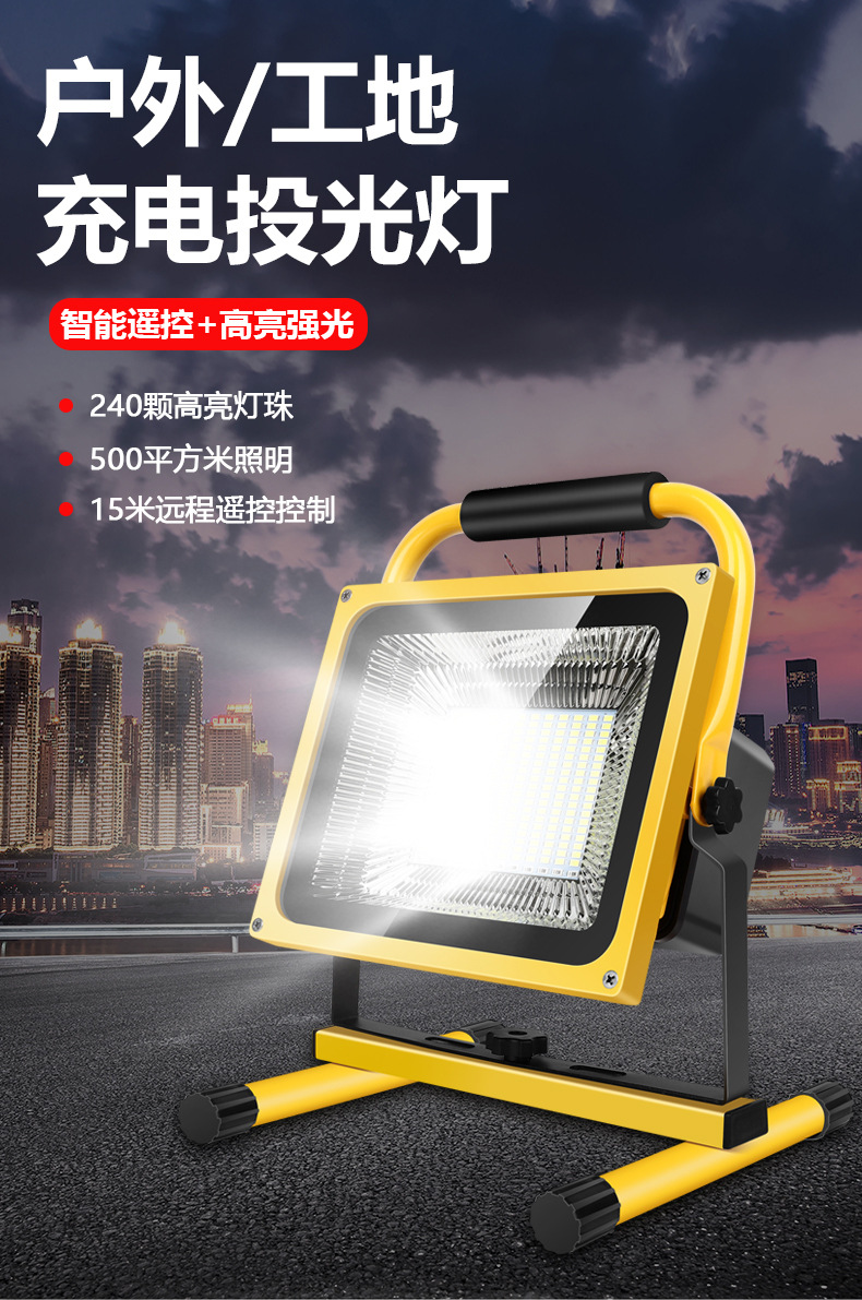 충전식 투광등 야외 비상등 건설 현장 정전 조명 캠핑 노점 휴대용 리튬 배터리 비상 조명