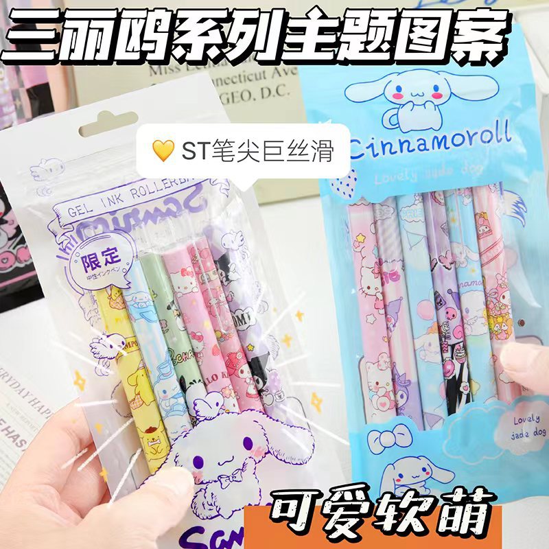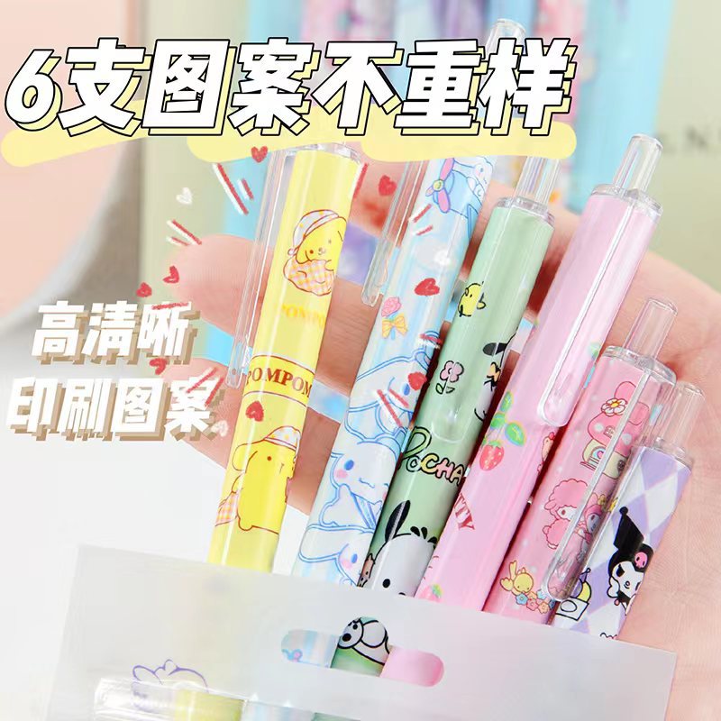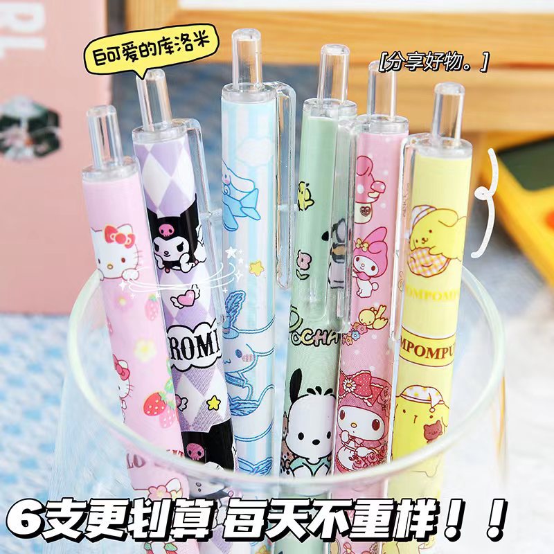 산리오 포켓 프레스 펜 귀여운 높은 색상 가치 젤 펜 프레스 펜 st 검은 만화 소녀 심장 브러시 펜