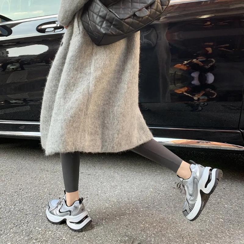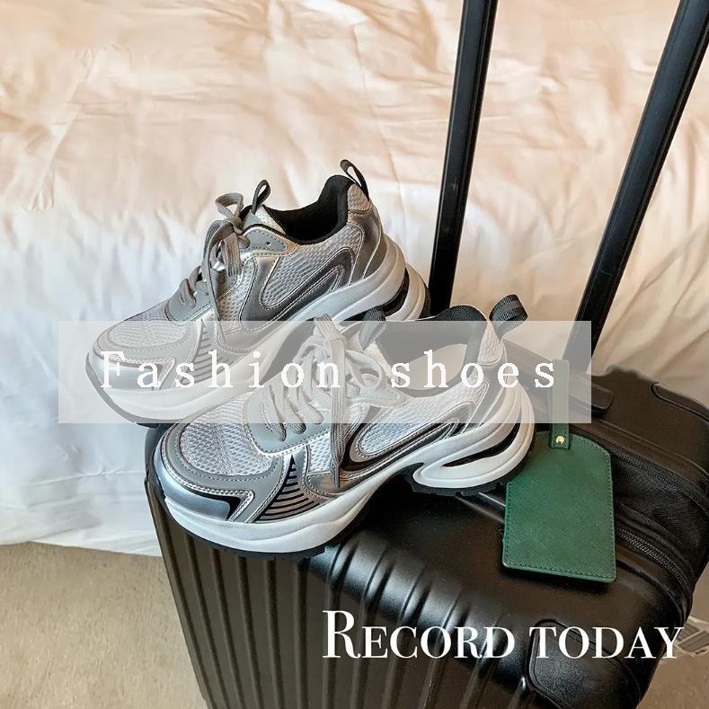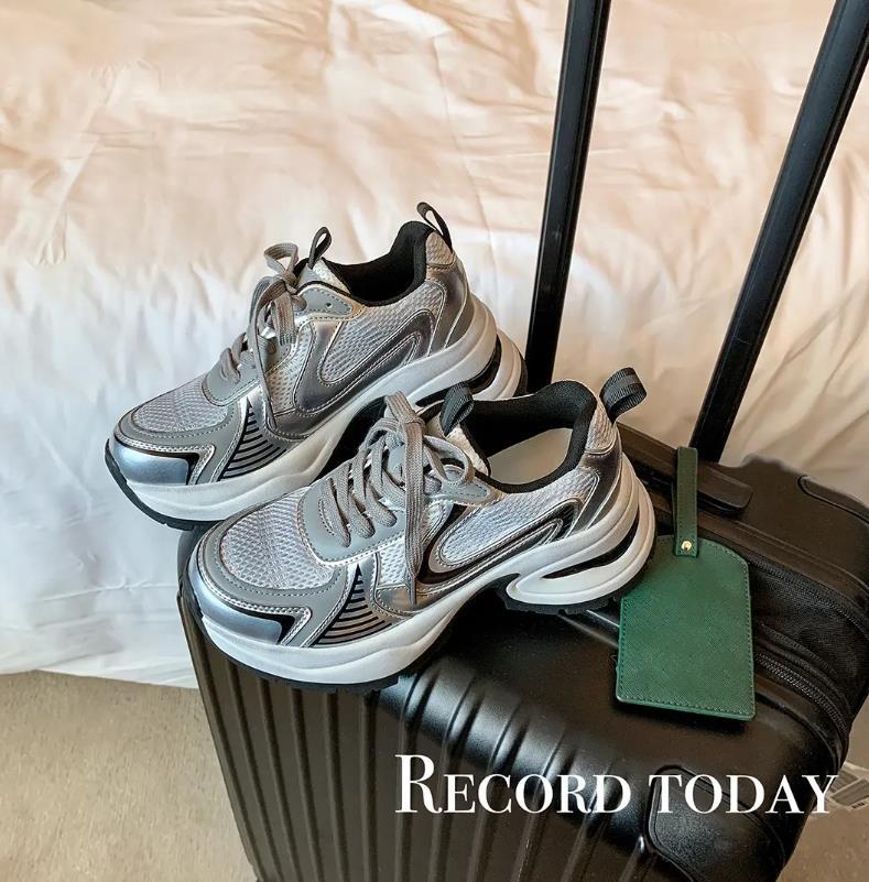 2023 가을과 겨울 새로운 실버 아버지 신발 여성 2023 새로운 신발 가죽 두꺼운 바닥 메쉬 캐주얼 운동화스토어 가기