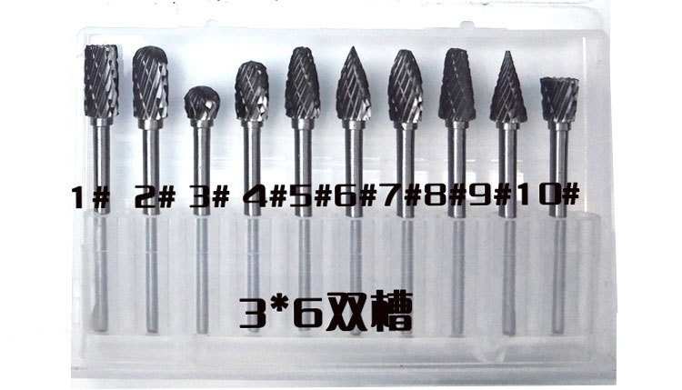 텅스텐 강철 연삭 헤드 밀링 커터 카바이드 회전 파일 목공 금속 조각 나무 조각 뿌리 조각 단일 및 이중 곡물 10 세트
