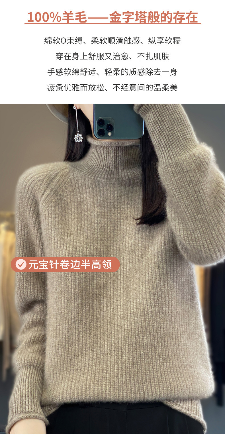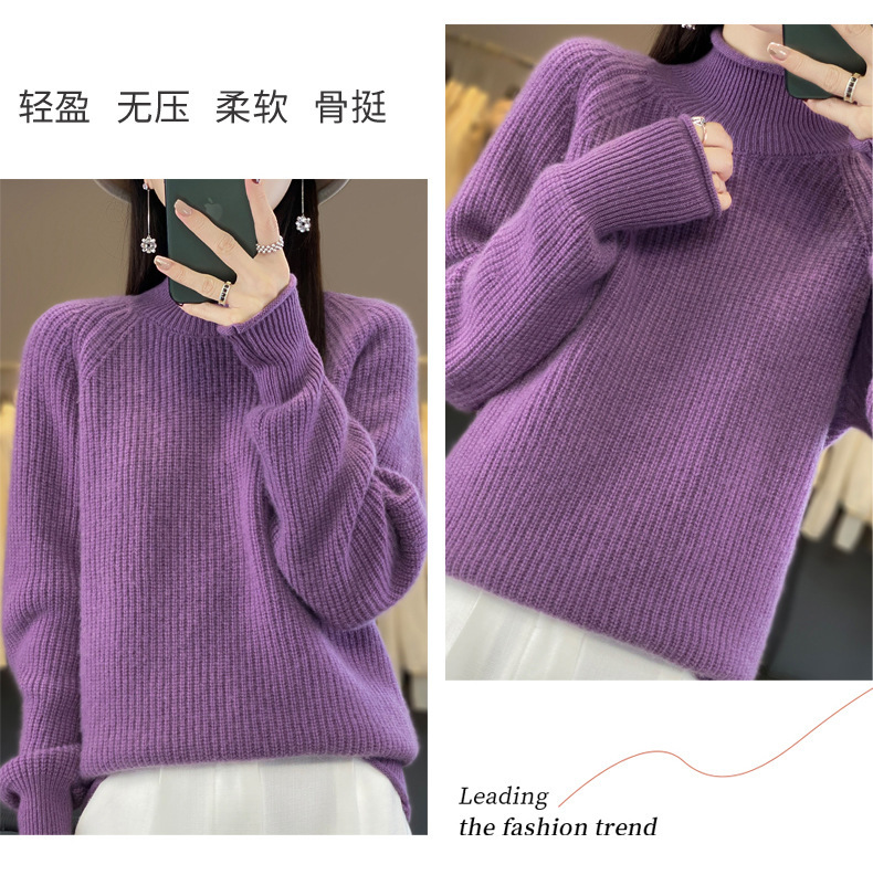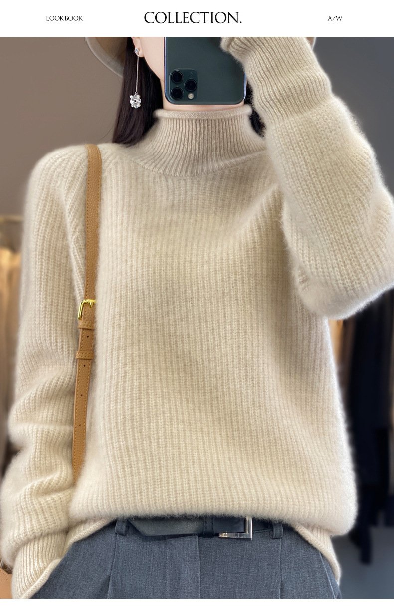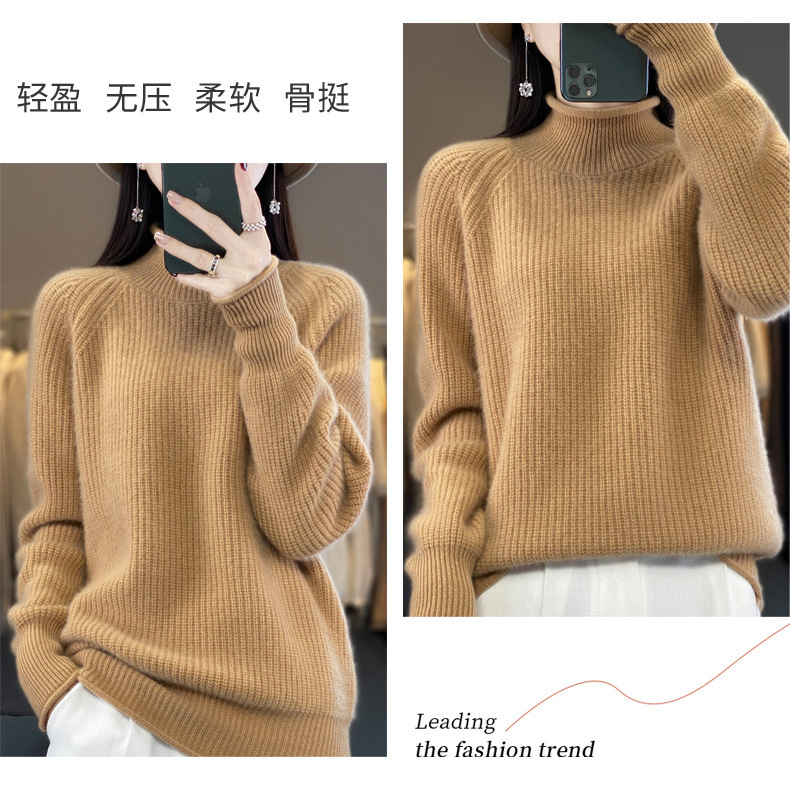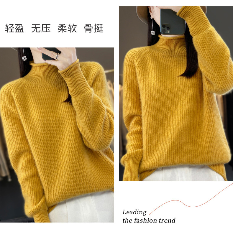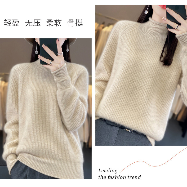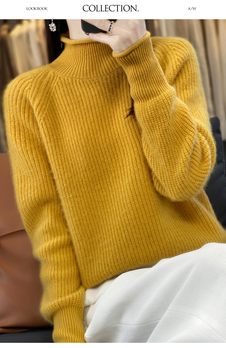 2023 가을과 겨울 새로운 여성용 롤업 하프 터틀넥 스웨터 느슨한 우아한 모든 매치 니트베이스 두꺼운 울 스웨터스토어 가기