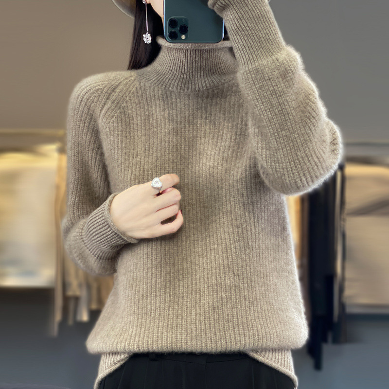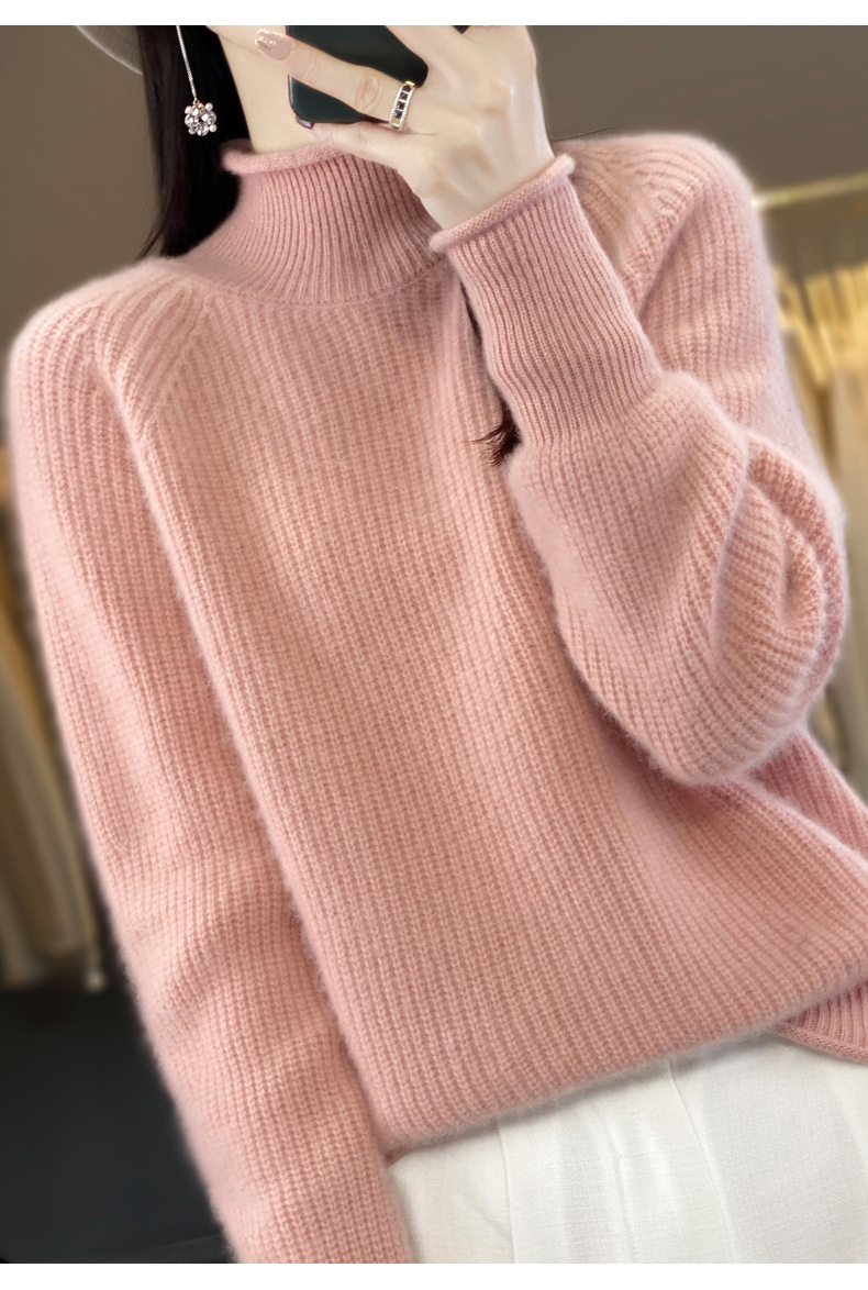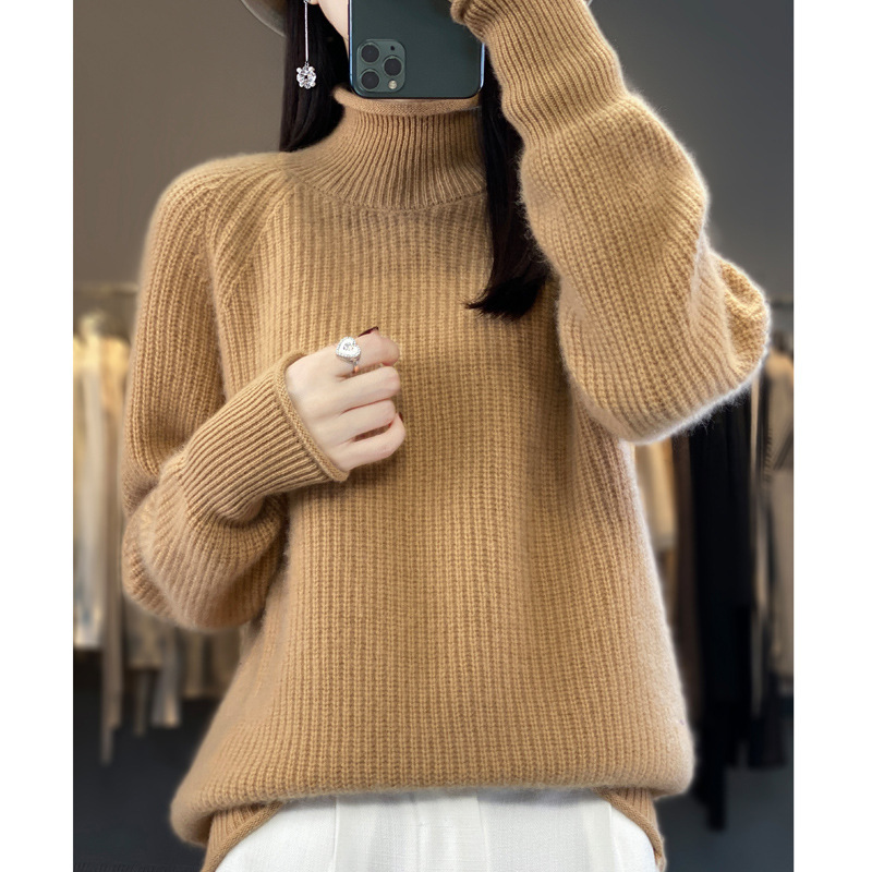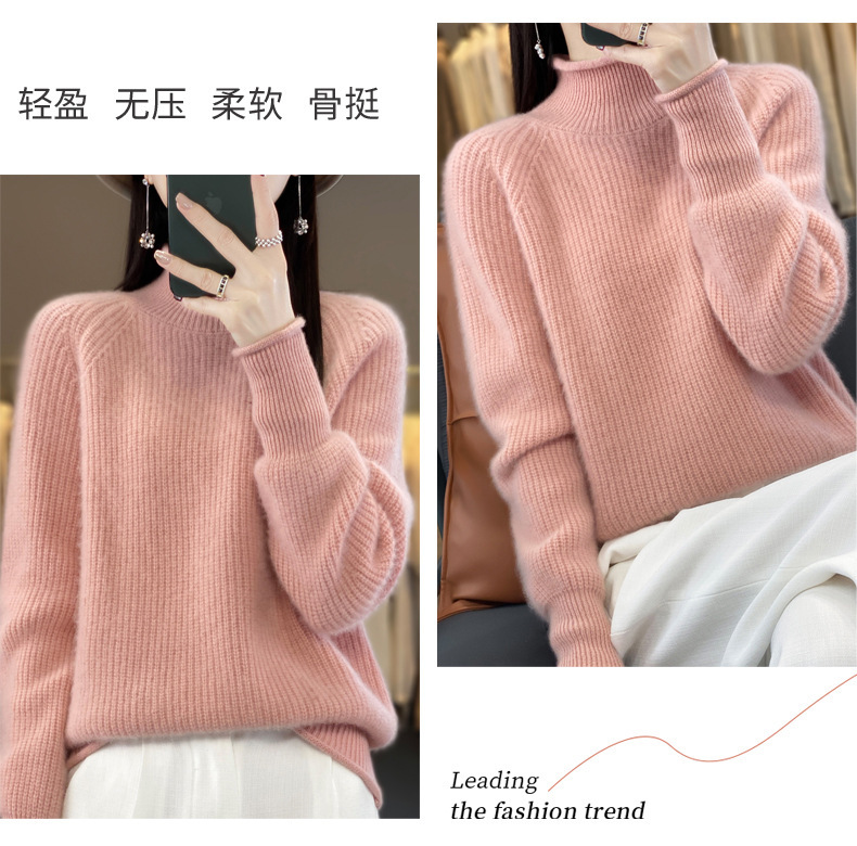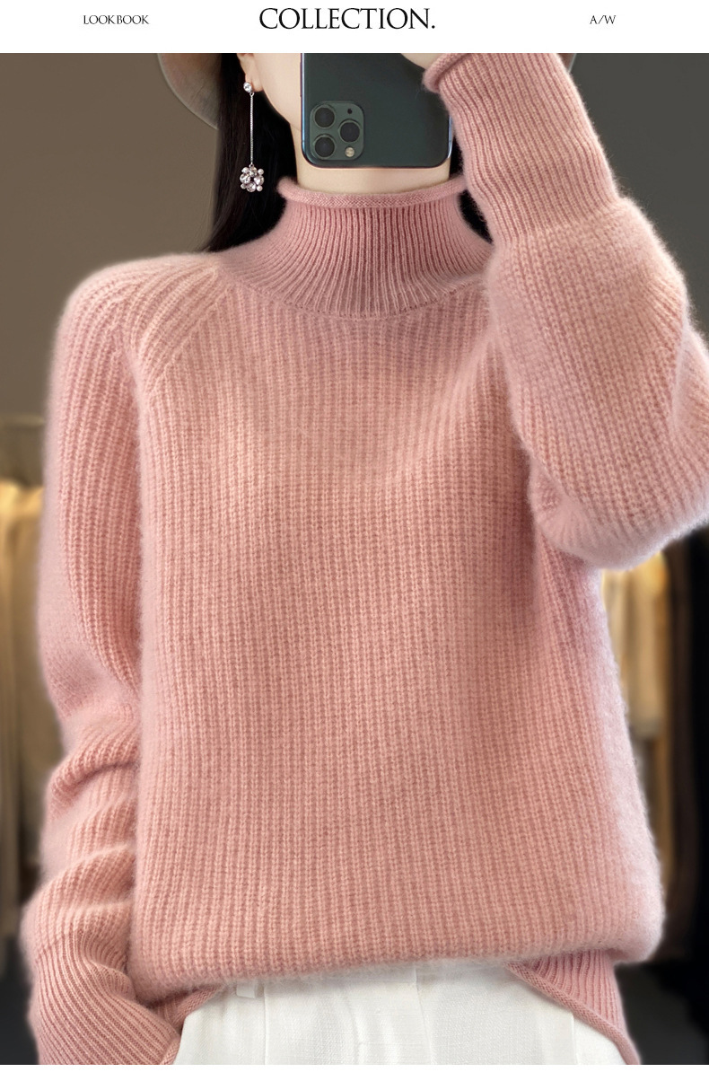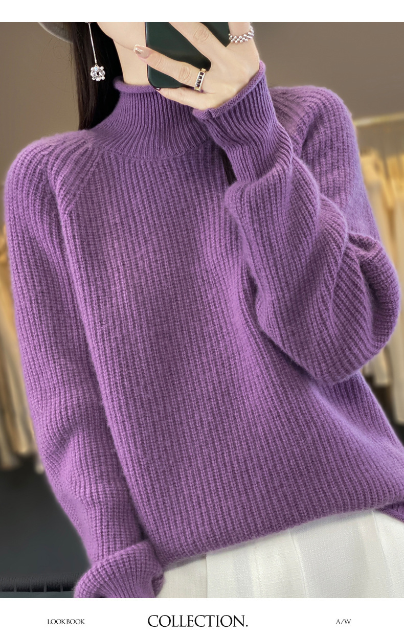 2023 가을과 겨울 새로운 여성용 롤업 하프 터틀넥 스웨터 느슨한 우아한 모든 매치 니트베이스 두꺼운 울 스웨터스토어 가기
