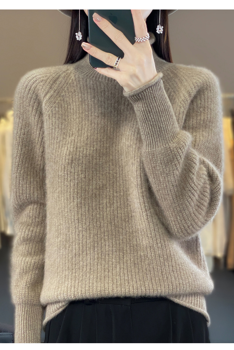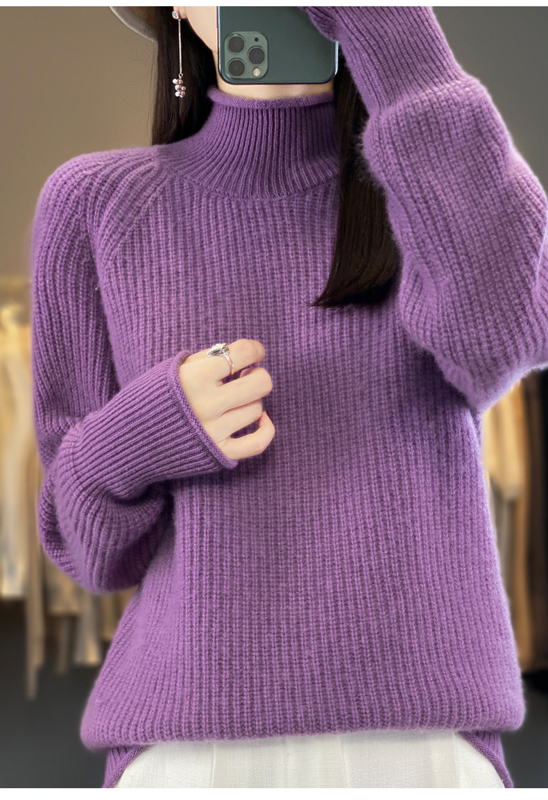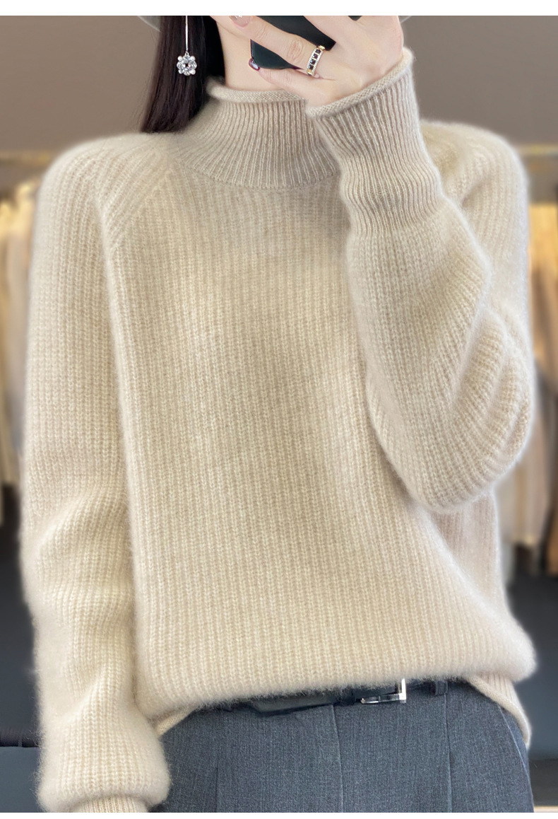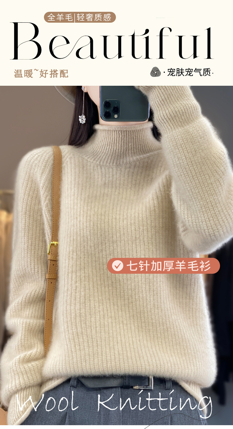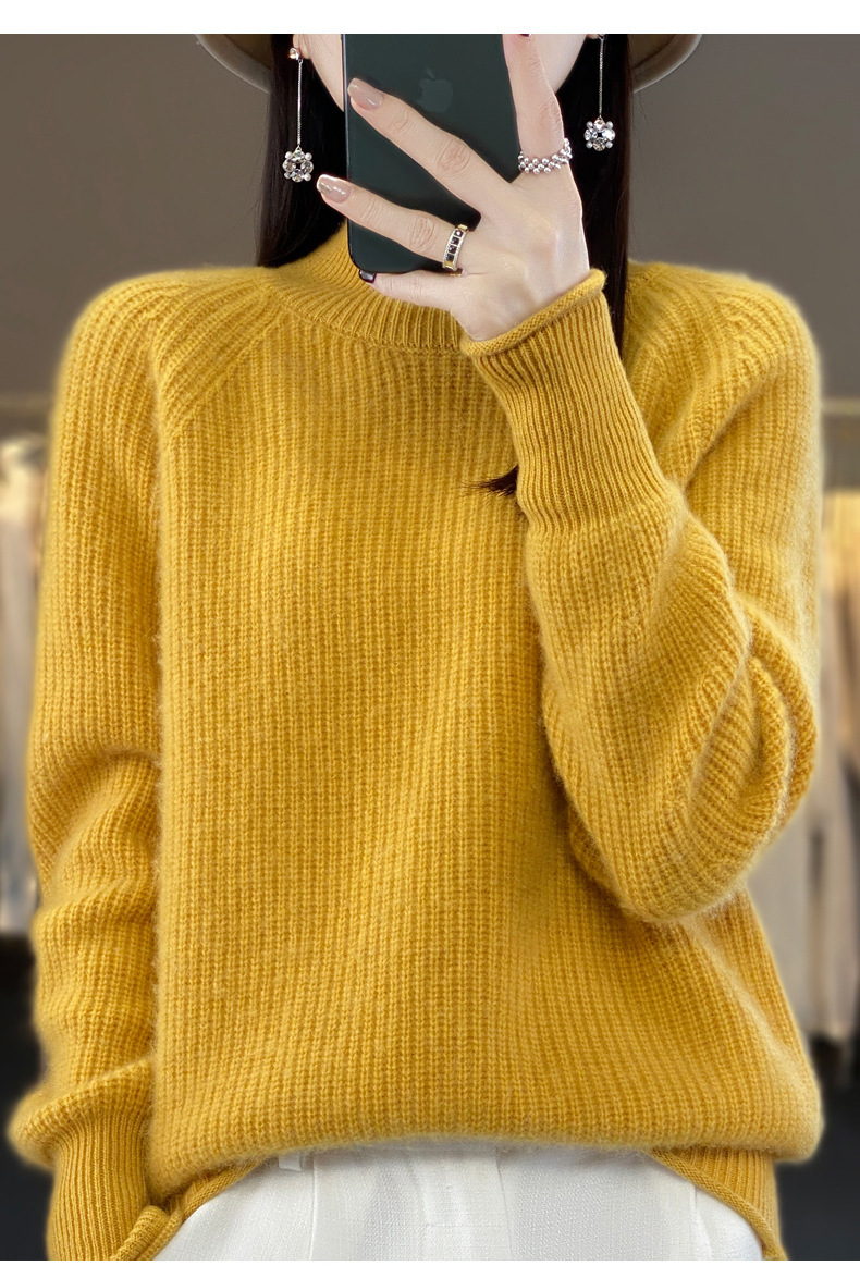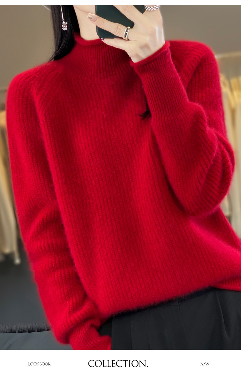 2023 가을과 겨울 새로운 여성용 롤업 하프 터틀넥 스웨터 느슨한 우아한 모든 매치 니트베이스 두꺼운 울 스웨터스토어 가기