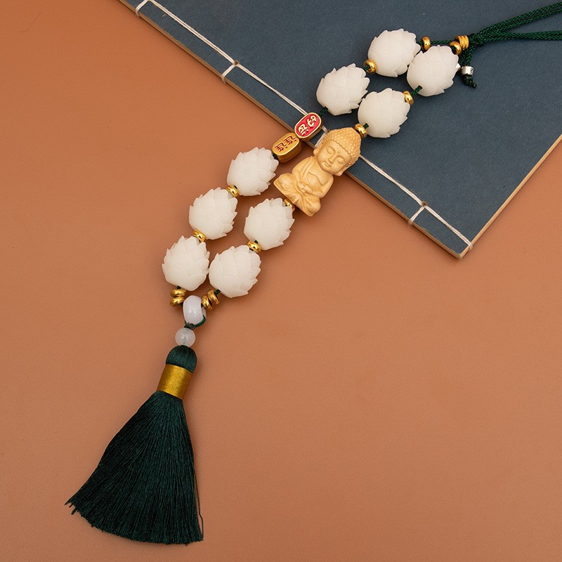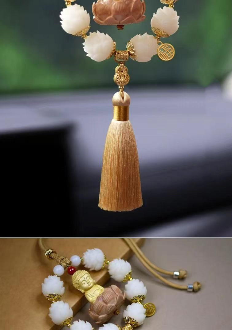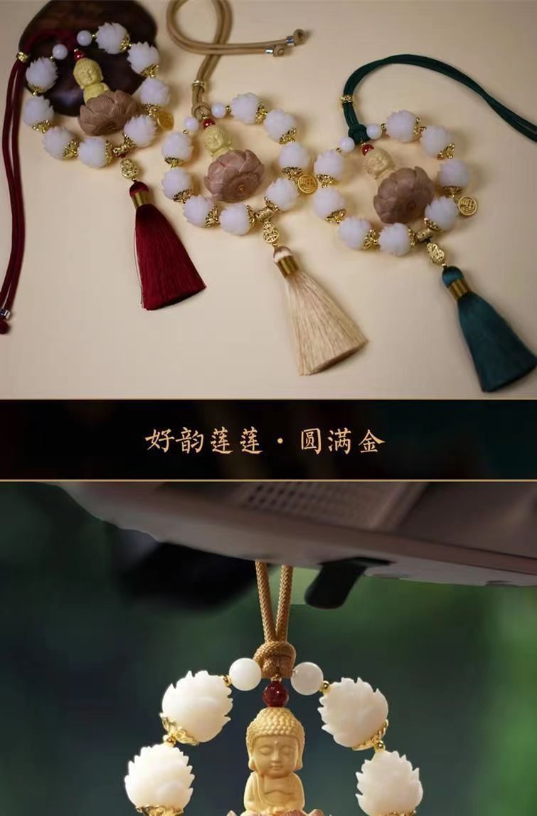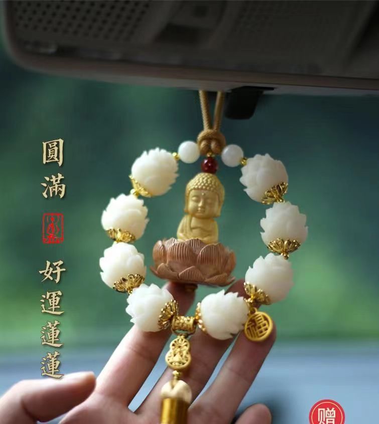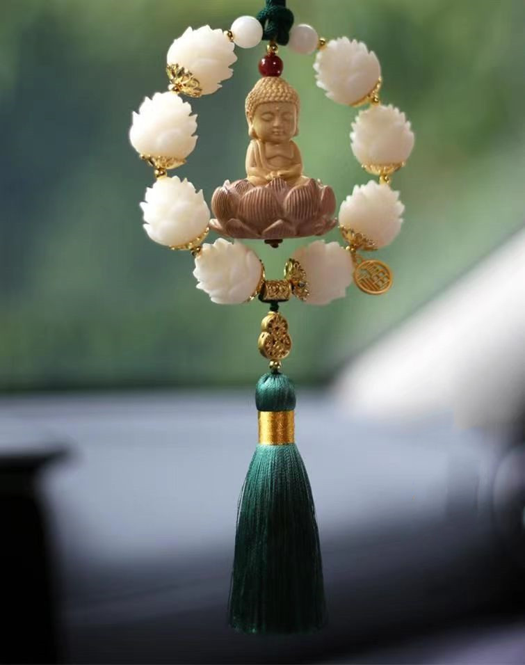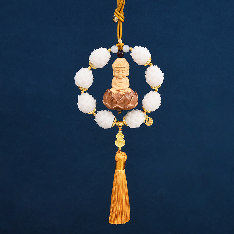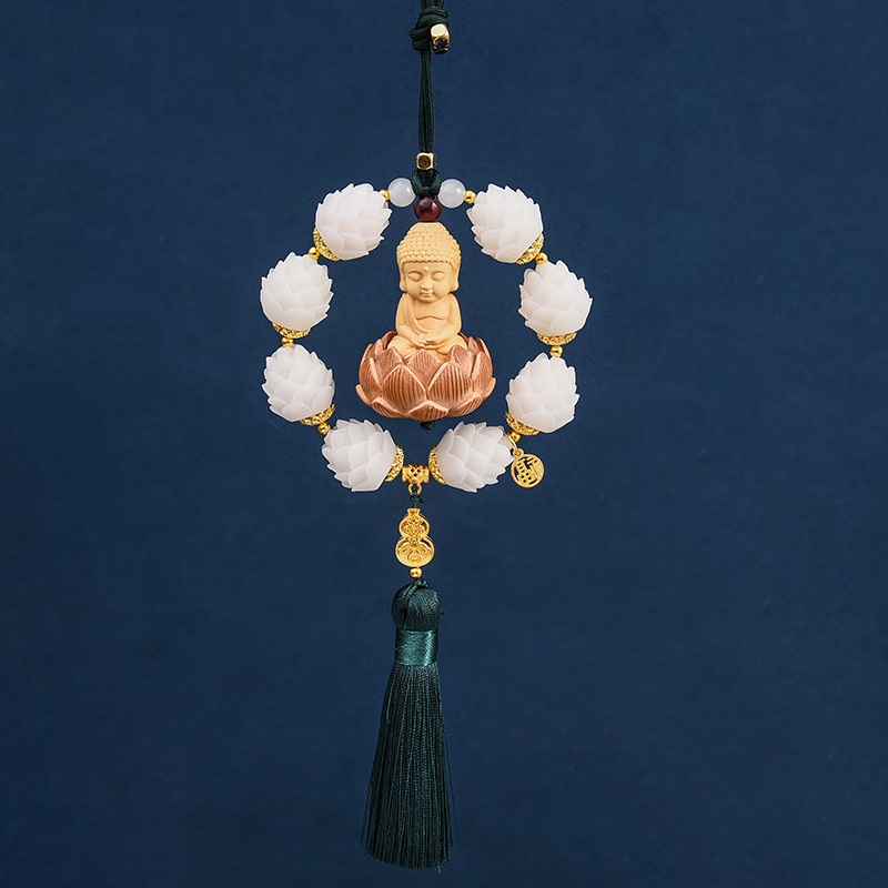 새로운 행운 자동차 펜던트 회양목 작은 부처 펜던트 자동차 보디 로터스 백미러 장식 용품