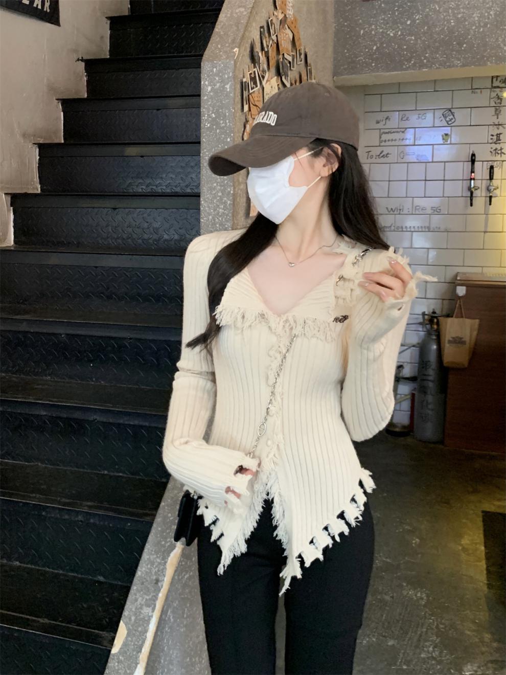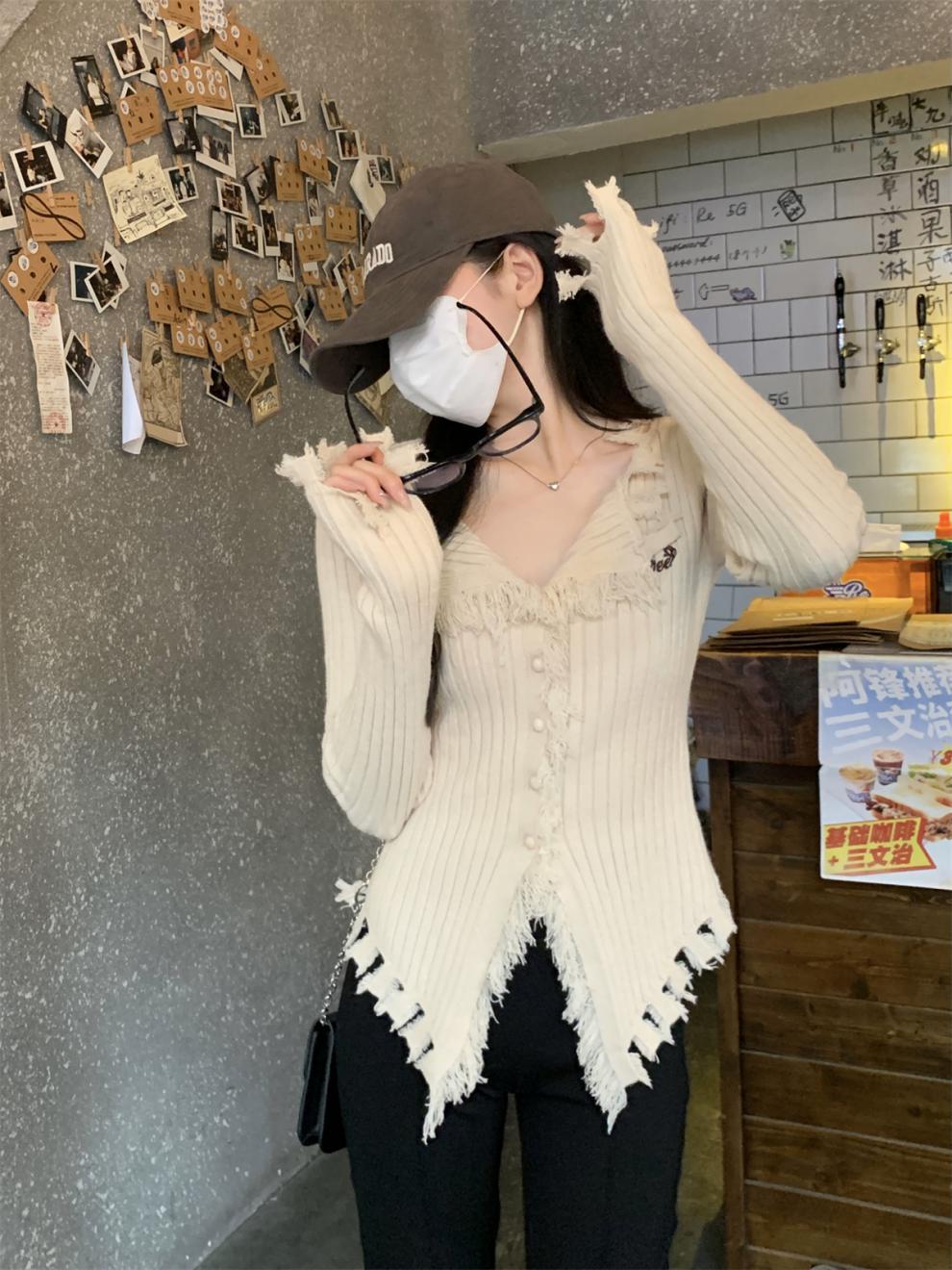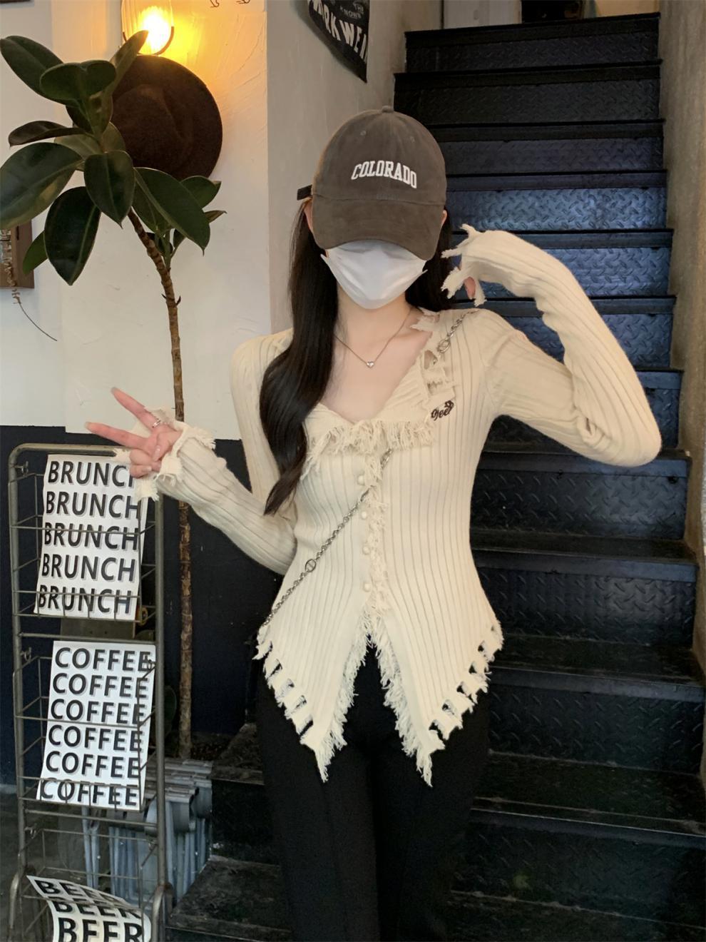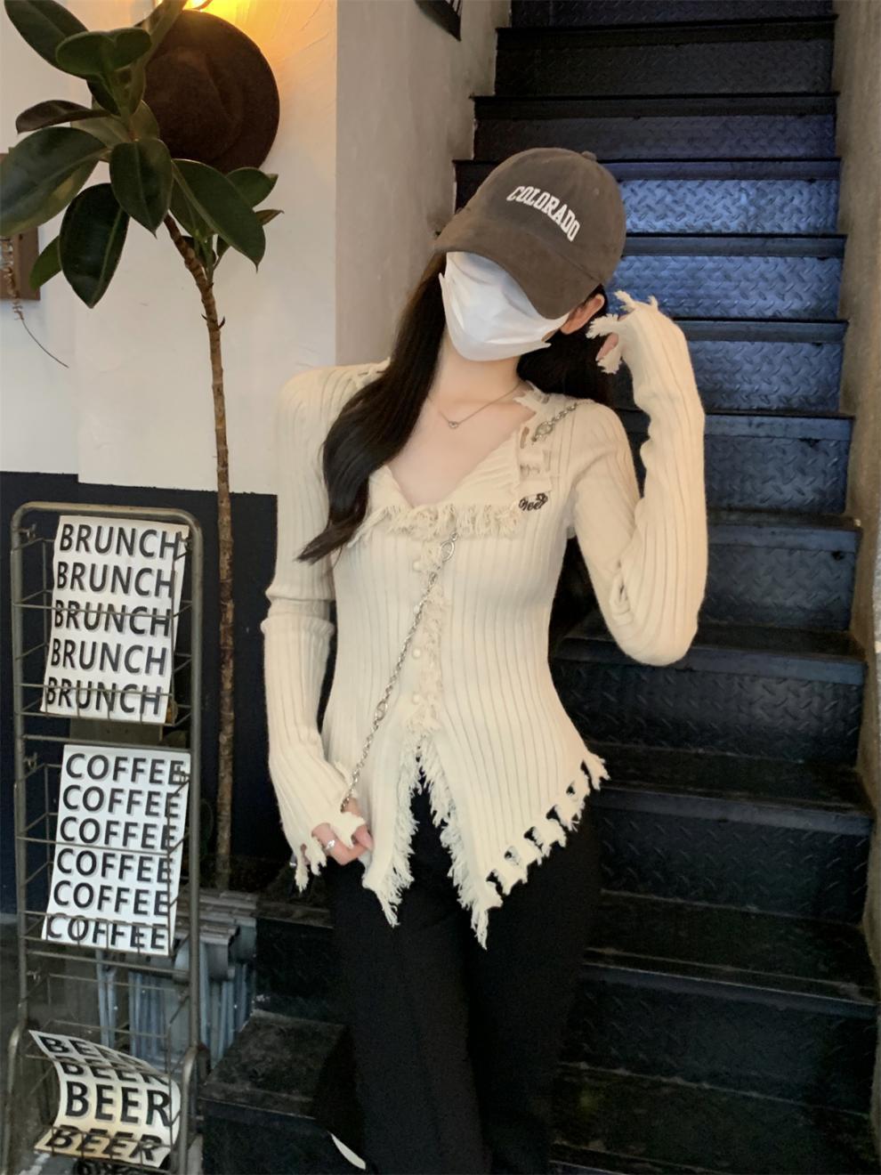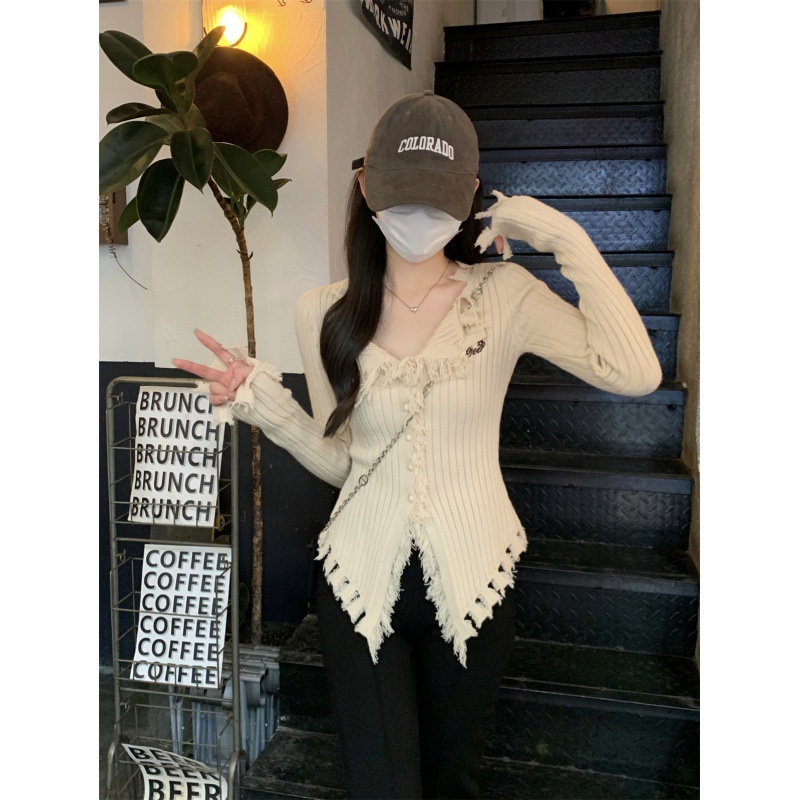 디자인감 있는 브이넥 스웨터 여성용 가을 겨울 신상 슬림핏 독특한 카디건 상의 출근룩스토어 가기