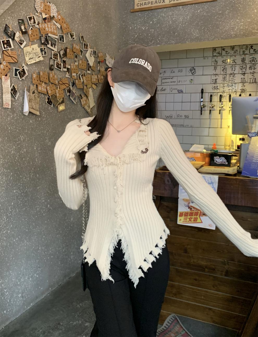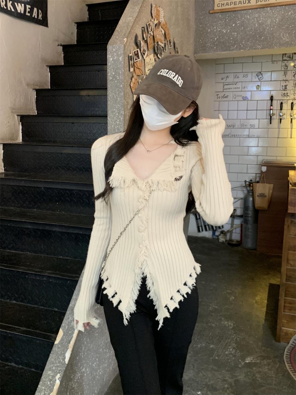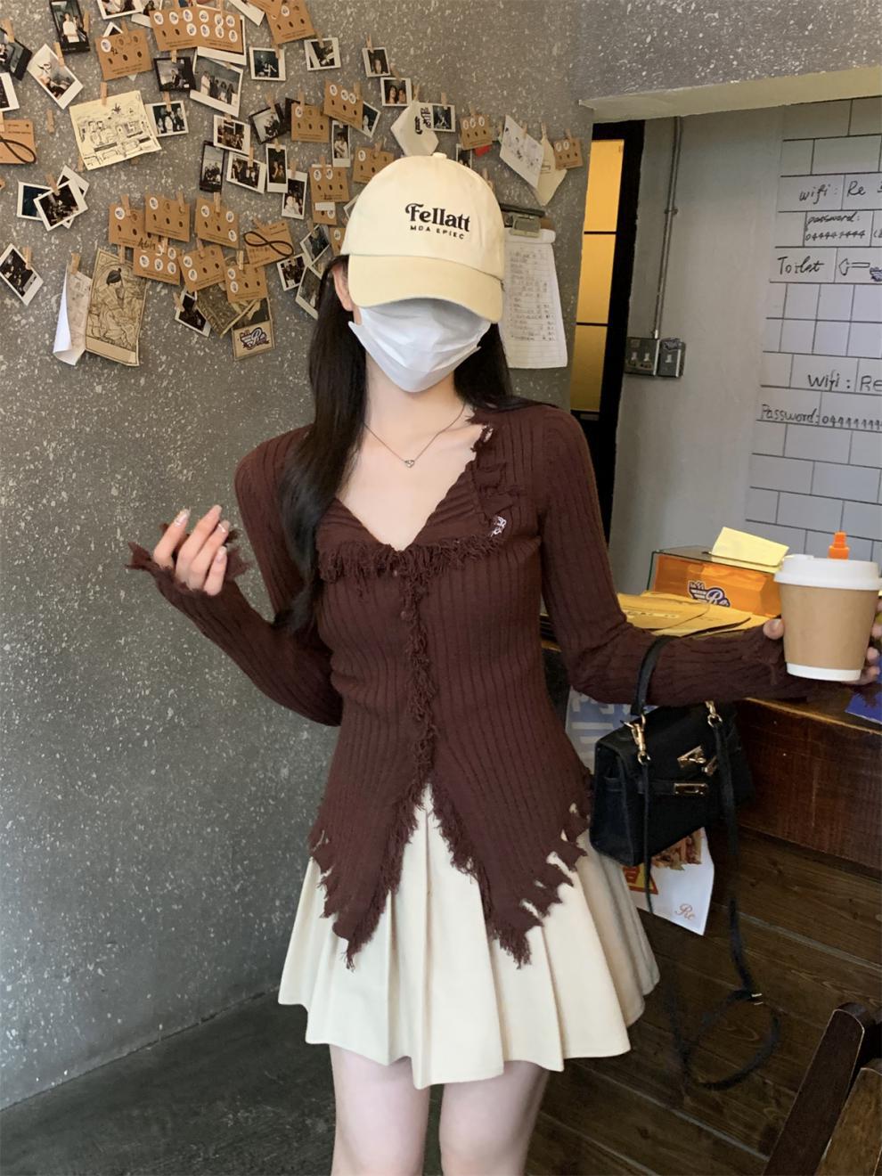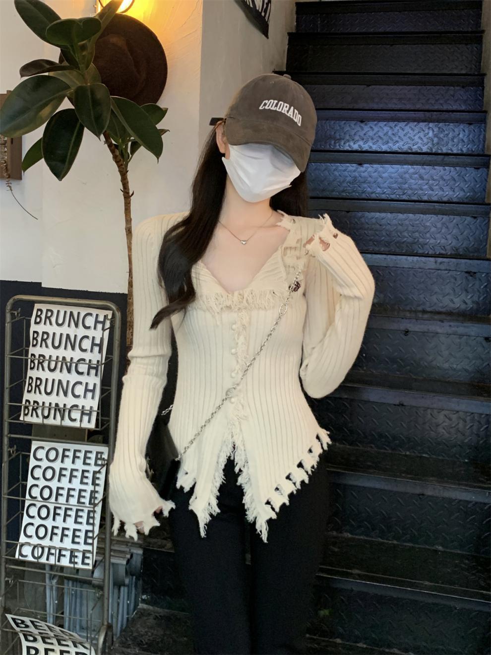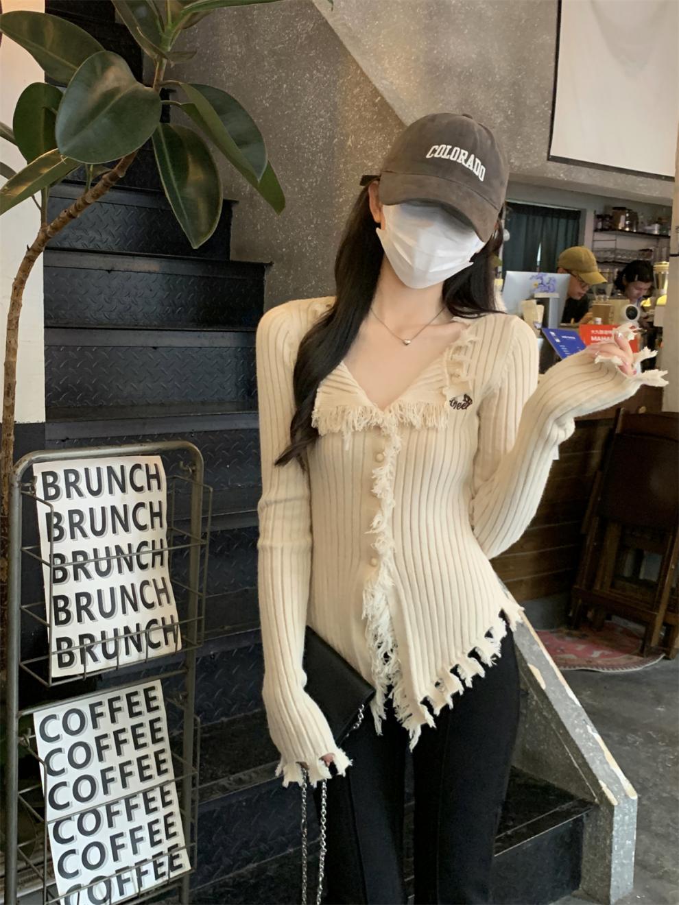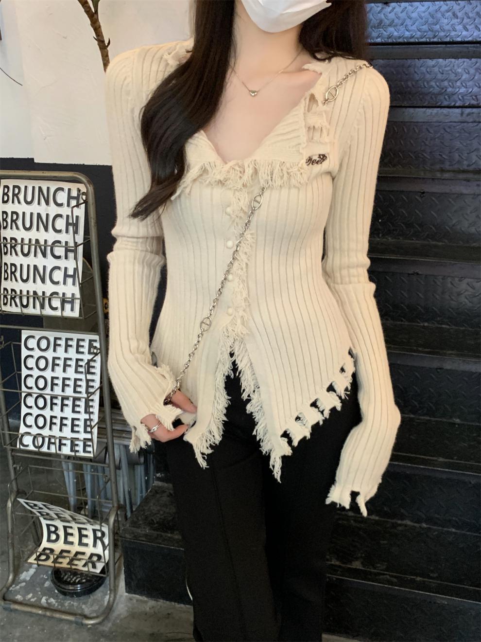 디자인감 있는 브이넥 스웨터 여성용 가을 겨울 신상 슬림핏 독특한 카디건 상의 출근룩스토어 가기