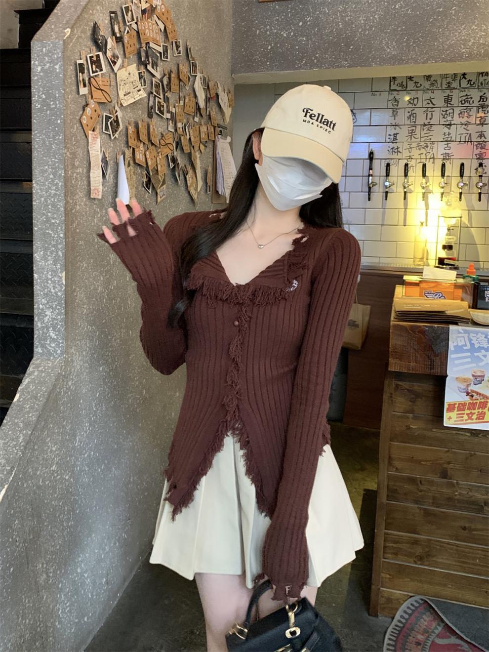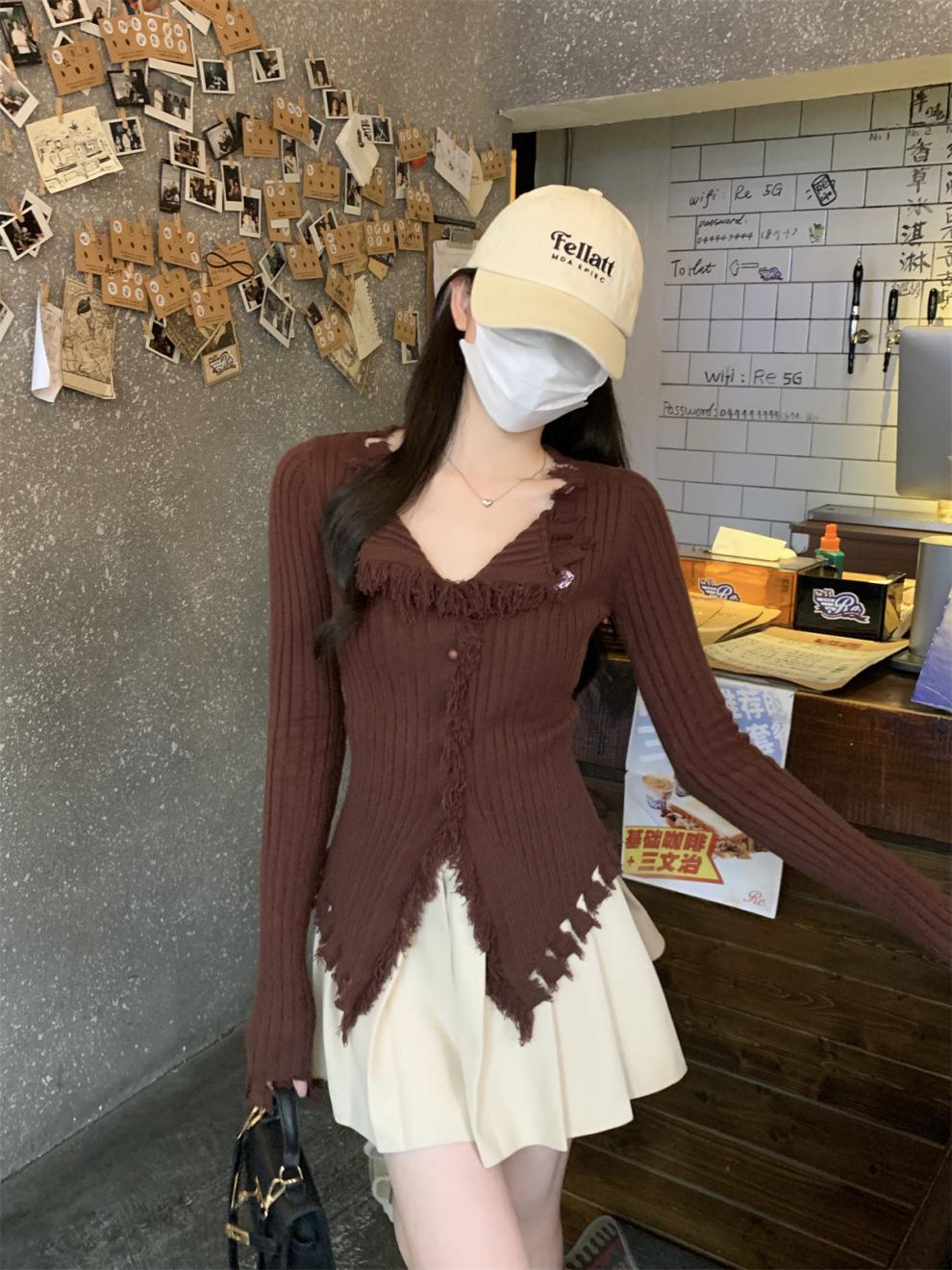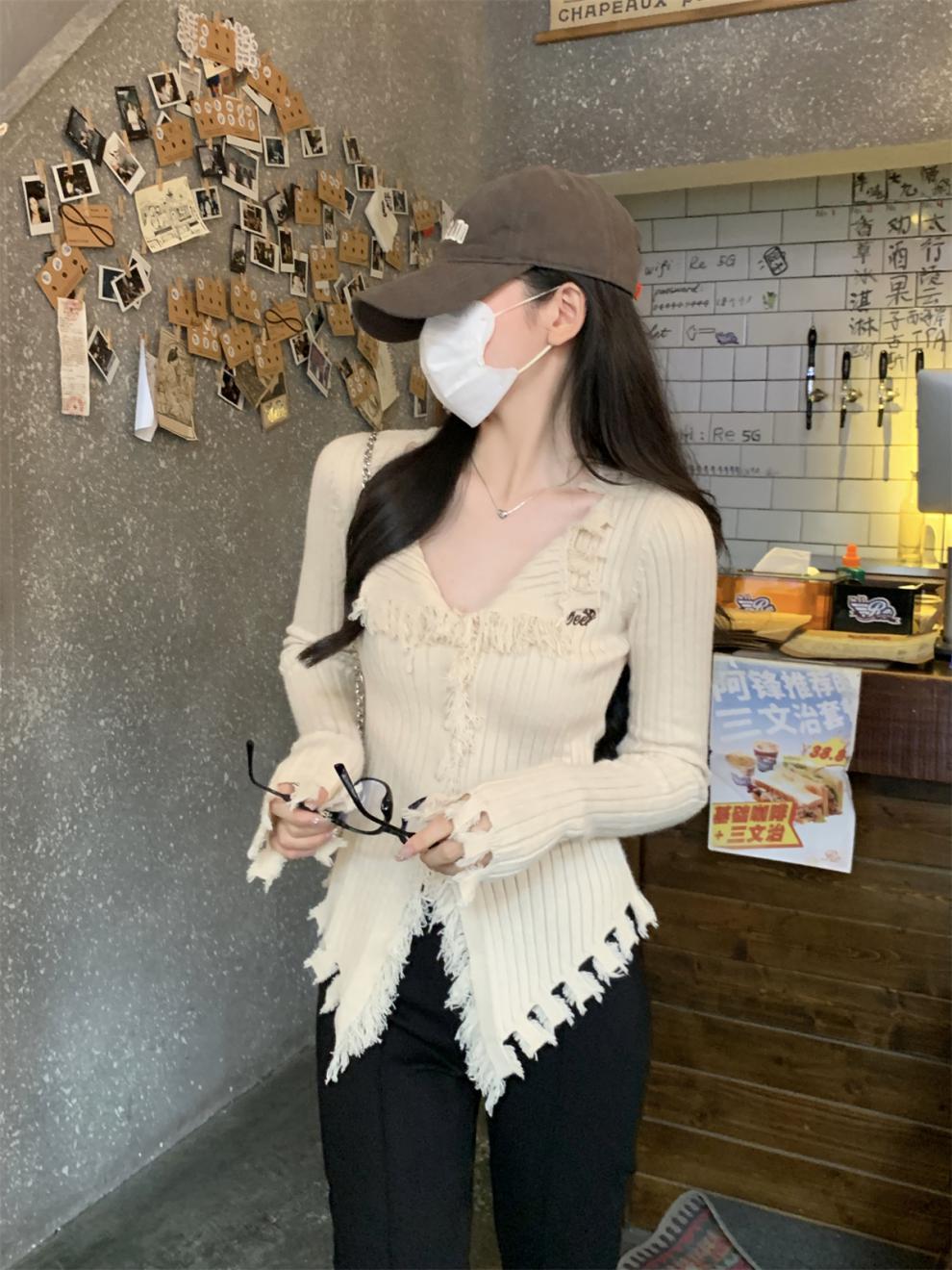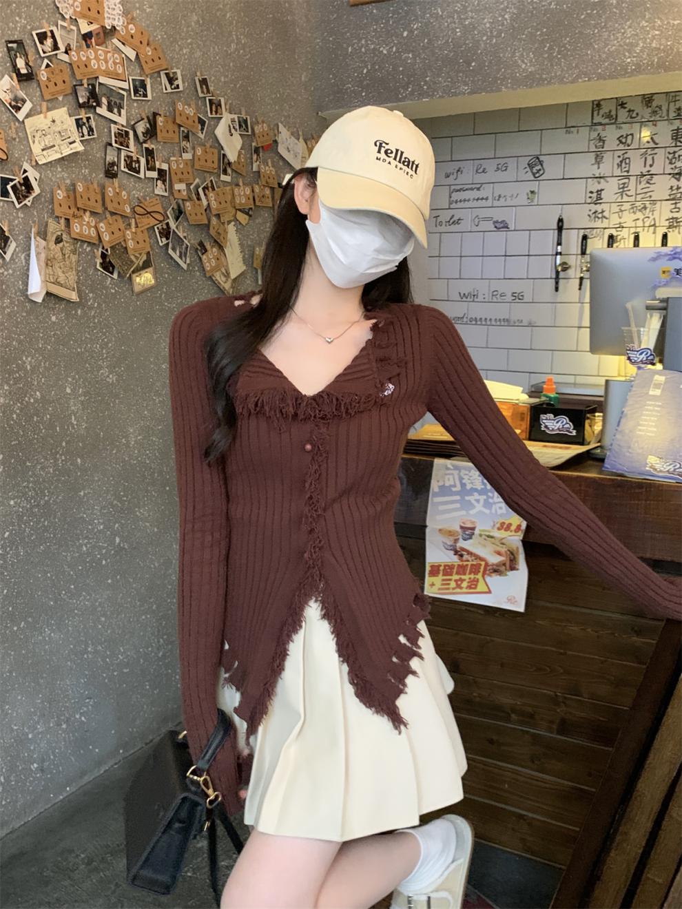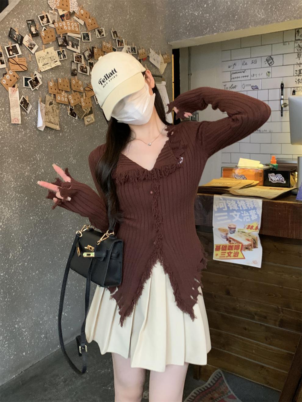 디자인감 있는 브이넥 스웨터 여성용 가을 겨울 신상 슬림핏 독특한 카디건 상의 출근룩스토어 가기