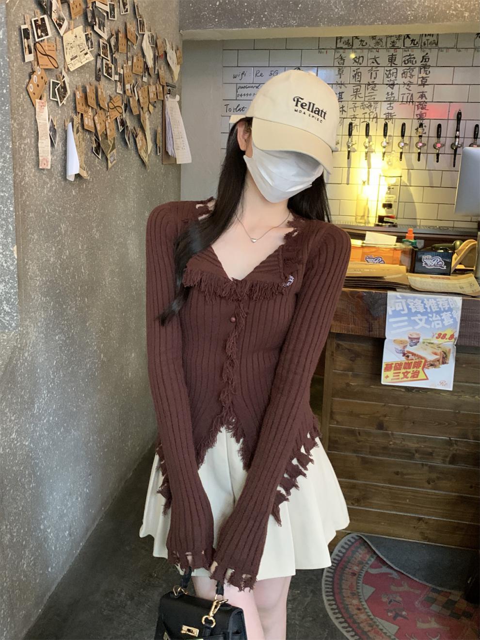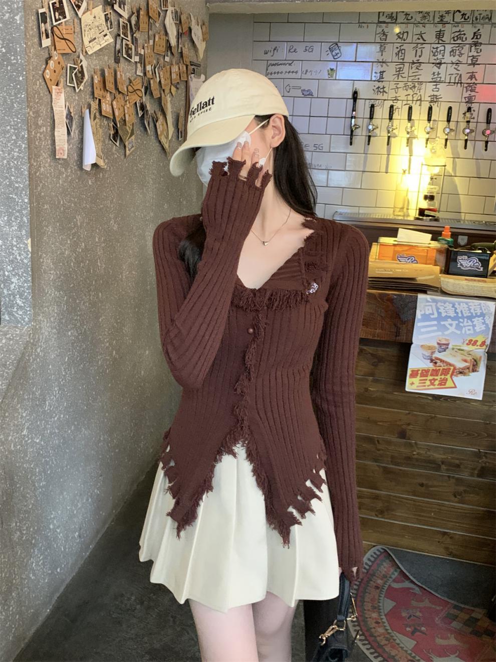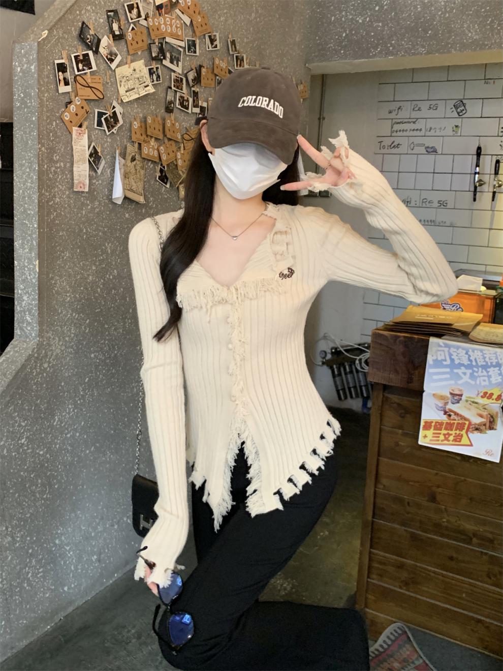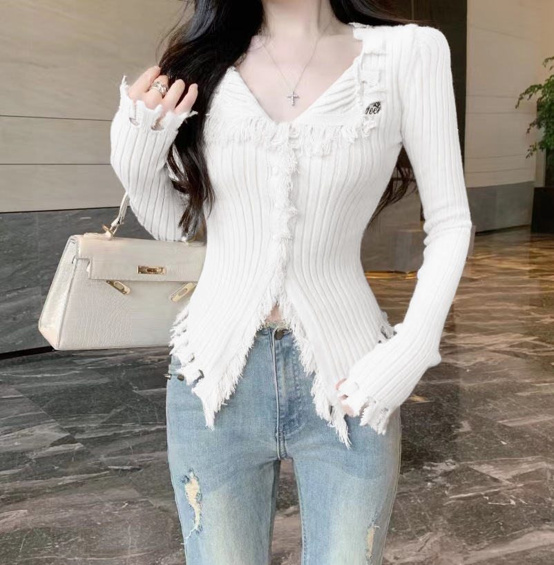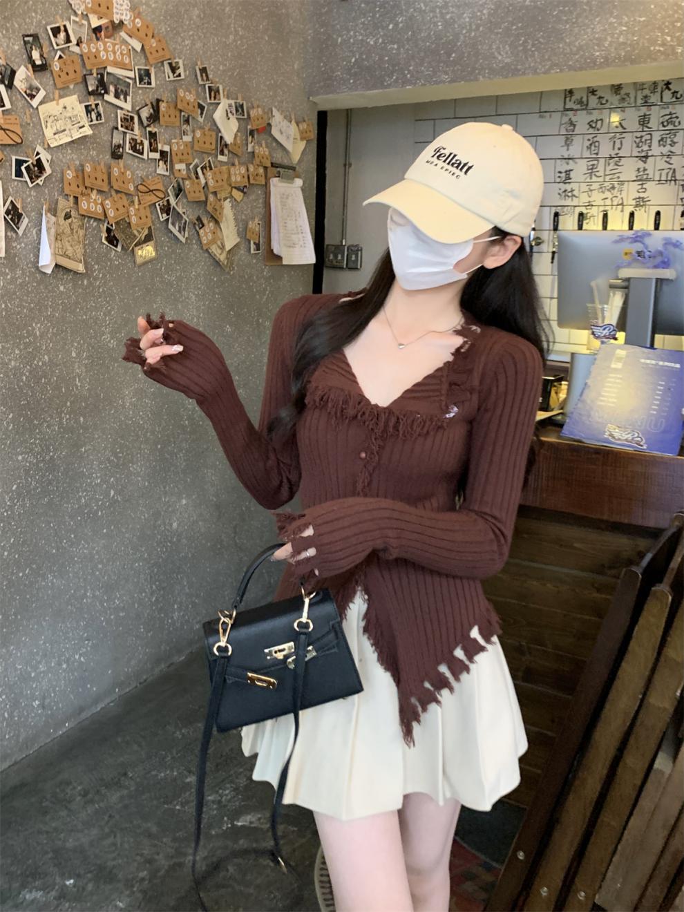 디자인감 있는 브이넥 스웨터 여성용 가을 겨울 신상 슬림핏 독특한 카디건 상의 출근룩스토어 가기