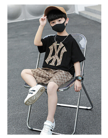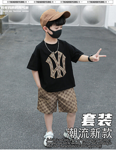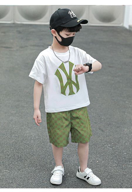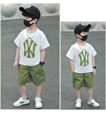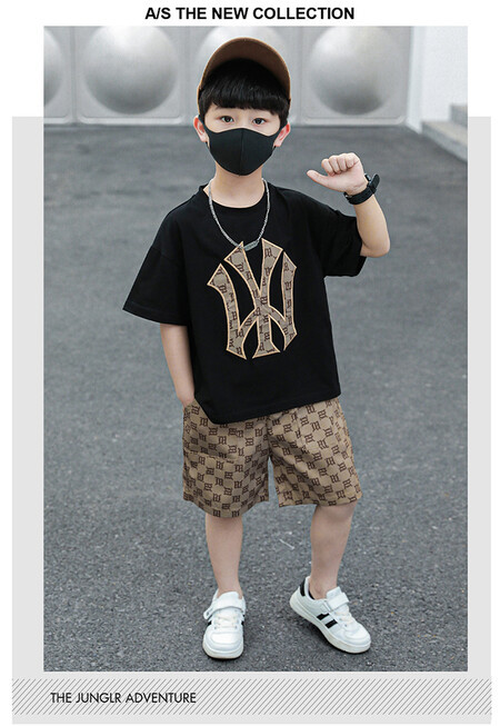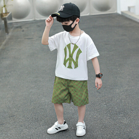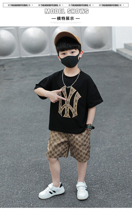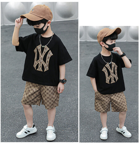 소년의 멋진 여름 원피스 세트 소년을위한 세련된 반팔 티셔츠 아기 어린이 투피스 유행 아동복스토어 가기