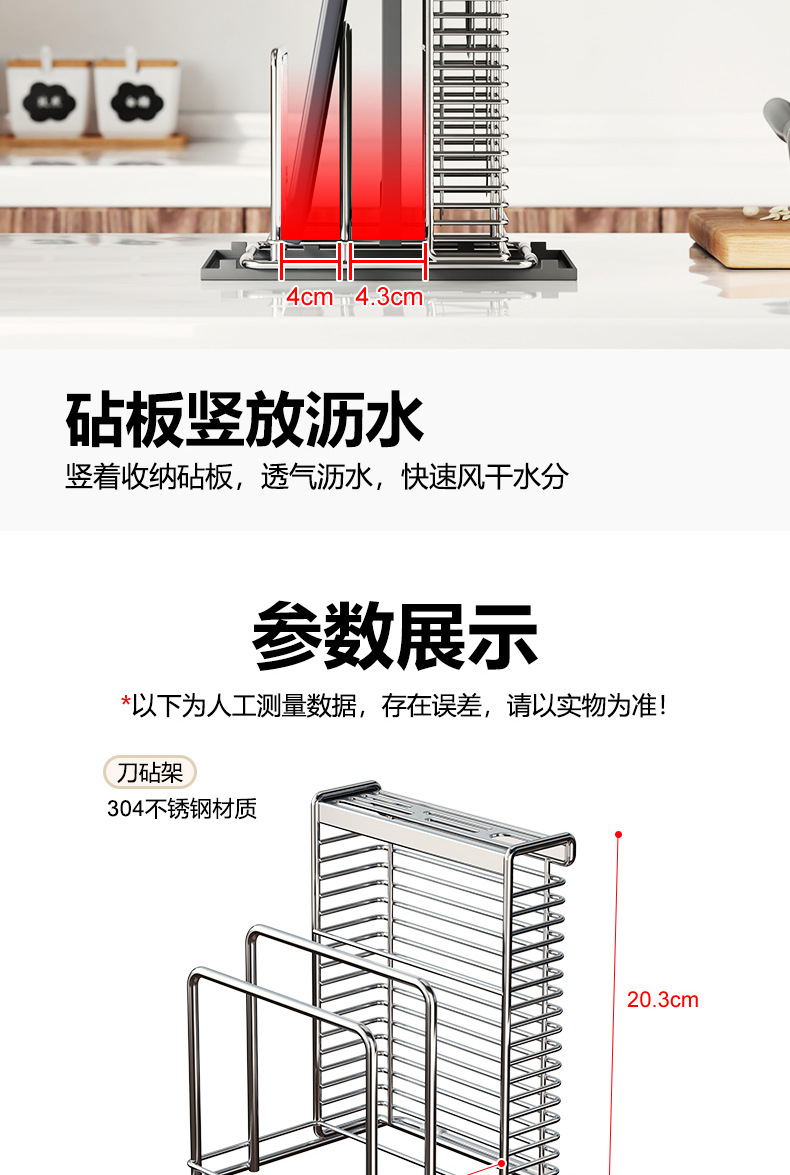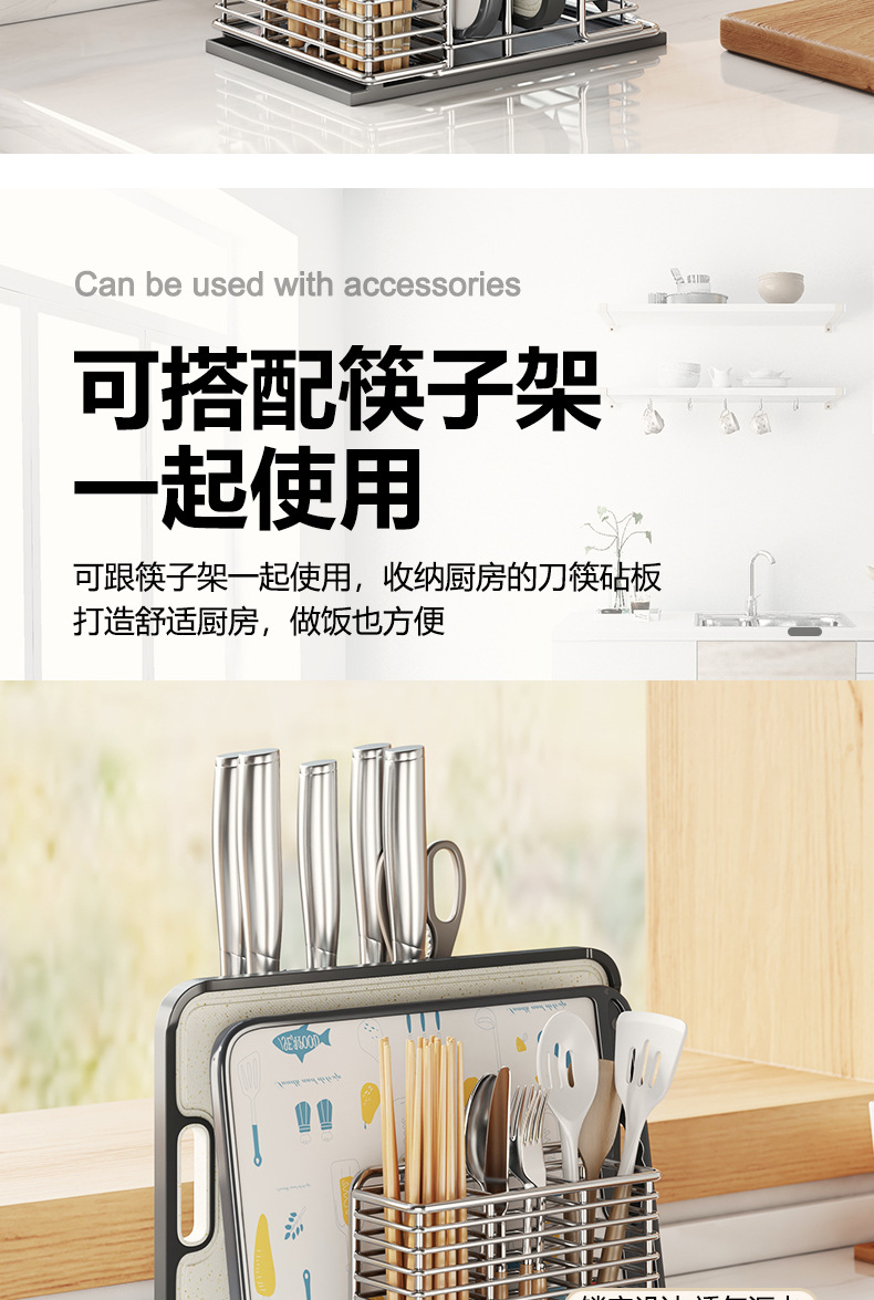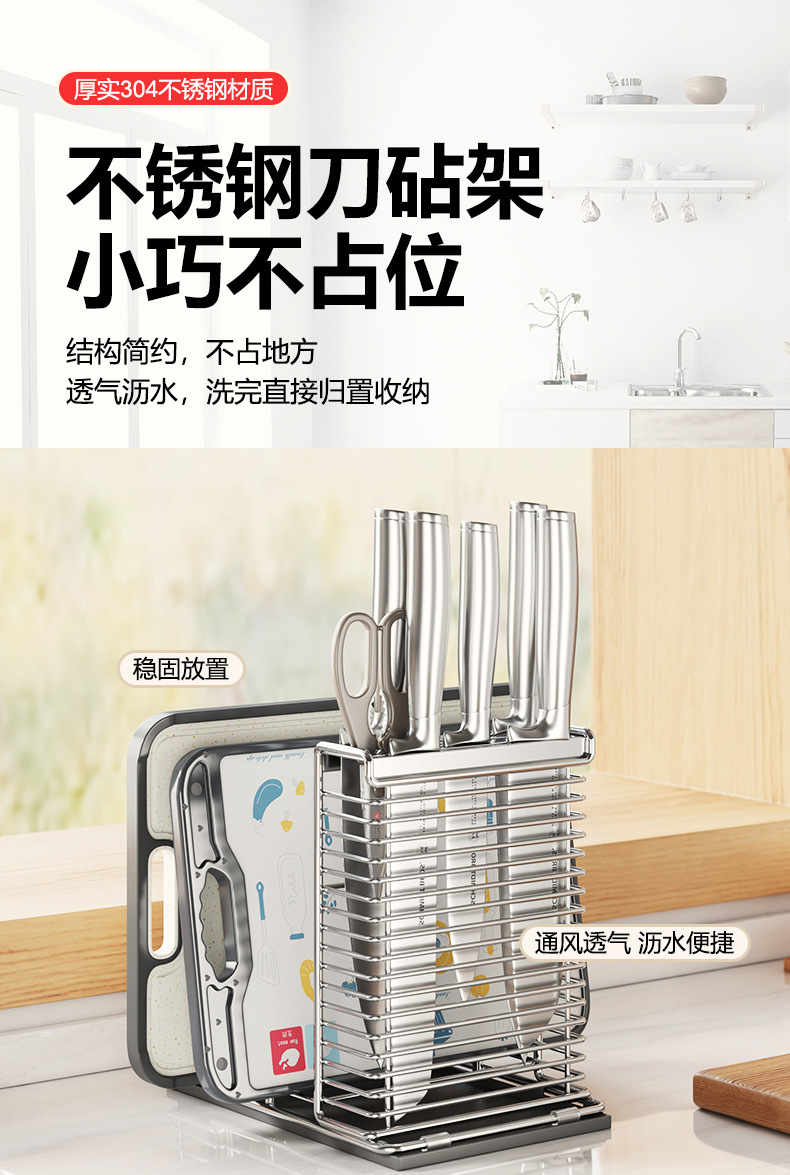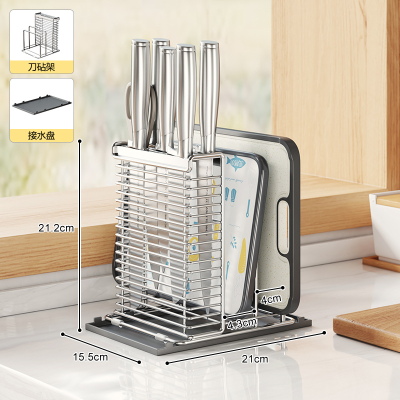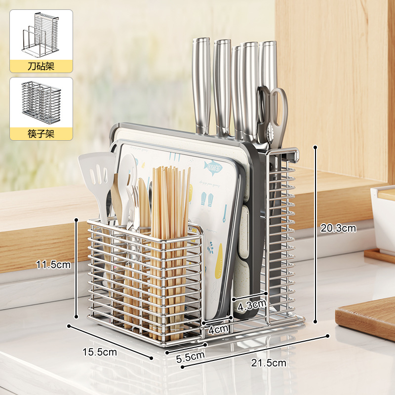304 스테인레스 스틸 주방 칼 랙 보관 랙 젓가락 케이지 칼 보관 랙 가정용 도마 도마 랙 통합 랙
