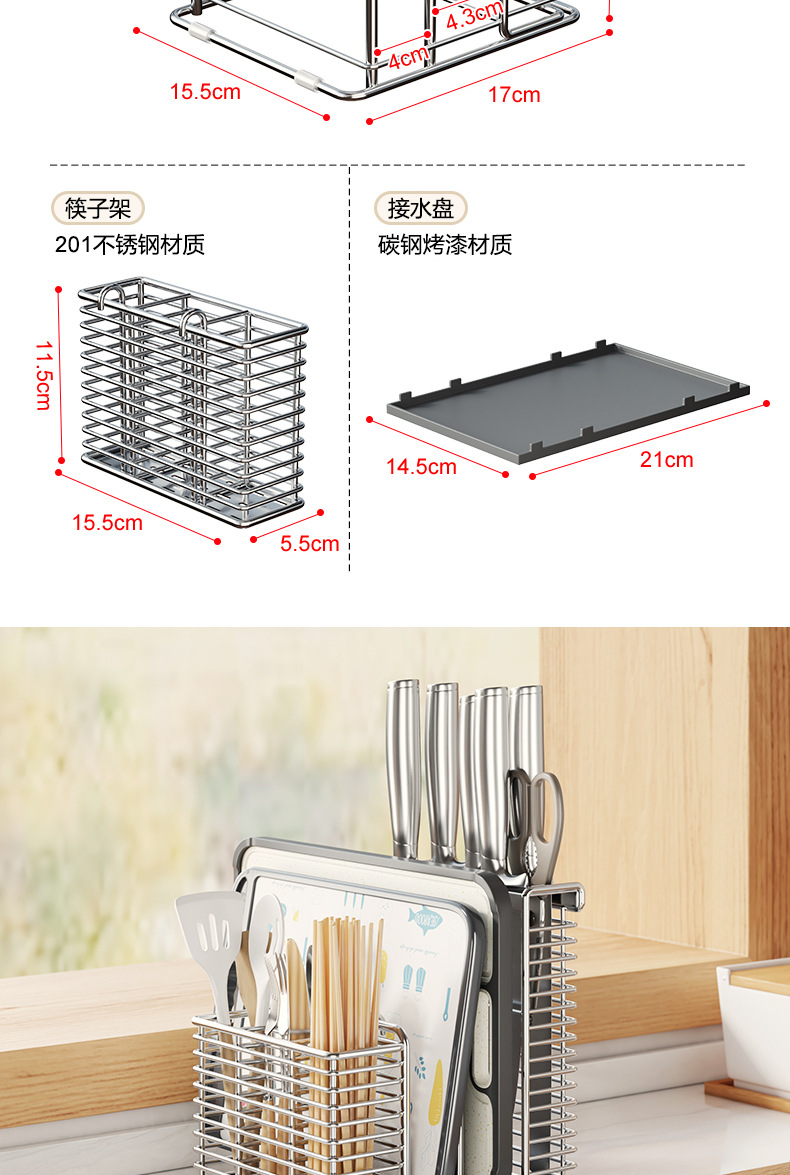 • 304 스테인레스 스틸 나이프 홀더 (물 트레이 포함) + 젓가락 홀더