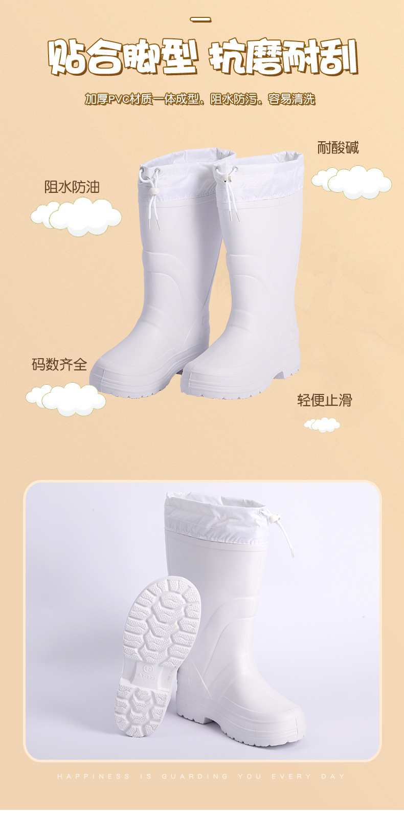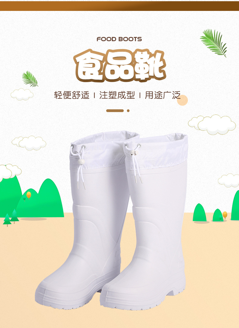 식품용 PVC 장화, EVA 면 장화, 긴 하이탑 미끄럼 방지 워터 부츠, 워터 슈즈, 레인 슈즈, 편안한 작업화 도매스토어 가기