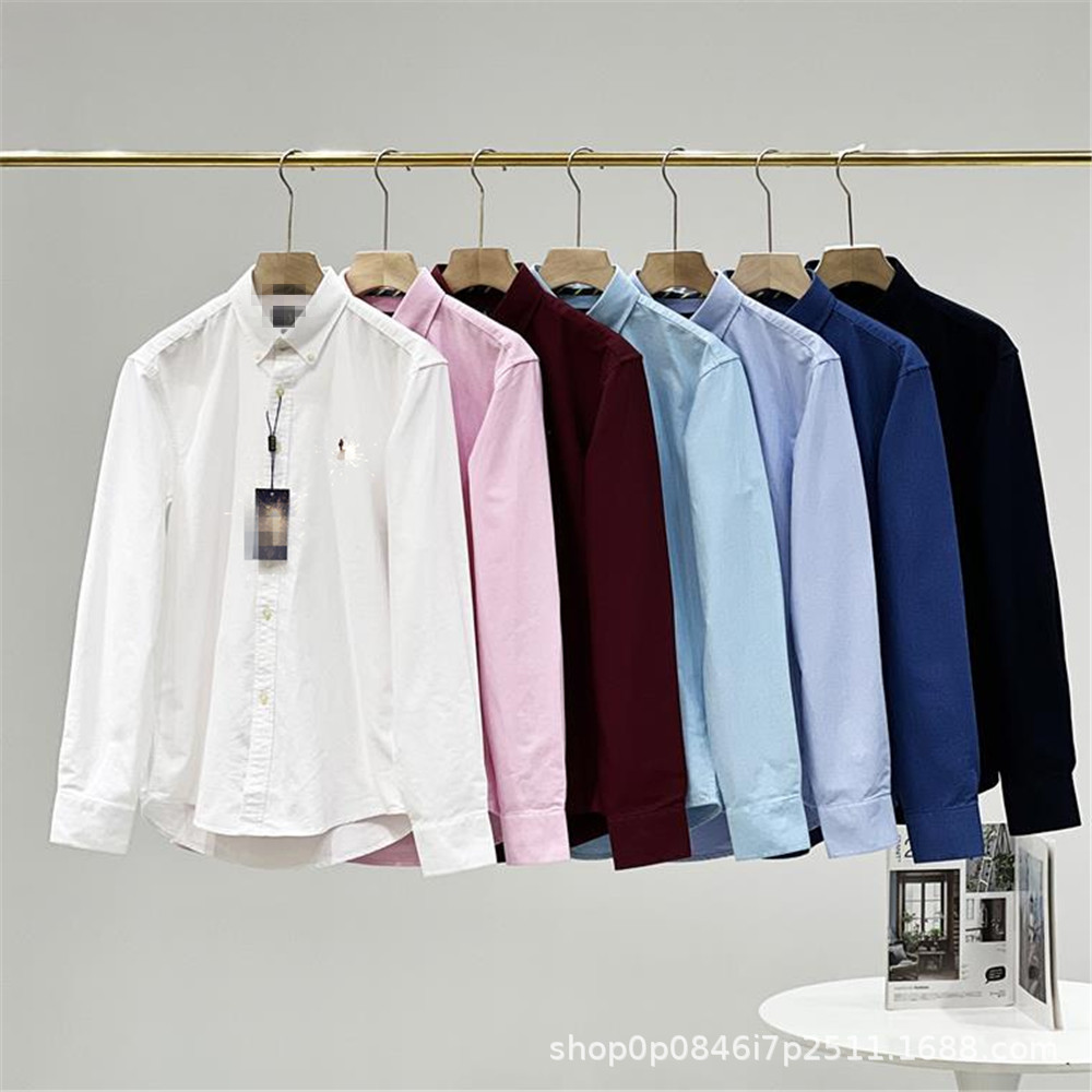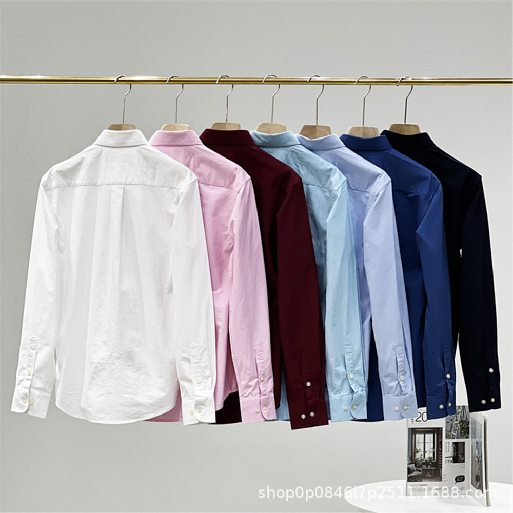 사계절용 버튼다운 셔츠 남성 비즈니스 캐주얼 단색 말 자수 순면 옥스포드 셔츠 남성용 긴팔 셔츠스토어 가기