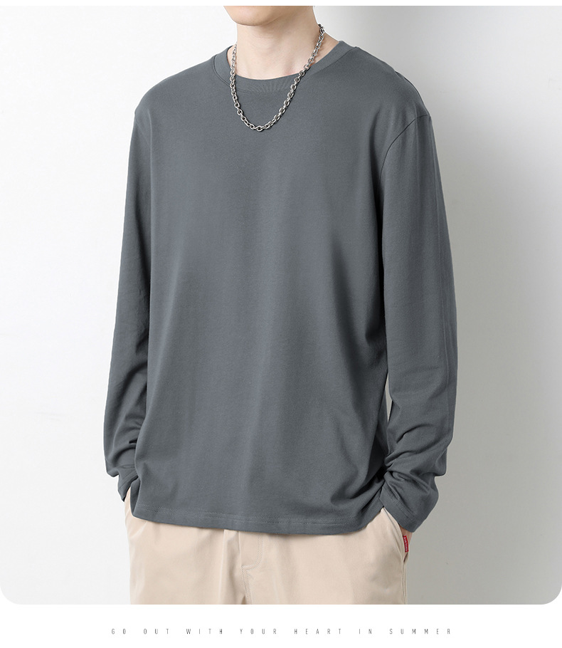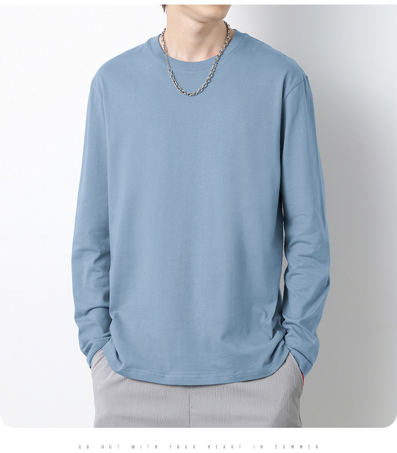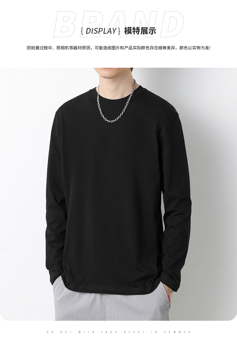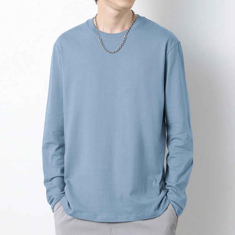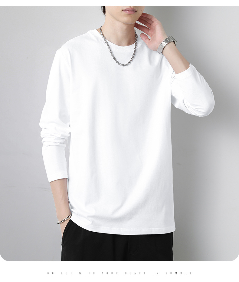 순면 긴팔 티셔츠 남자의 가을과 겨울 인테리어 단색 흰색 베이스 셔츠 라운드 넥 티셔츠 면 가을 옷 작은 셔츠스토어 가기
