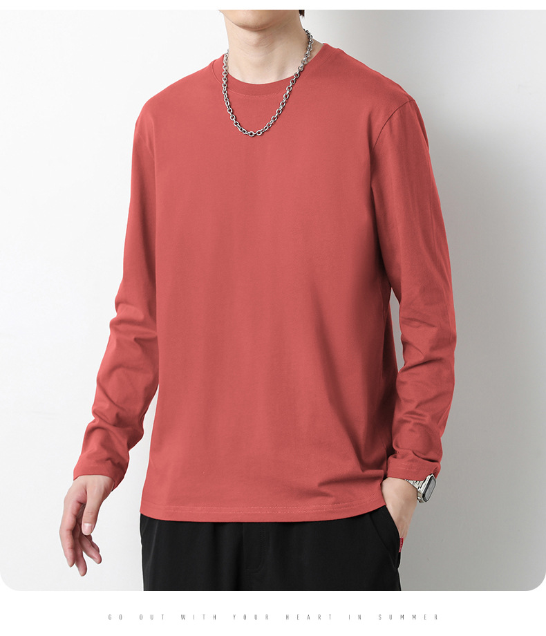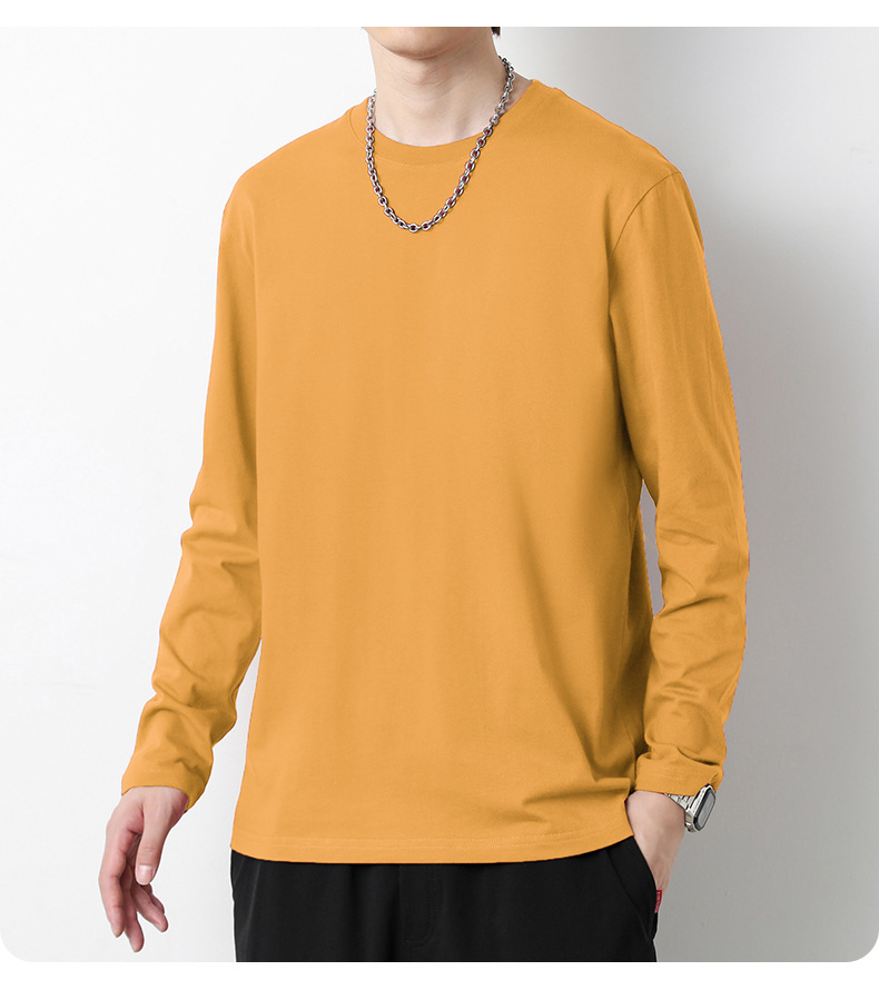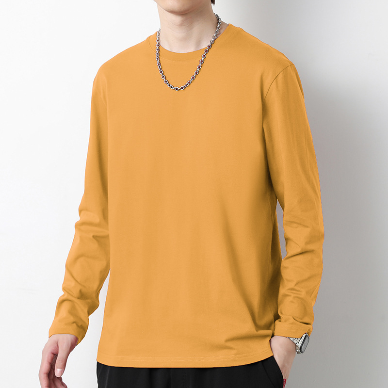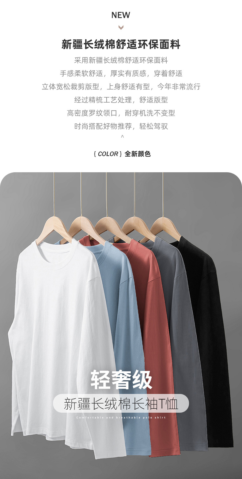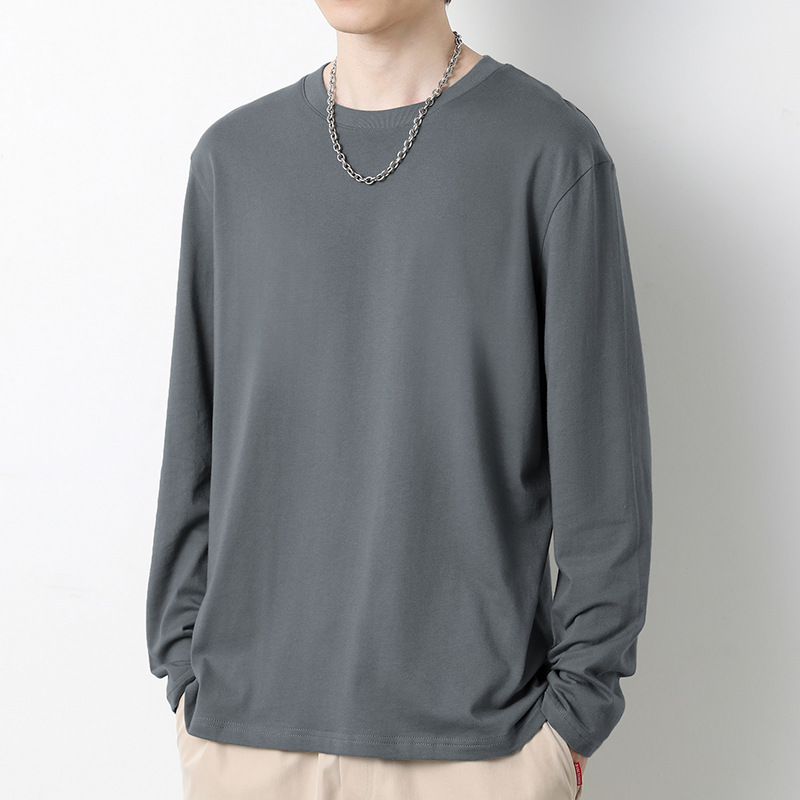 순면 긴팔 티셔츠 남자의 가을과 겨울 인테리어 단색 흰색 베이스 셔츠 라운드 넥 티셔츠 면 가을 옷 작은 셔츠스토어 가기