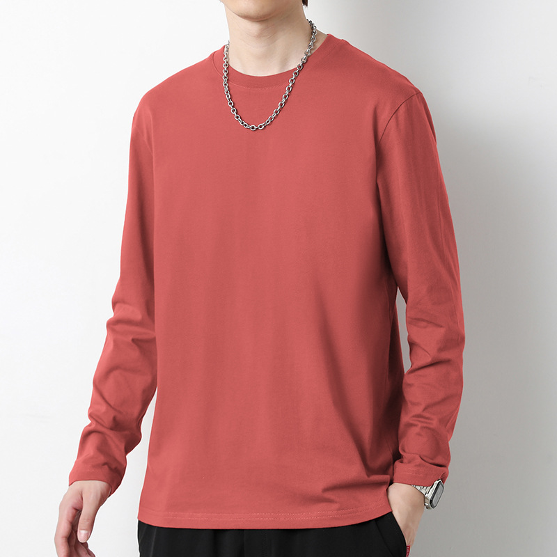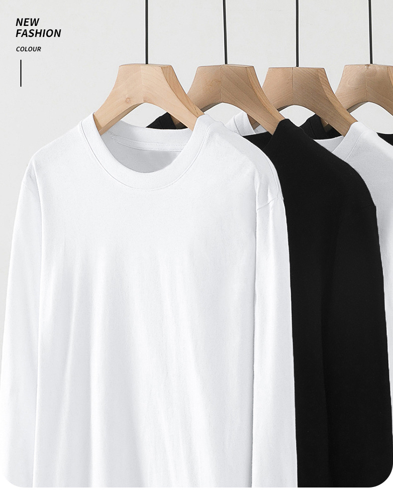 순면 긴팔 티셔츠 남자의 가을과 겨울 인테리어 단색 흰색 베이스 셔츠 라운드 넥 티셔츠 면 가을 옷 작은 셔츠