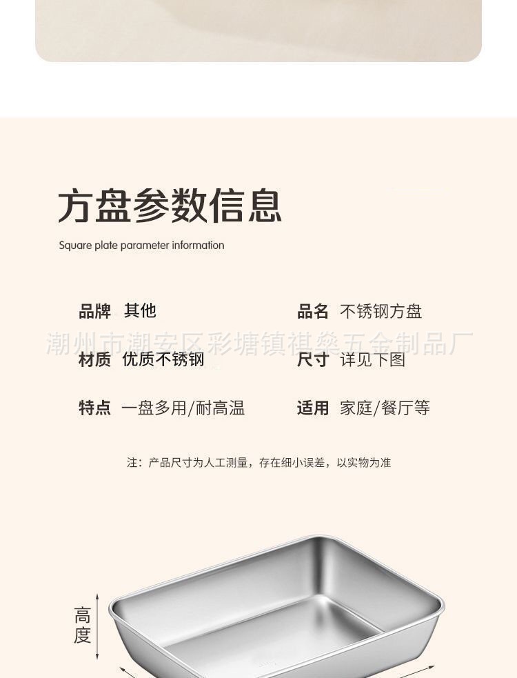 두꺼운 스테인레스 스틸 사각 접시 뚜껑 타월 트레이 다기능 보존 상자 접시 식품 학년 트레이 공장 재고스토어 가기