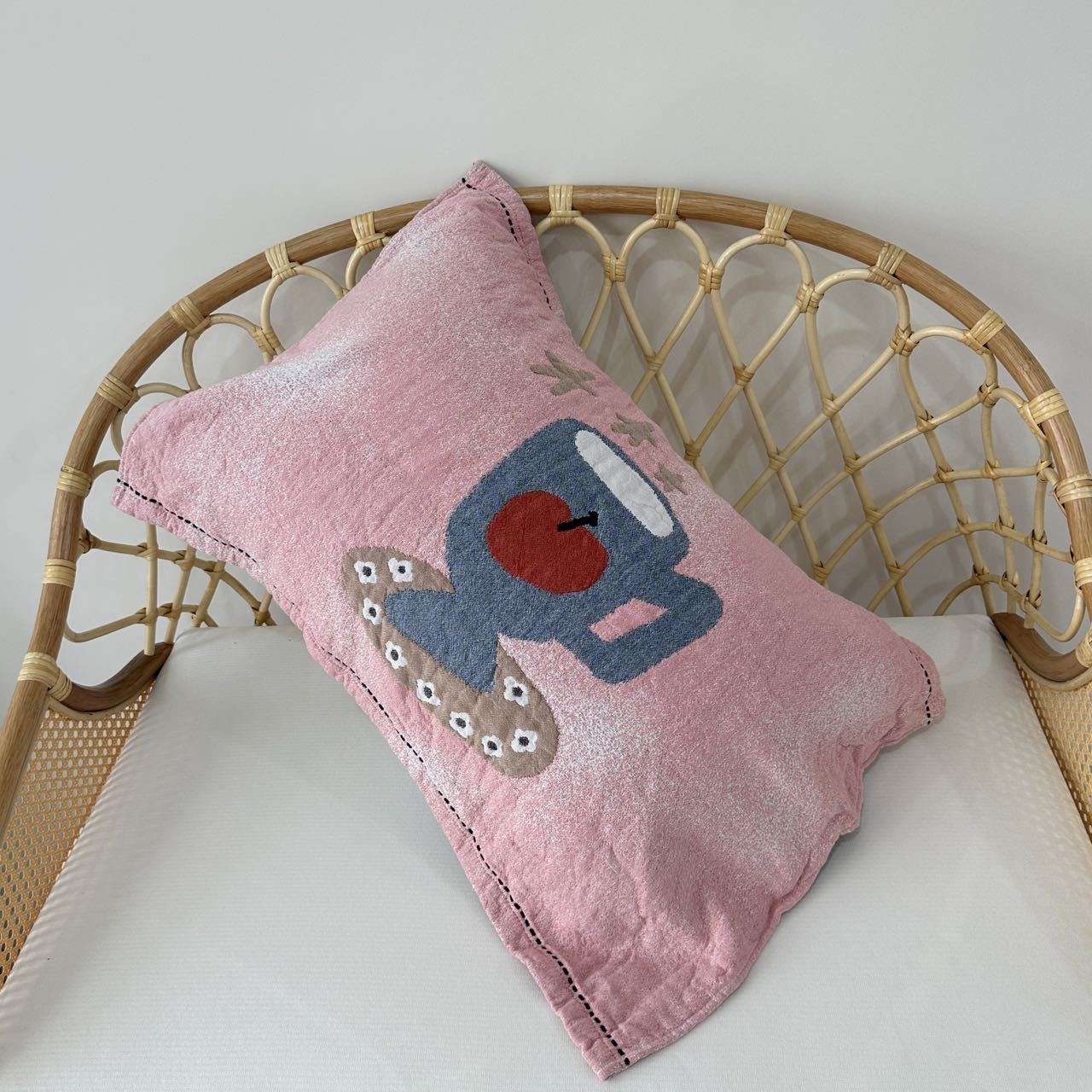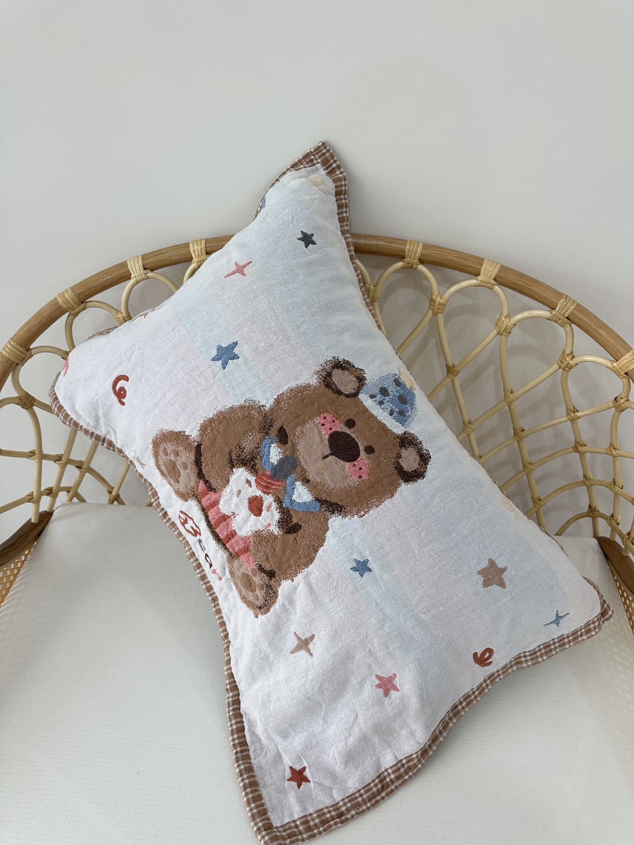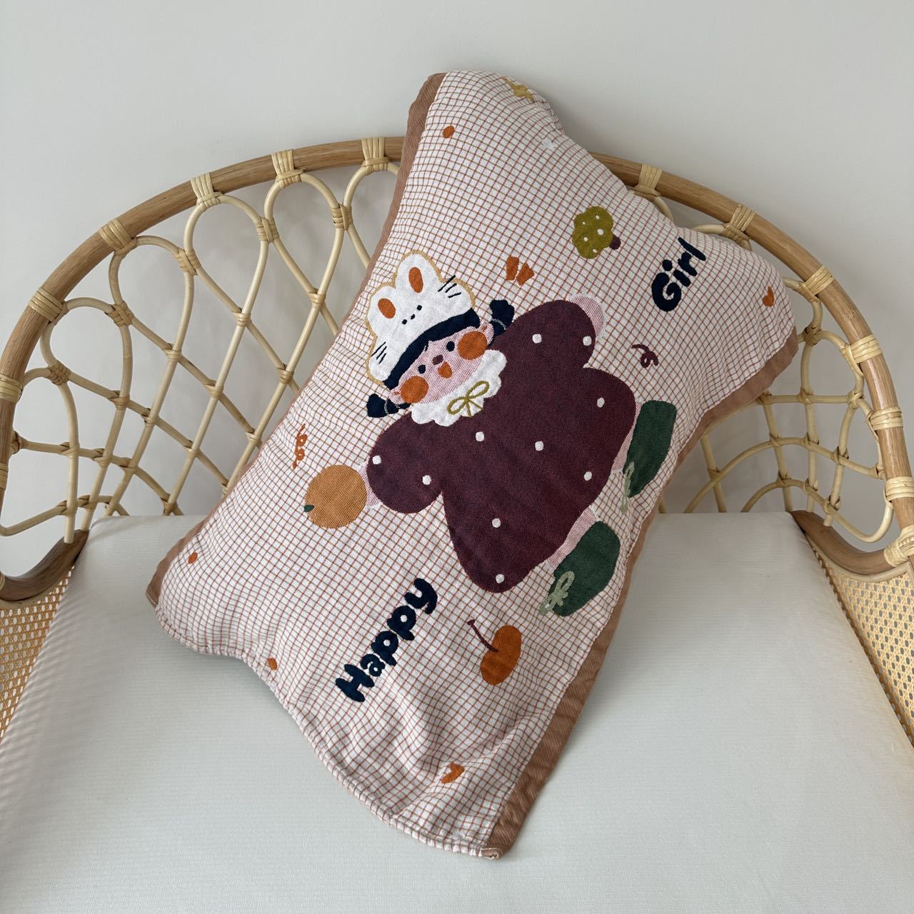 ins 8겹 거즈 순면 싱글 베개 커버, 얼룩 방지 가정용 두꺼운 진드기 방지 베개 커버, 간단한 만화 베개 커버