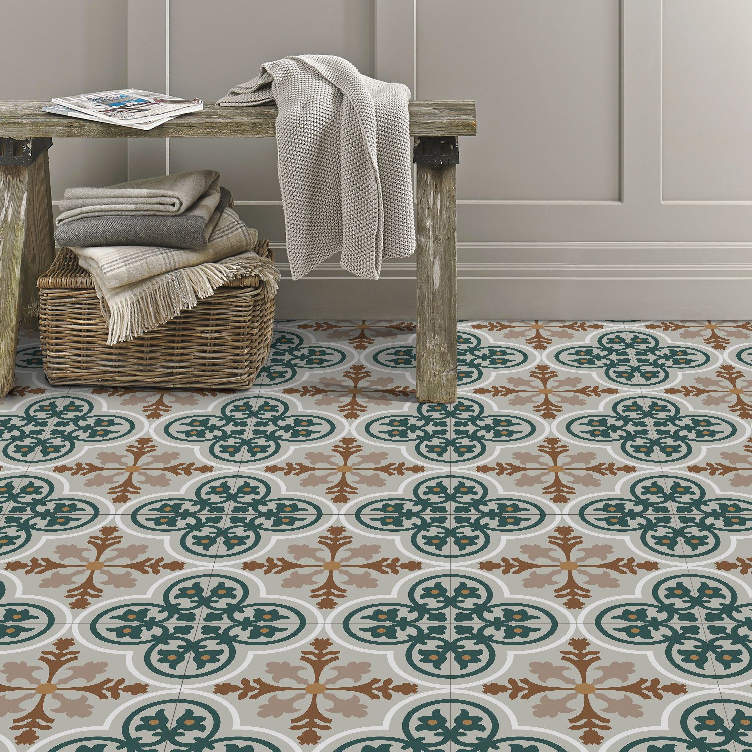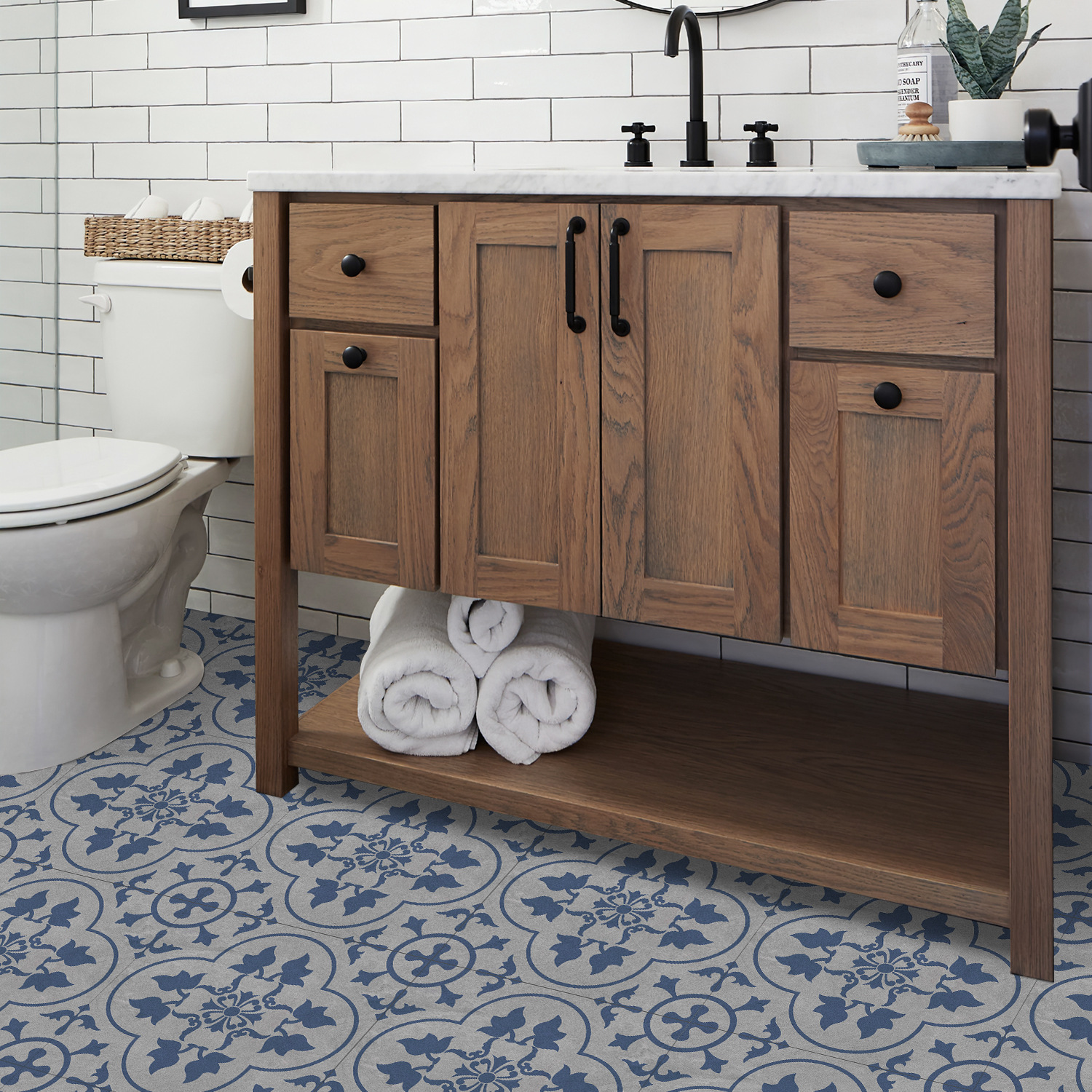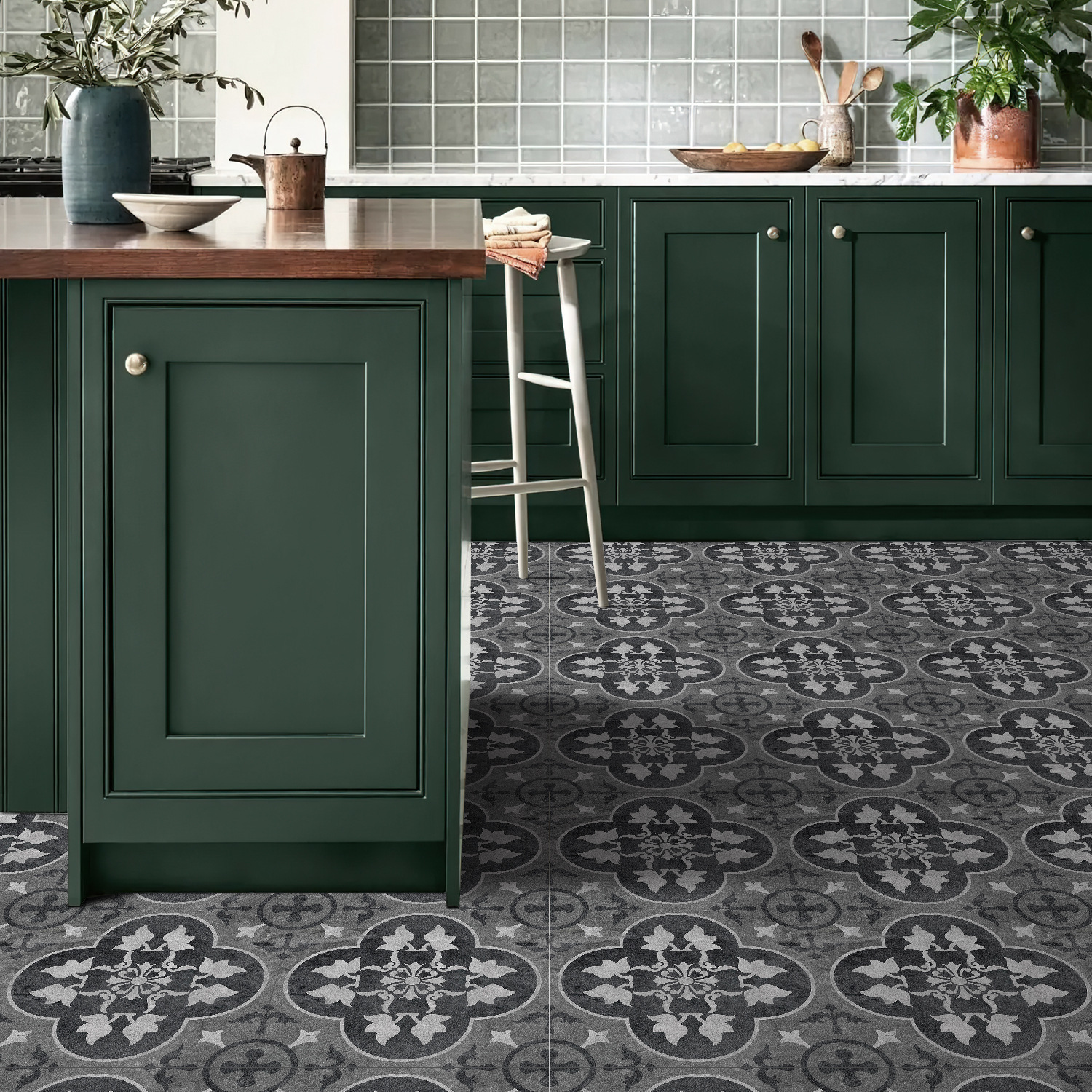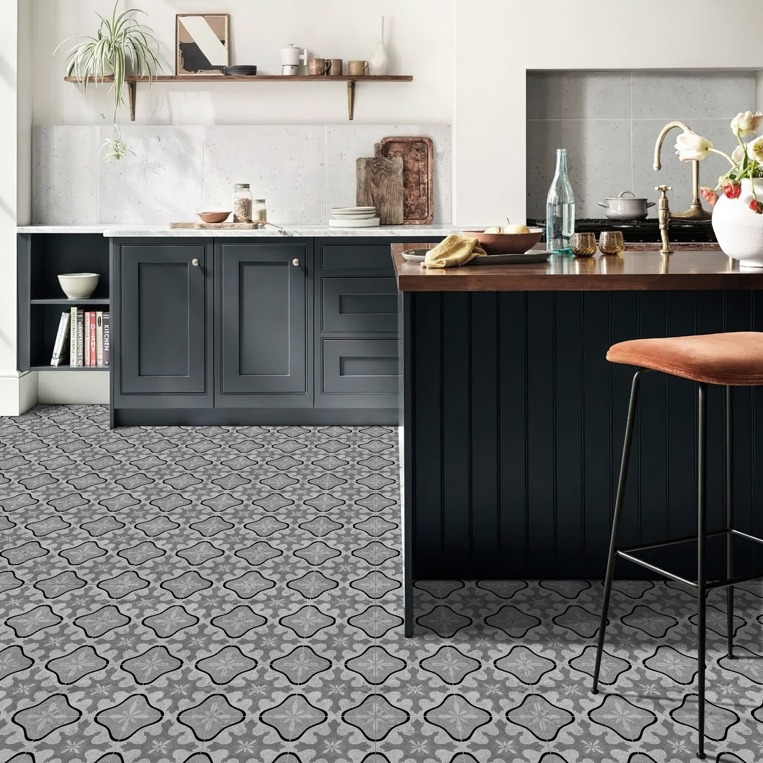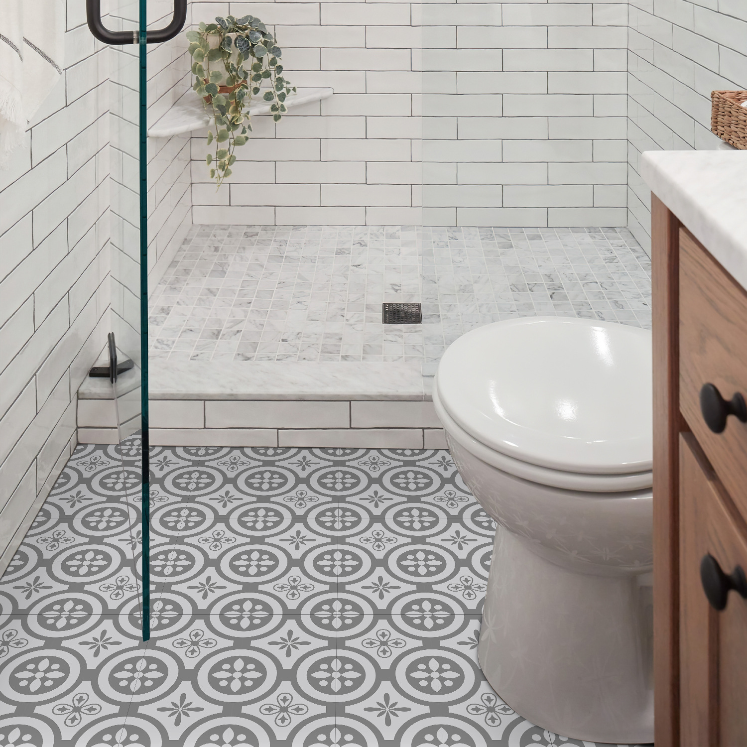 매력 세트 새로운 포르투갈어 흑백 타일 바닥 스티커 침실 욕실 바닥 장식 자체 접착 방수 유럽 바닥 스티커스토어 가기