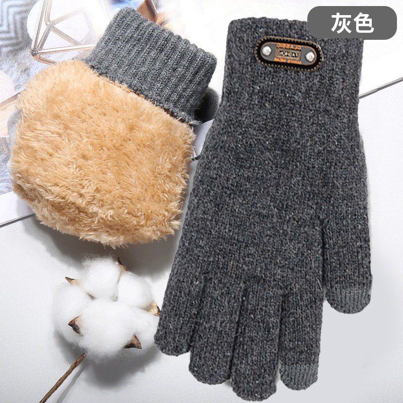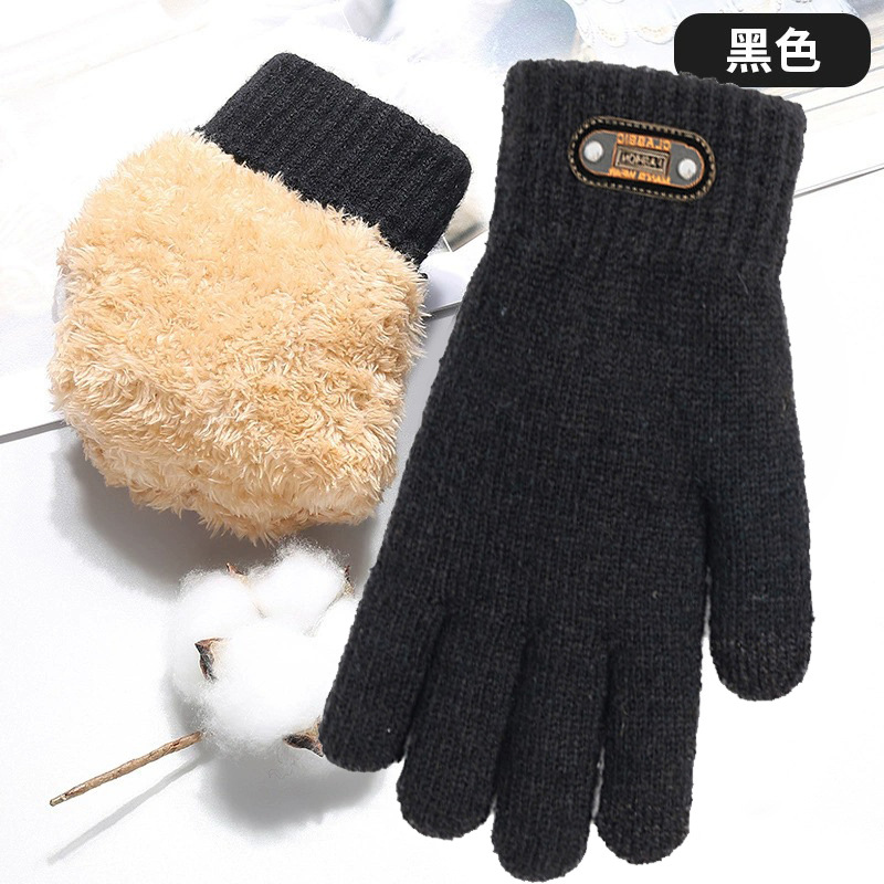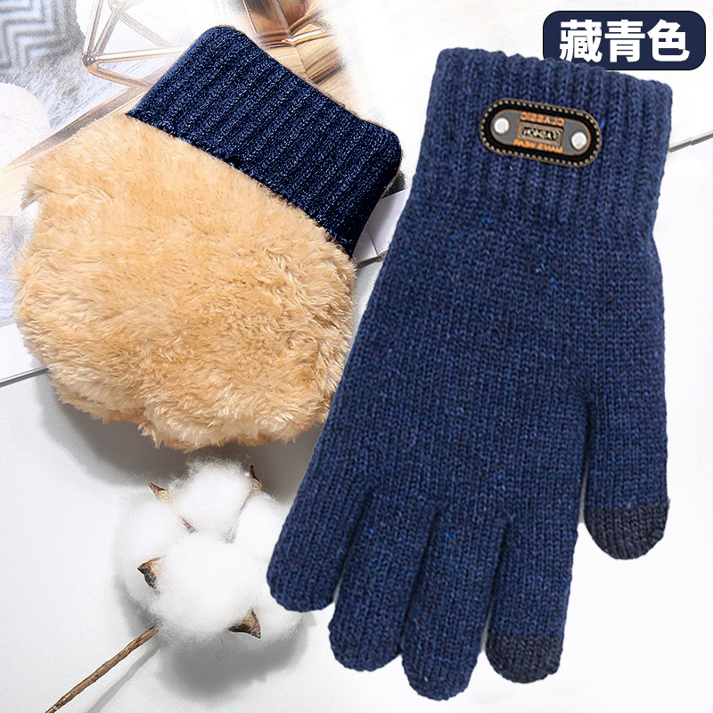 터치 스크린 장갑 남성용 겨울 이중 두꺼운 기모 따뜻한 방한 야외 승마 울 니트 동북면 장갑