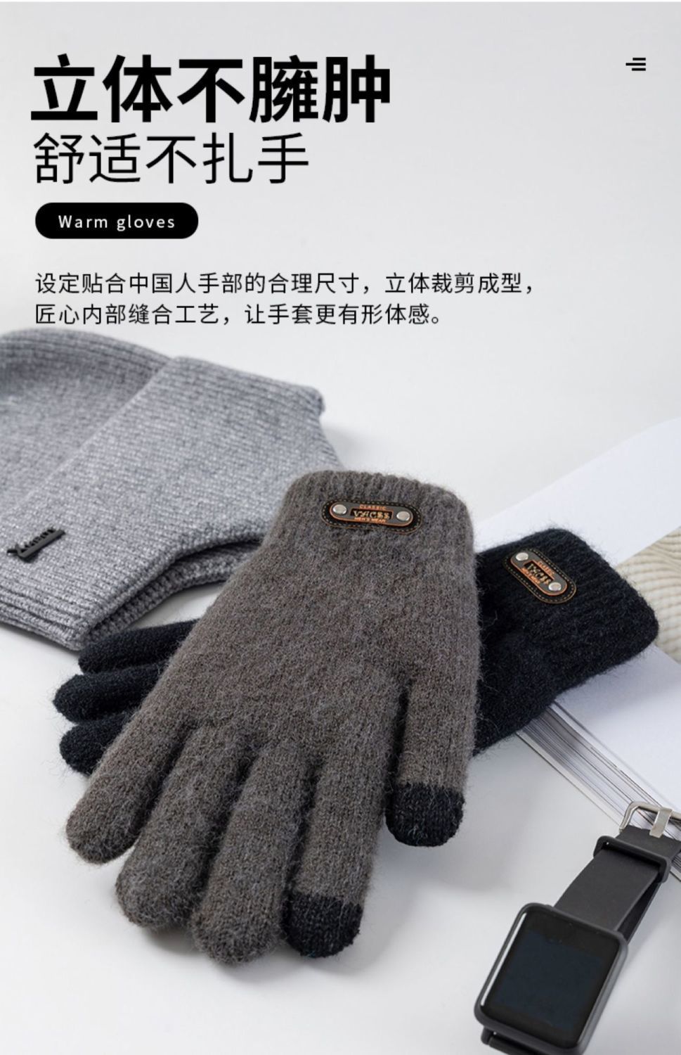 터치 스크린 장갑 남성용 겨울 이중 두꺼운 기모 따뜻한 방한 야외 승마 울 니트 동북면 장갑스토어 가기