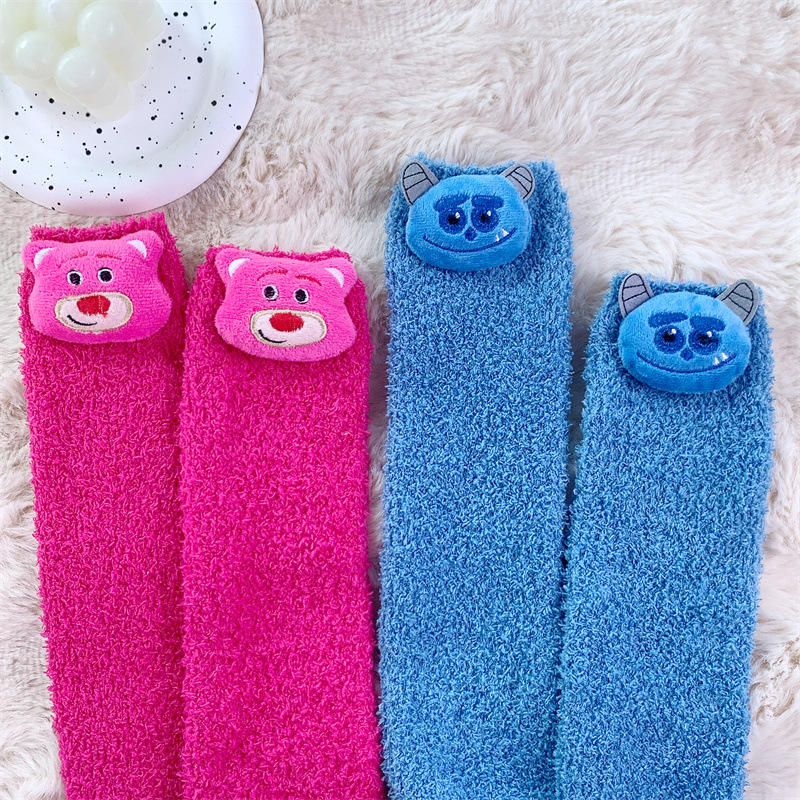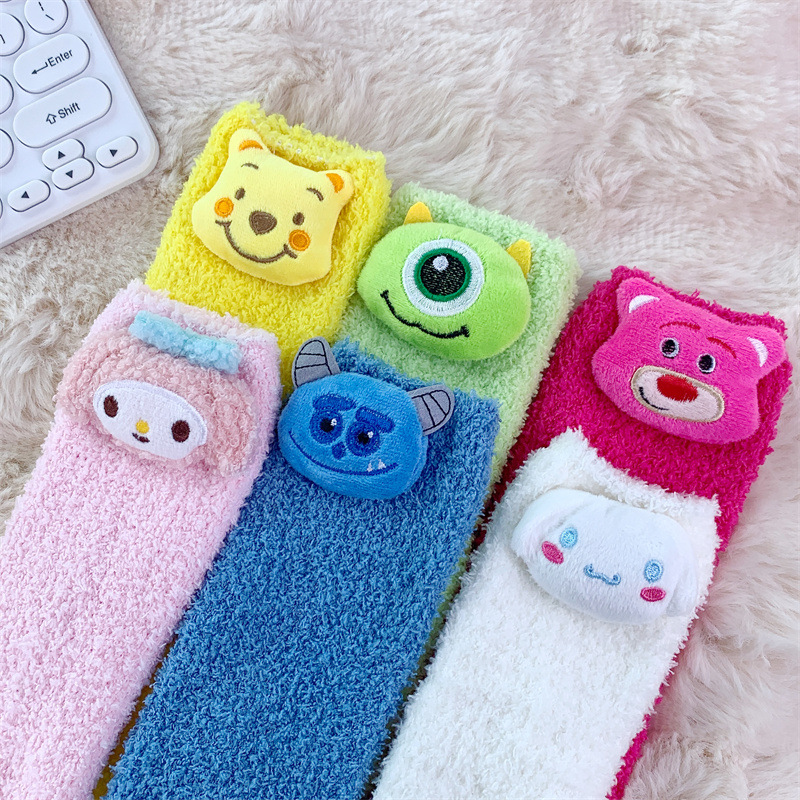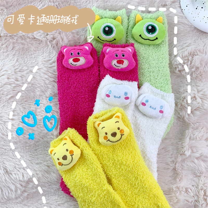 곰돌이 푸 양말 소녀 귀여운 산호 양털 사이버 인기 봉제 양말 겨울 두꺼운 양말 모든 일치 수면 양말스토어 가기