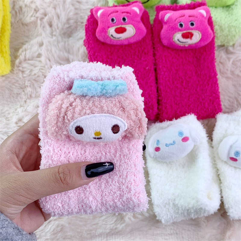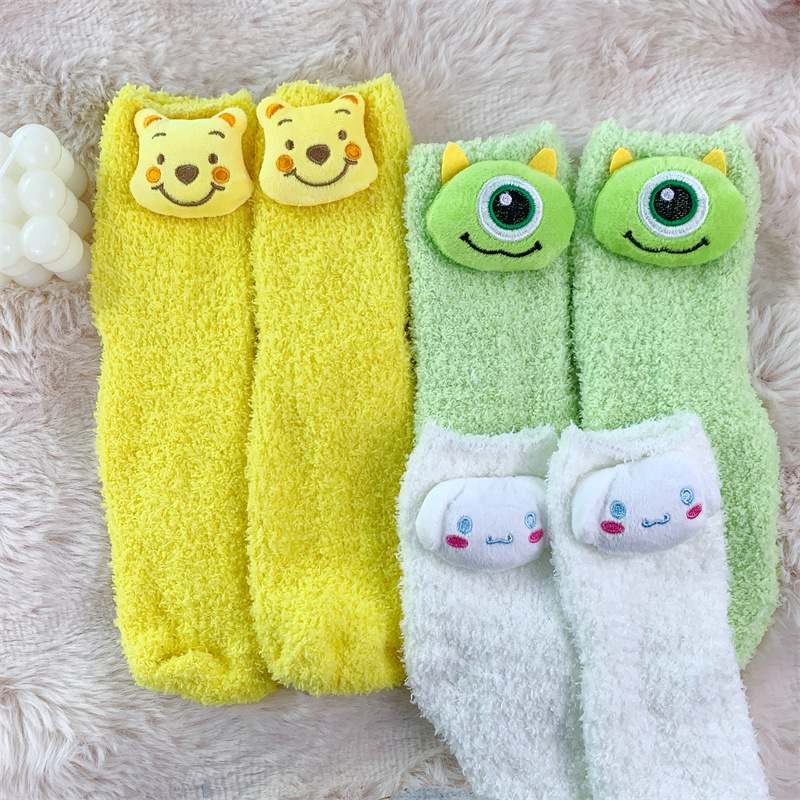 곰돌이 푸 양말 소녀 귀여운 산호 양털 사이버 인기 봉제 양말 겨울 두꺼운 양말 모든 일치 수면 양말