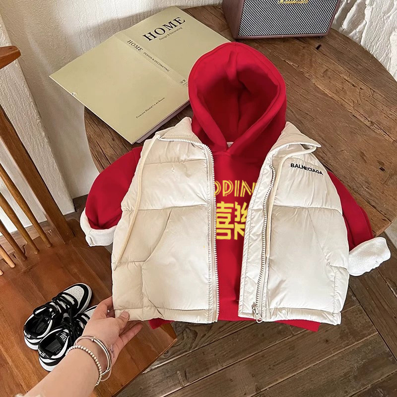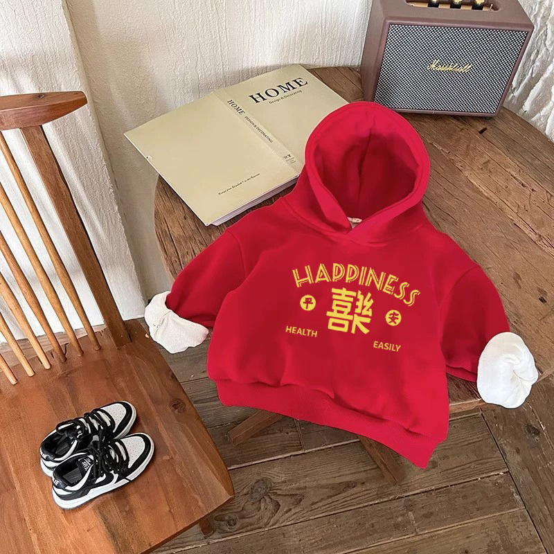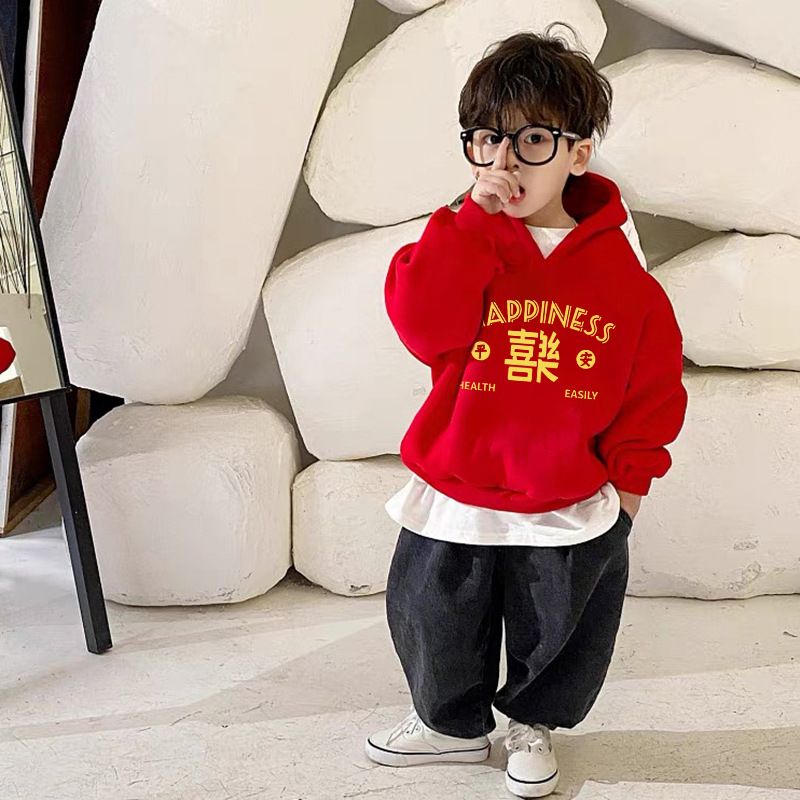 기모 아동복 후드 조끼 2024 가을과 겨울 용의 해, 인생의 해, 새해 인사, 소년과 소녀를위한 모든 매치 재킷스토어 가기