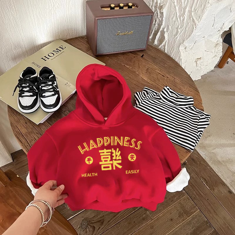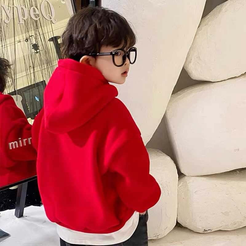 기모 아동복 후드 조끼 2024 가을과 겨울 용의 해, 인생의 해, 새해 인사, 소년과 소녀를위한 모든 매치 재킷