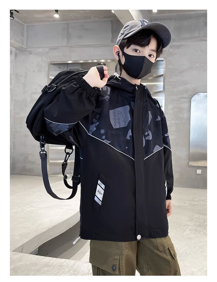 아동복 남아 코트 2023 새로운 봄과 가을 큰 소년 후드 코트 세련된 겉옷 러쉬 의류스토어 가기