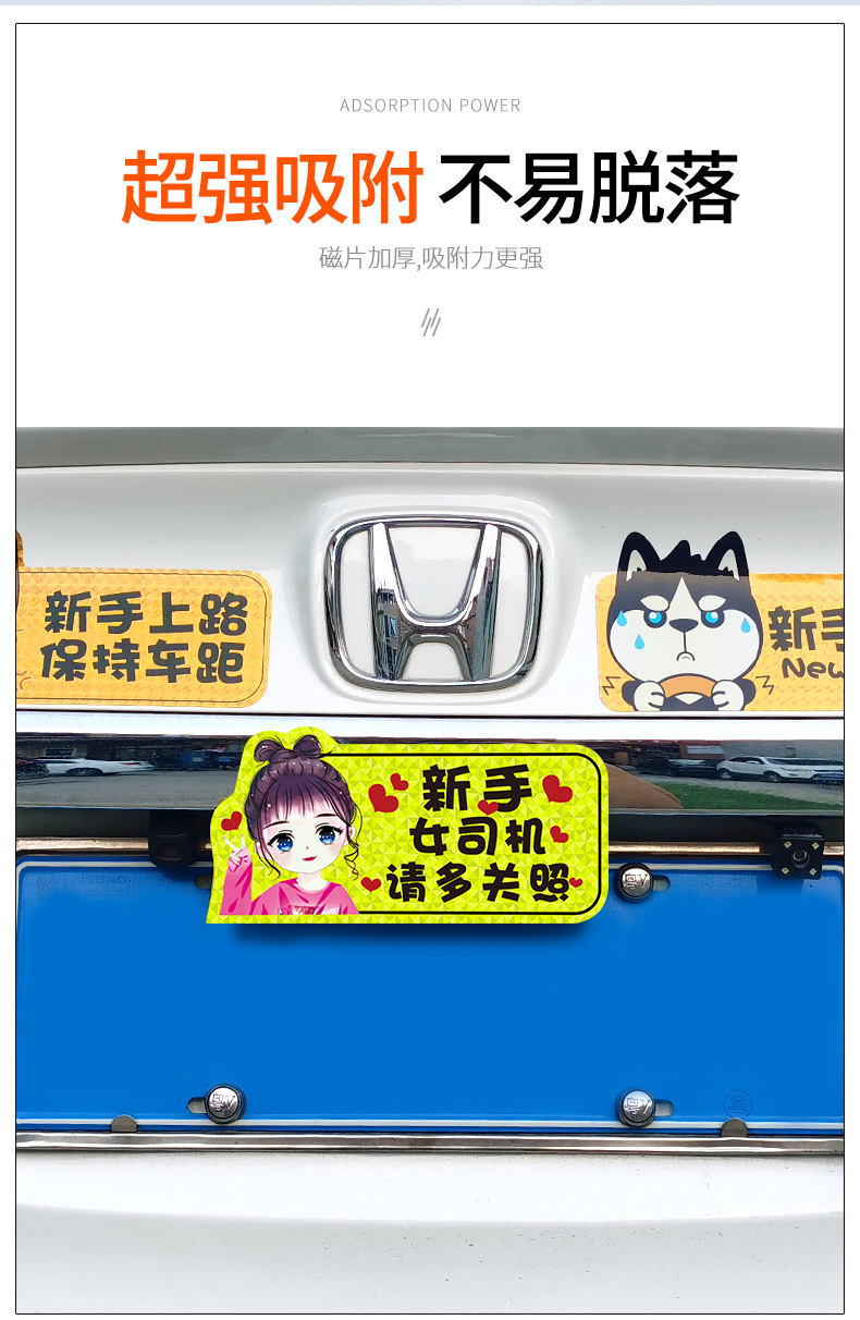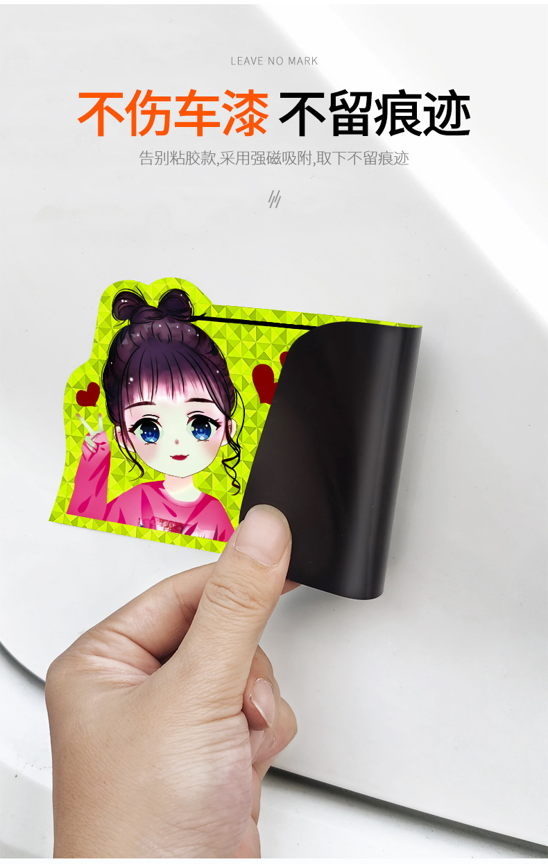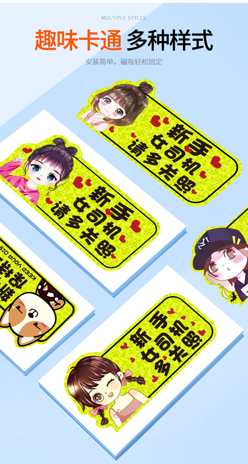 인턴쉽 자동차 스티커 도로에 초보자 여성 드라이버 자기 스티커 자기 자동차 용품 인턴쉽 스티커 반사 만화 재미