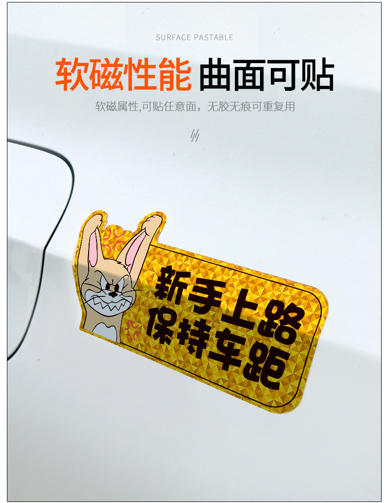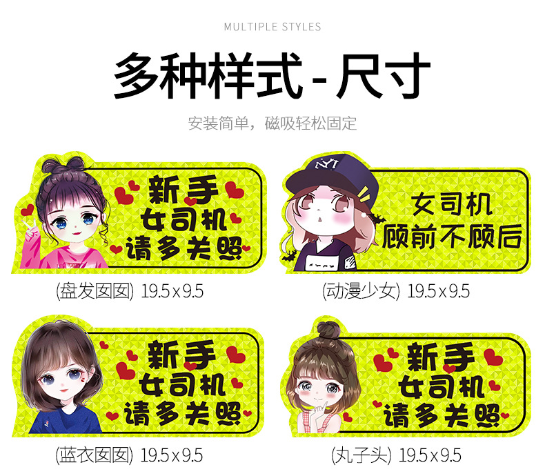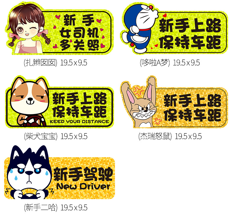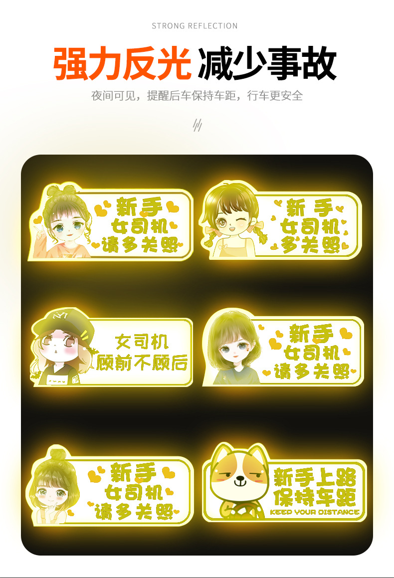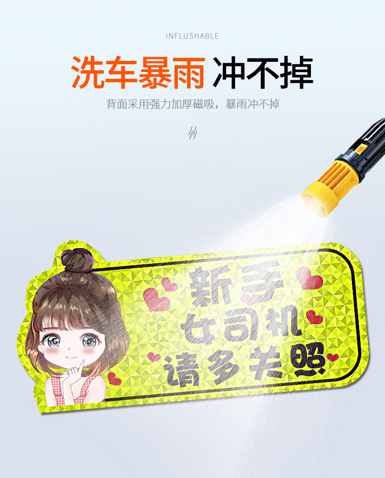 인턴쉽 자동차 스티커 도로에 초보자 여성 드라이버 자기 스티커 자기 자동차 용품 인턴쉽 스티커 반사 만화 재미