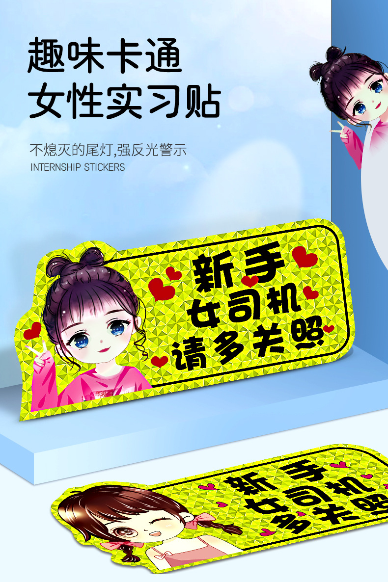 인턴쉽 자동차 스티커 도로에 초보자 여성 드라이버 자기 스티커 자기 자동차 용품 인턴쉽 스티커 반사 만화 재미스토어 가기