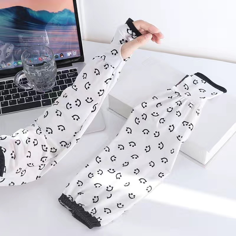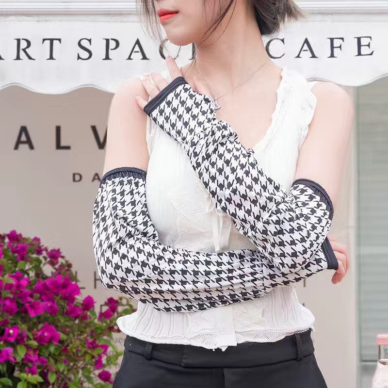 여름 아이스 슬리브 여성의 태양 보호 느슨한 격자 무늬 사랑 아이스 실크 오버 이브 여름 태양 보호 UV 보호 라이딩 암 보호